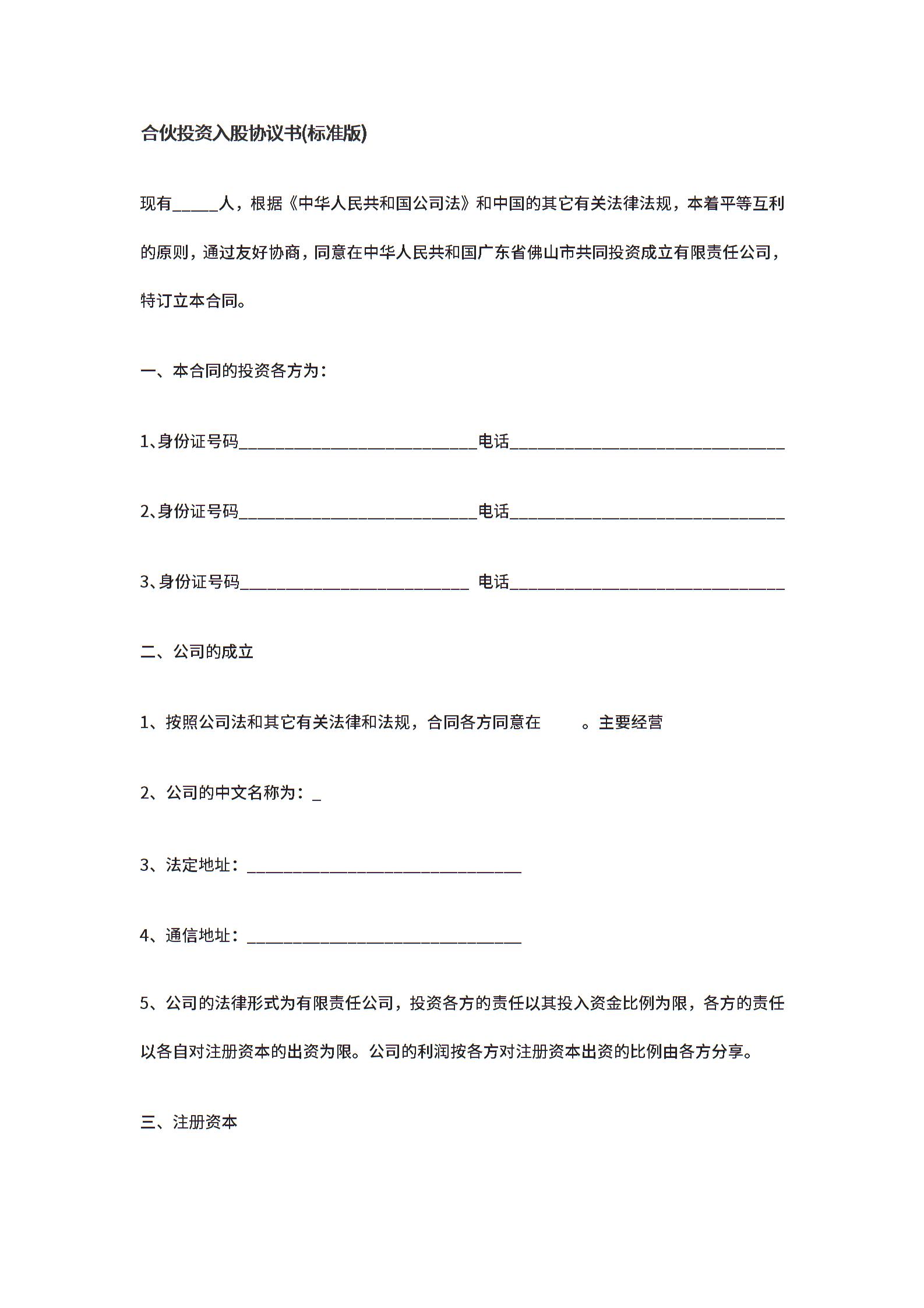 合伙投资入股协议书(正式版)(此版本中规中矩,可以做参考)