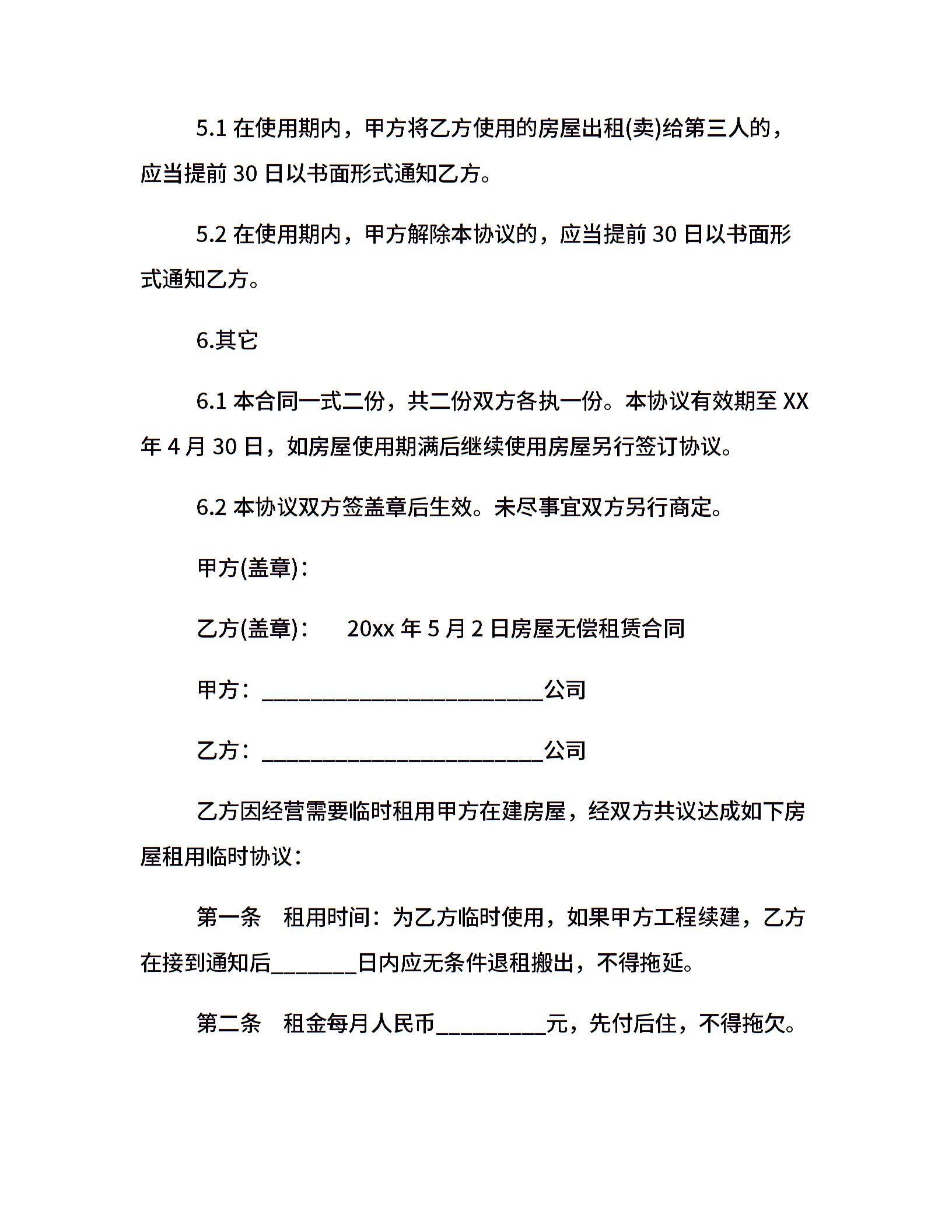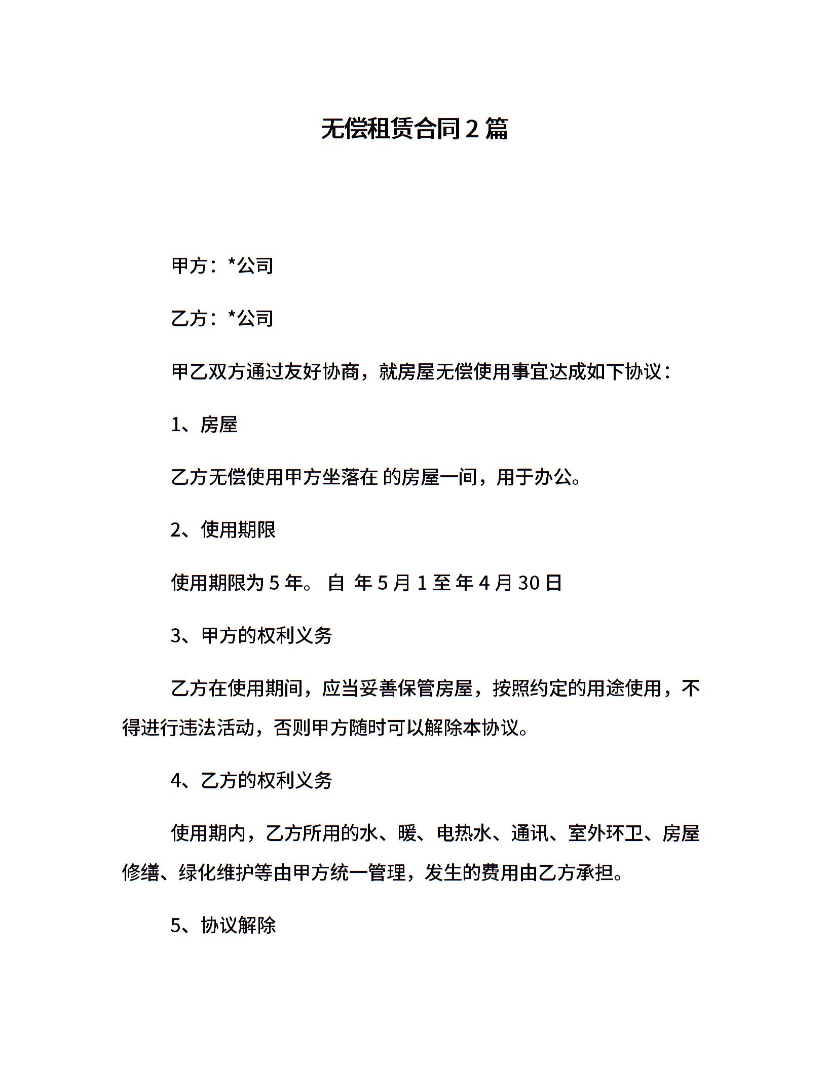 无偿租赁合同2篇