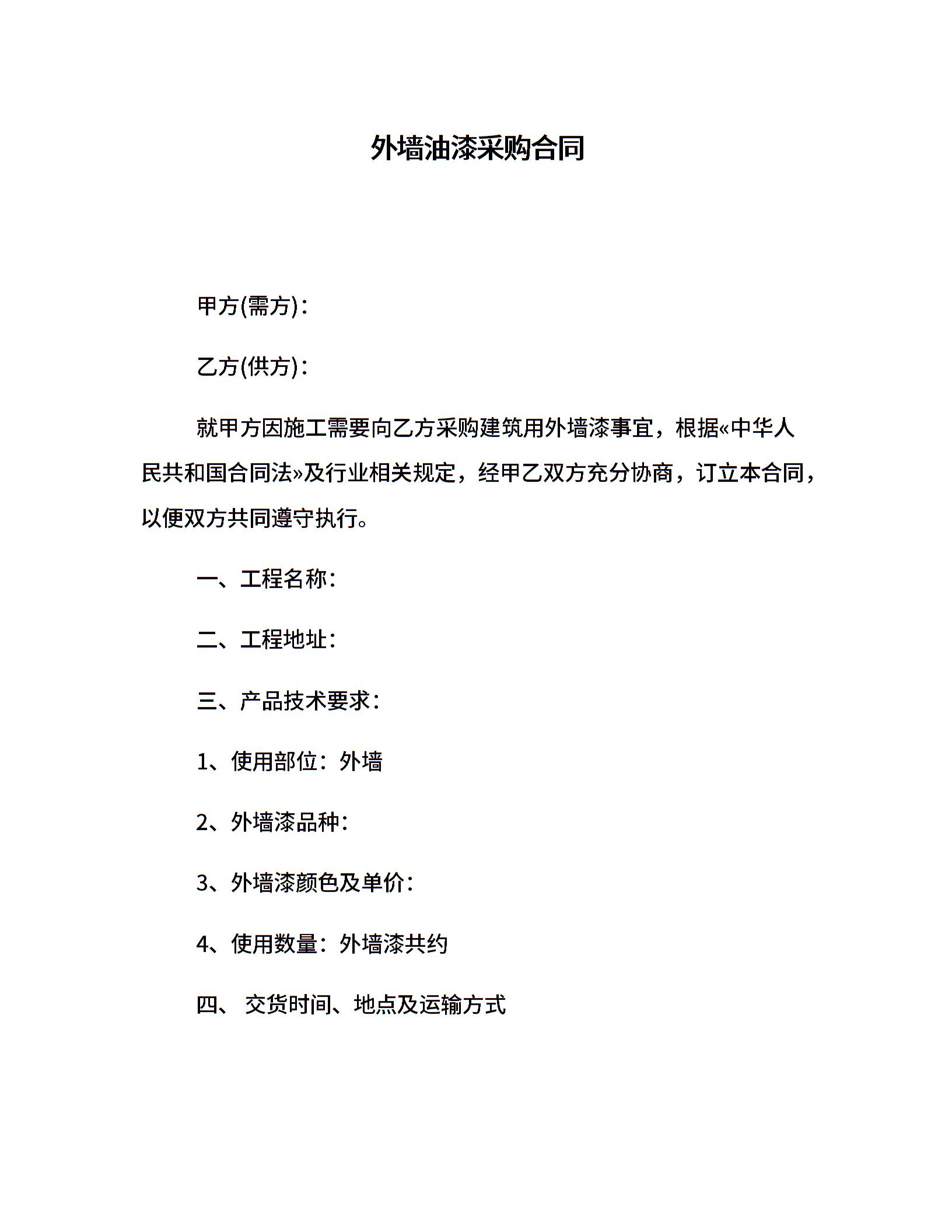 外墙油漆采购合同
