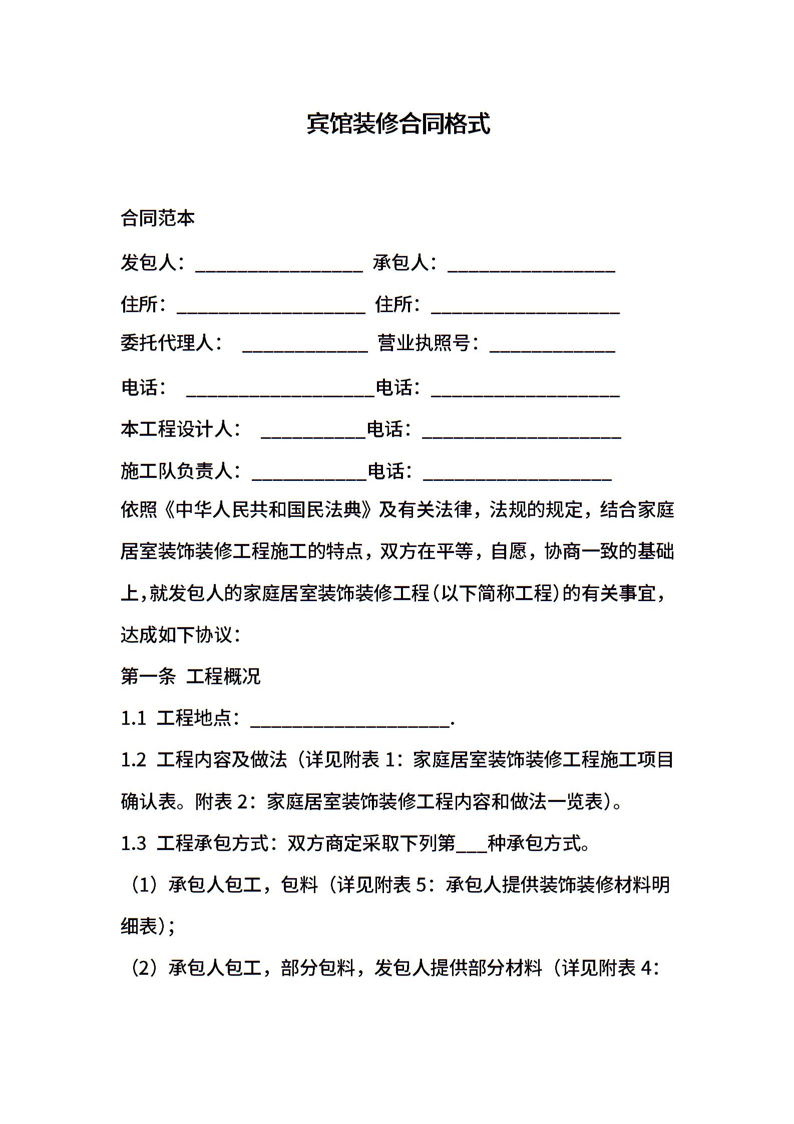 宾馆装修合同格式