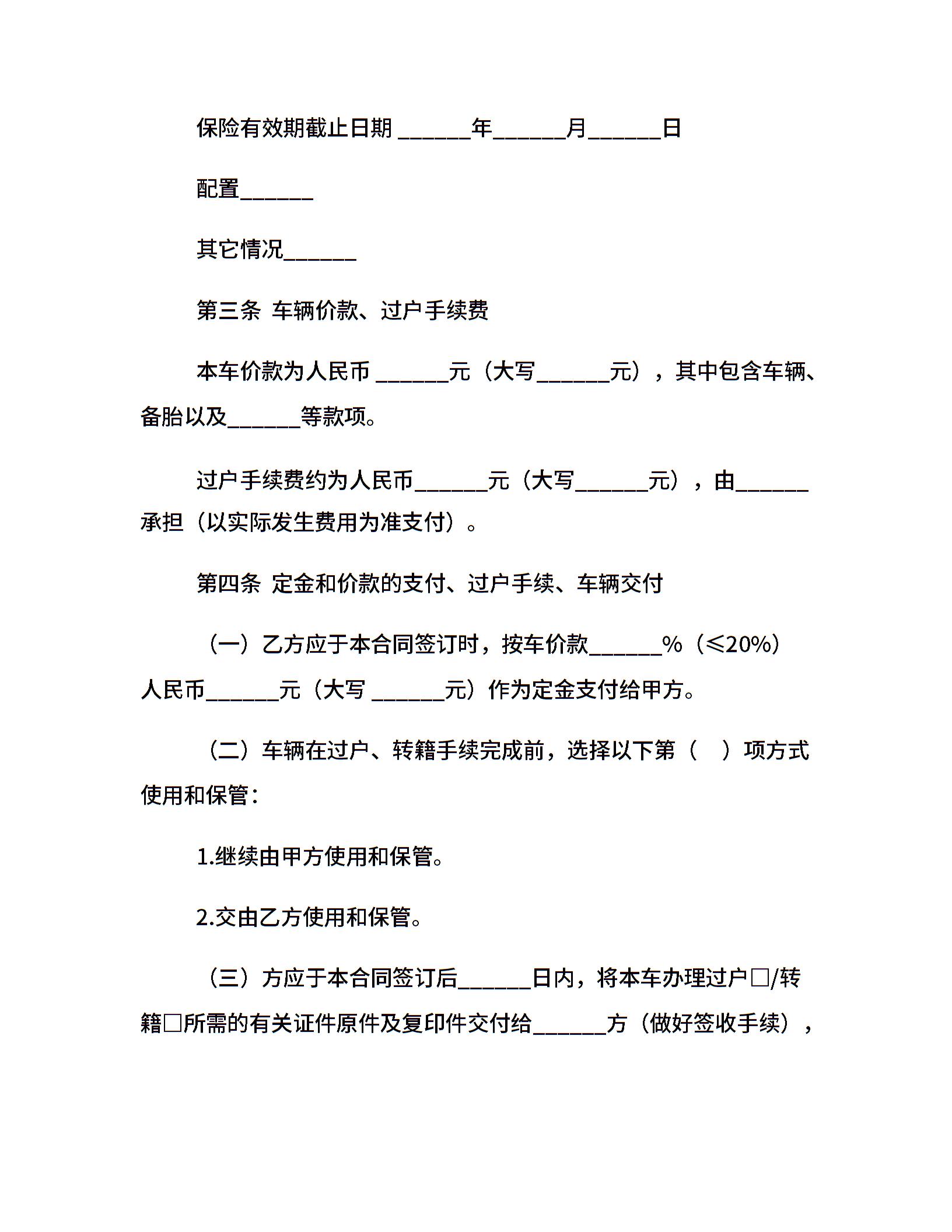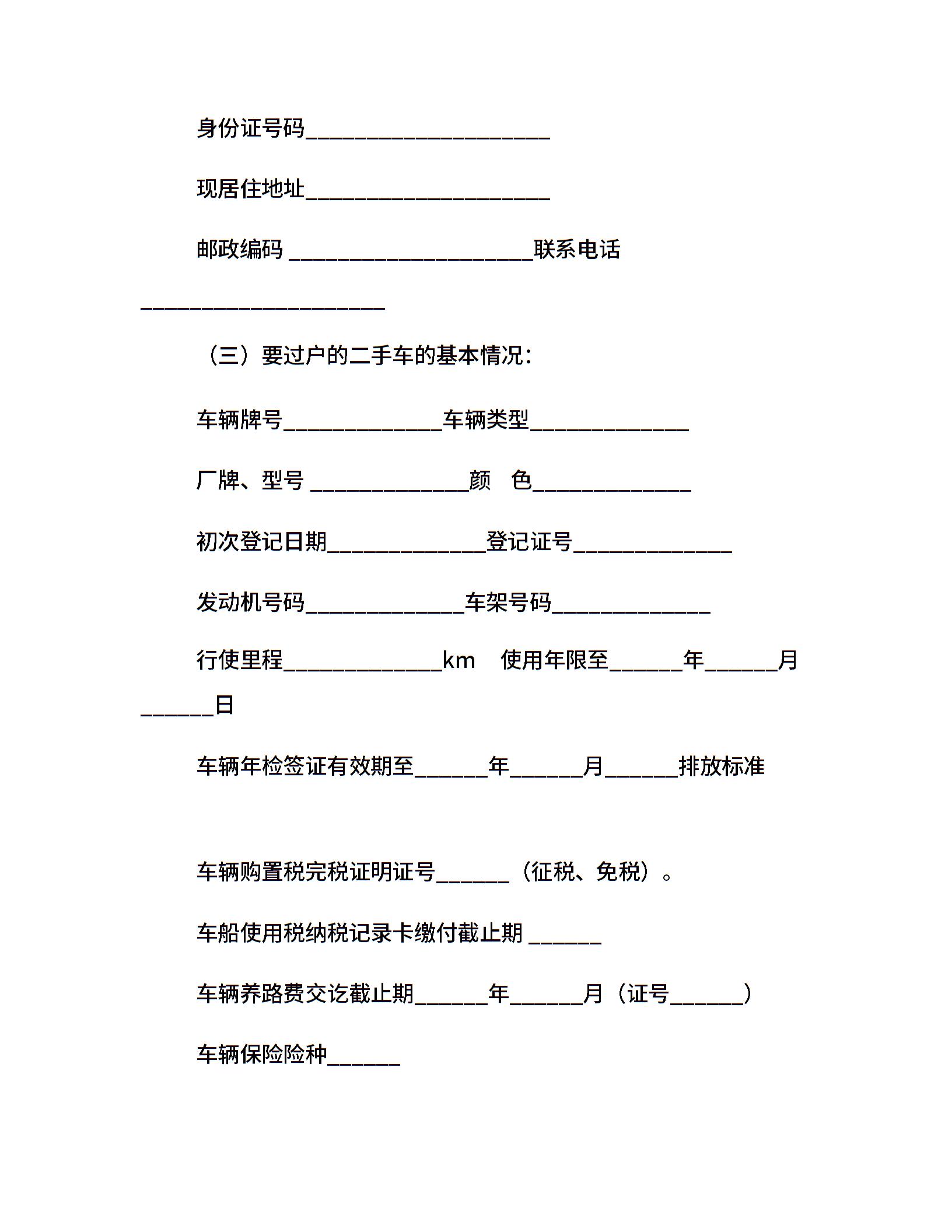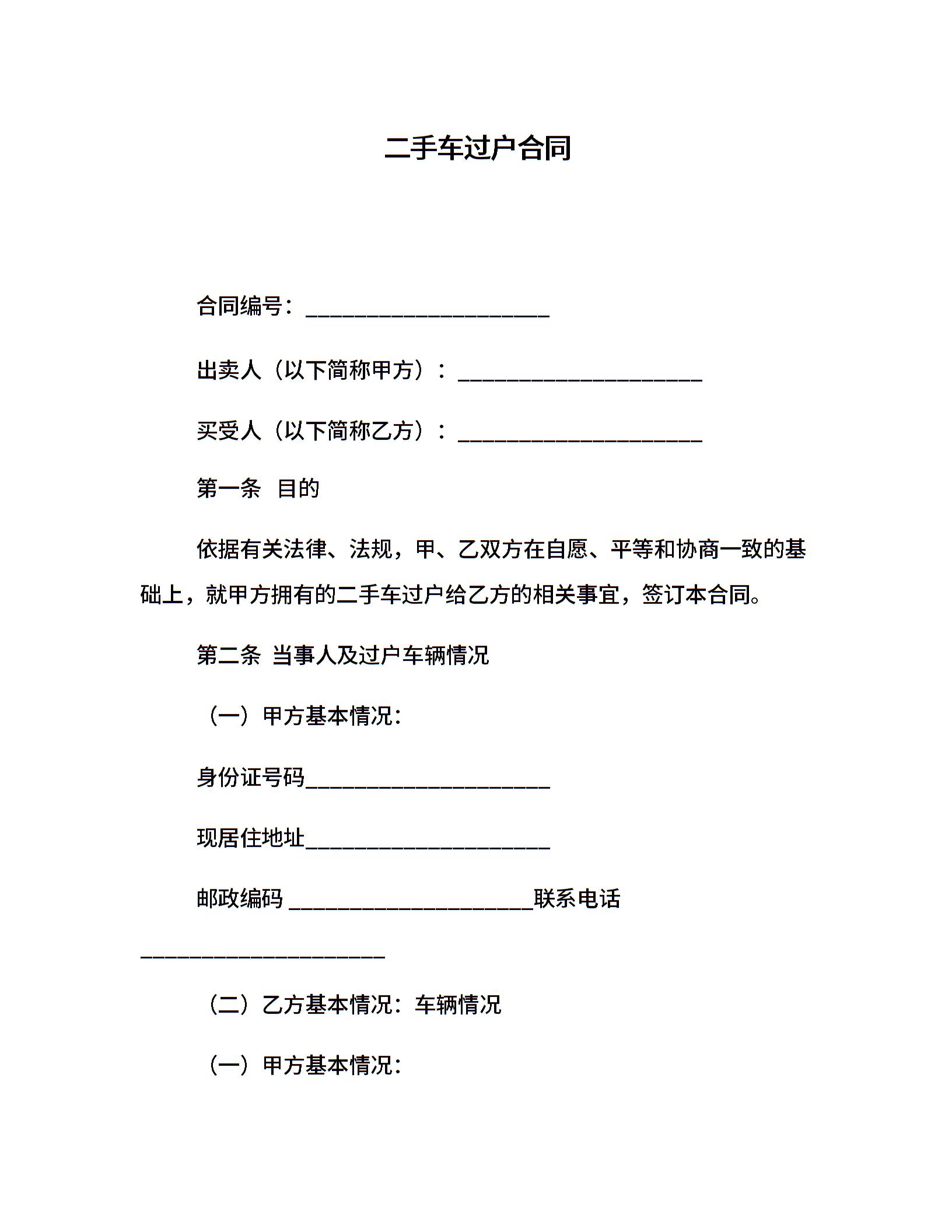 二手车过户合同