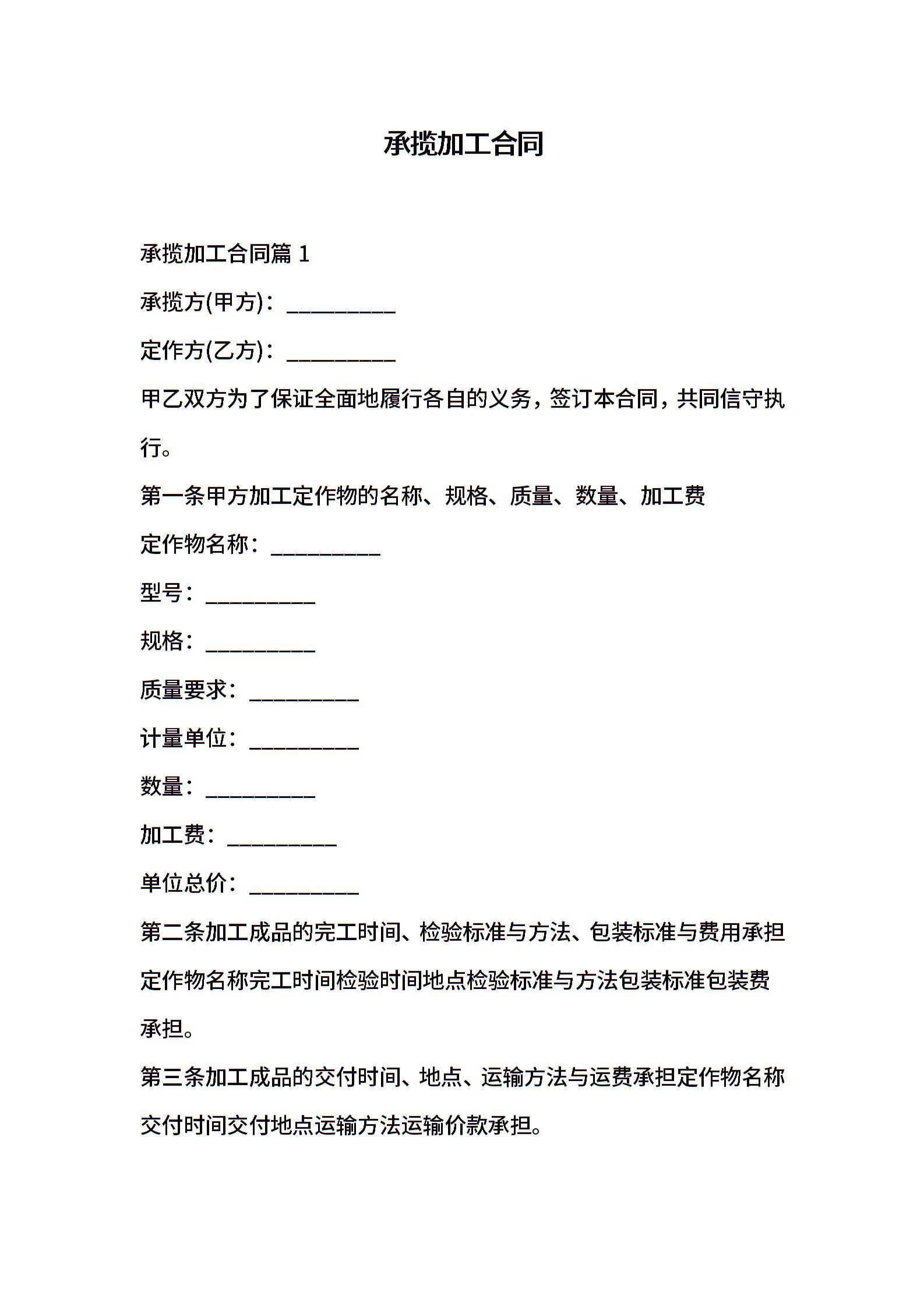 当前位置:量子办公 > 合同模板 > 加工合同 >