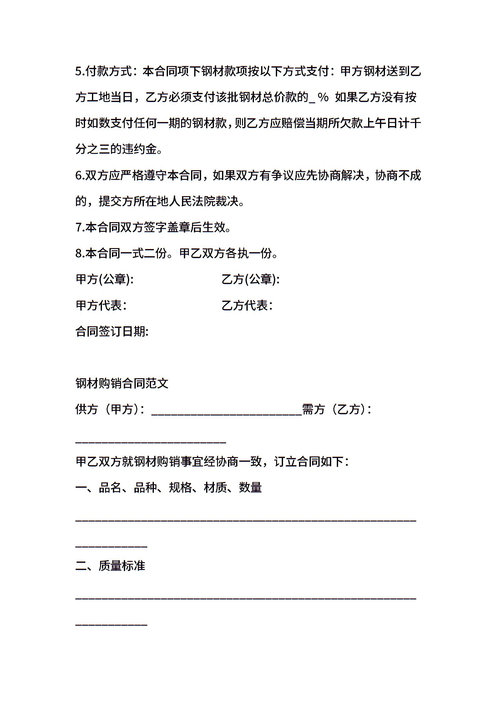 钢材购销合同示例