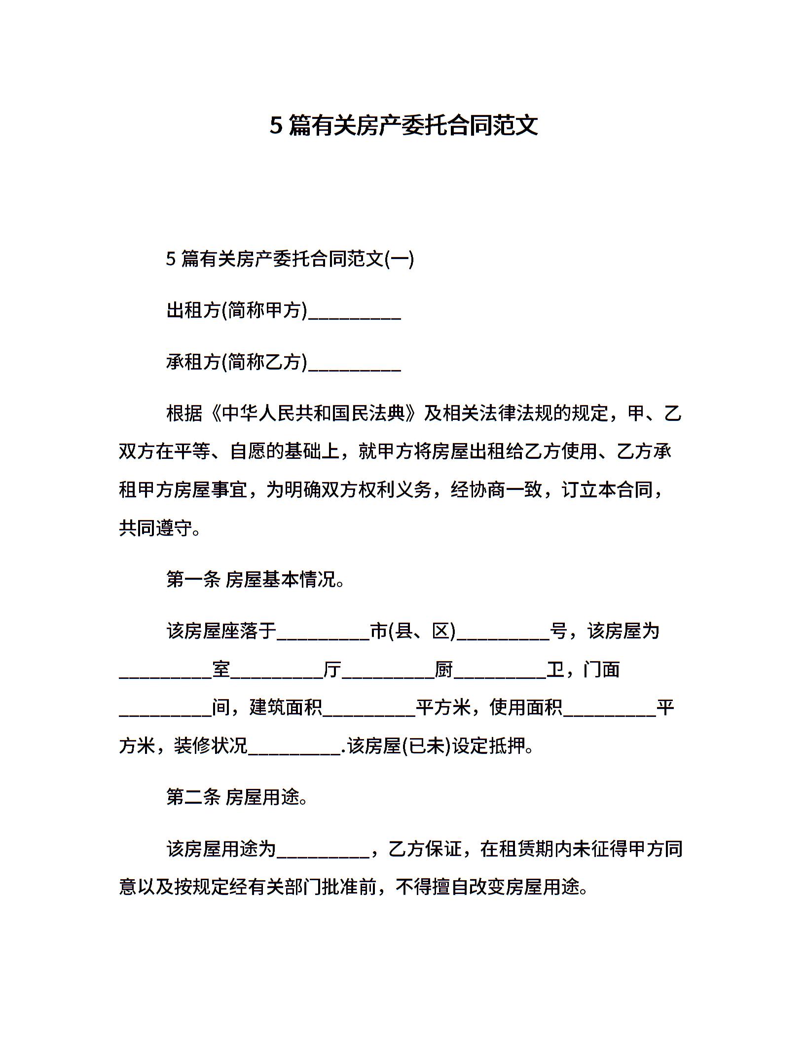 5篇有关房产委托合同范文