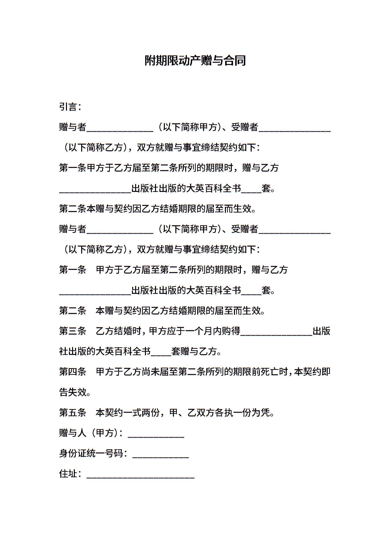附期限动产赠与合同