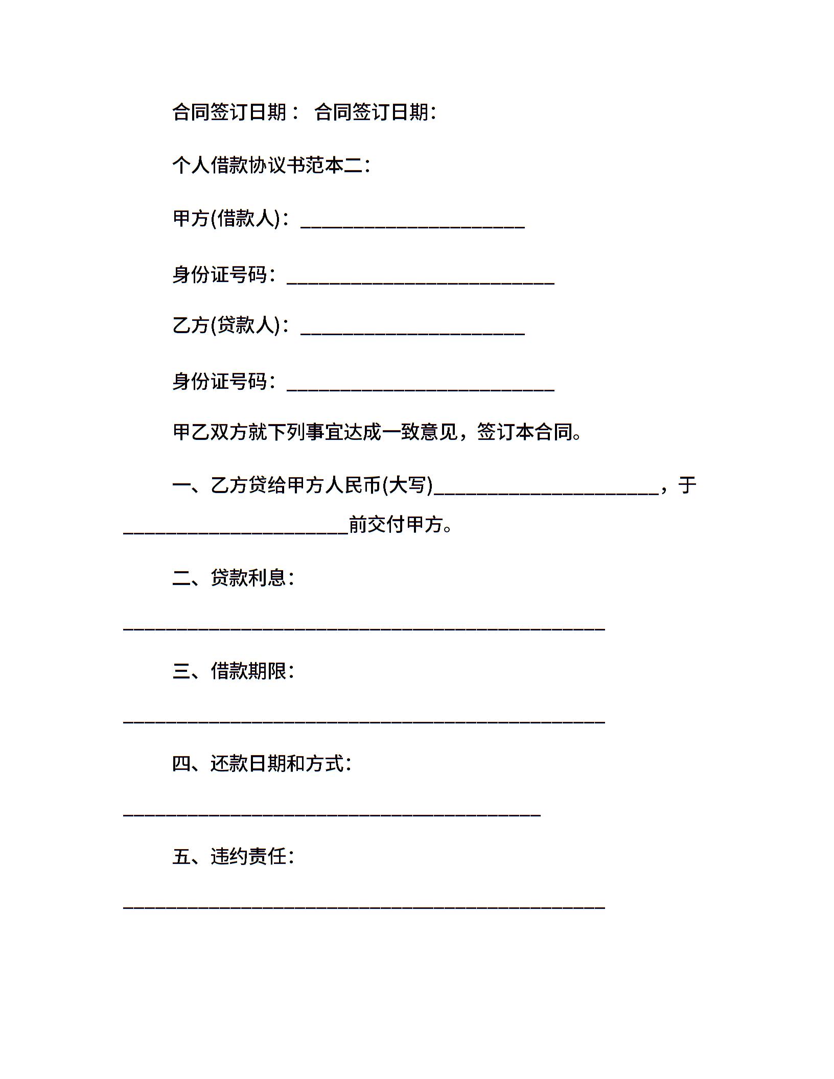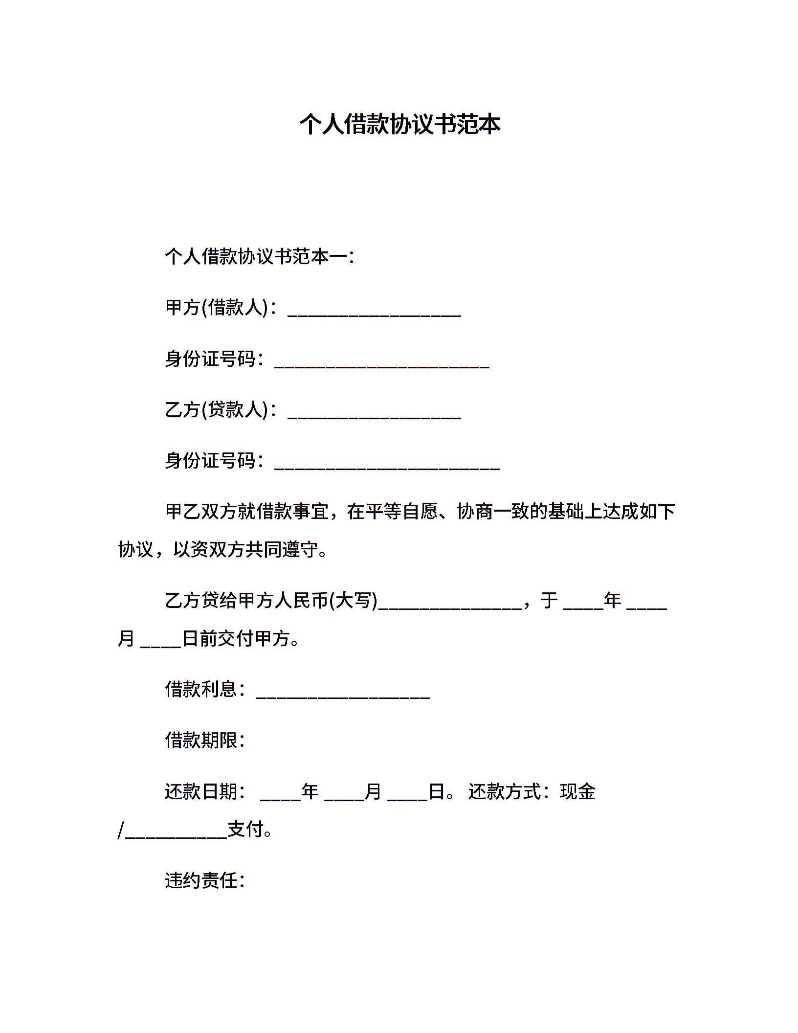 个人借款协议书范本