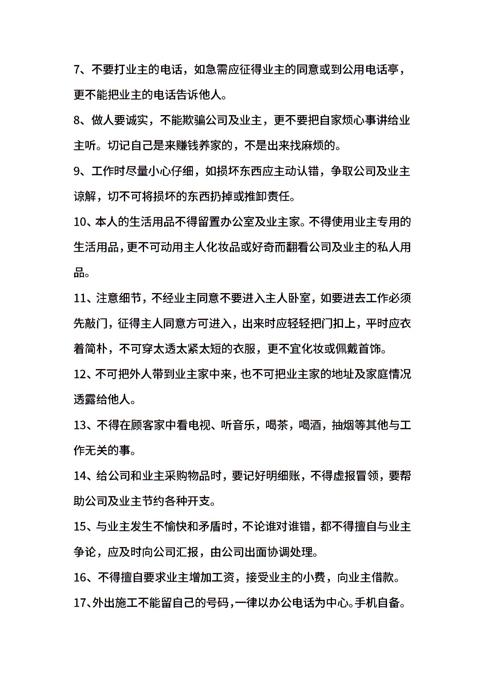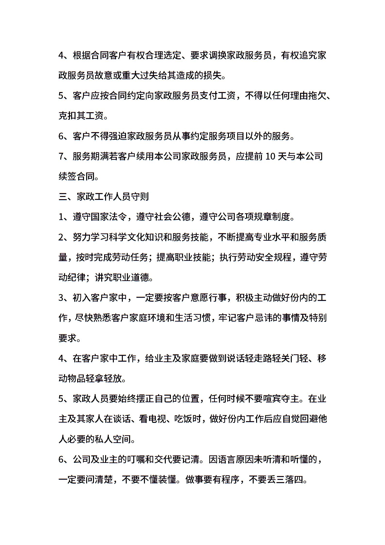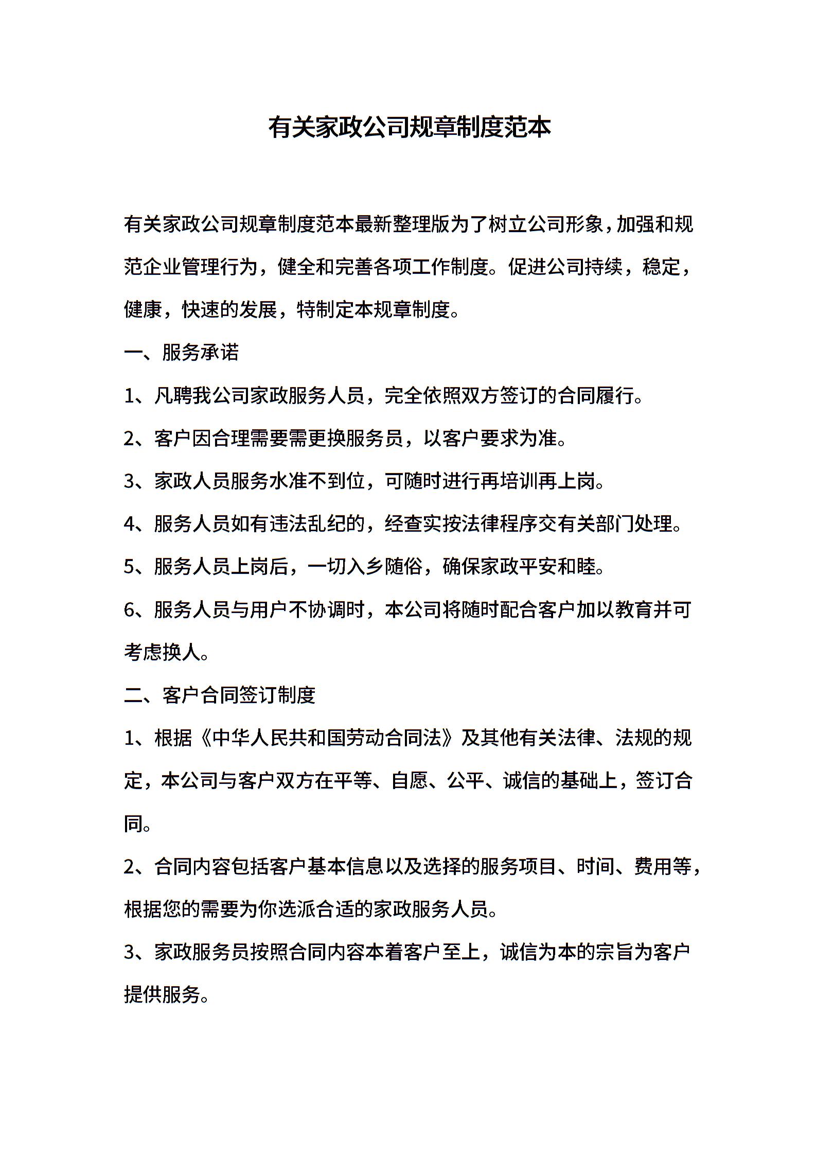 有关家政公司规章制度范本