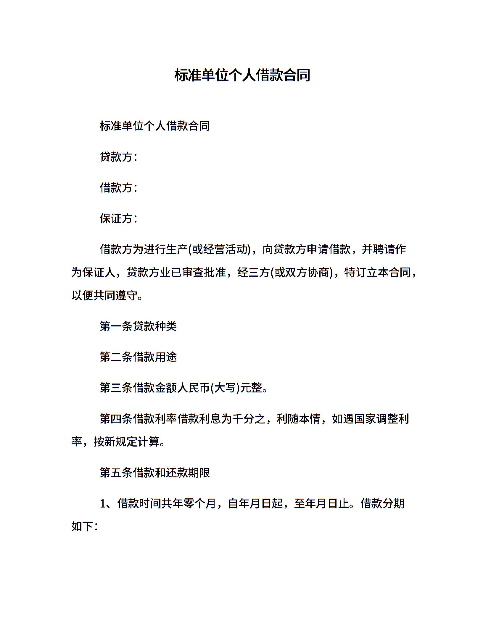 标准单位个人借款合同