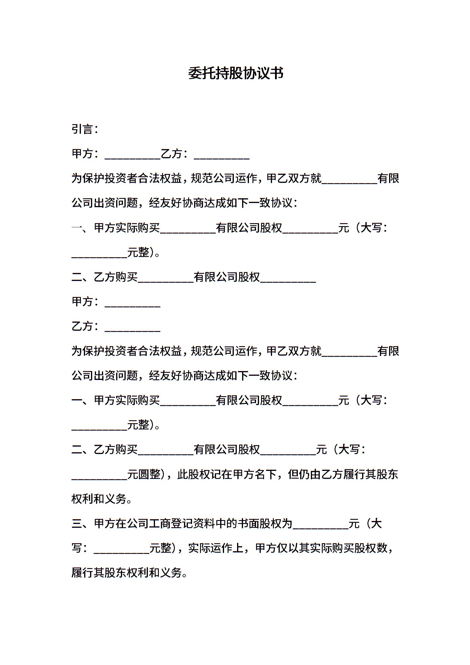 委托持股协议书