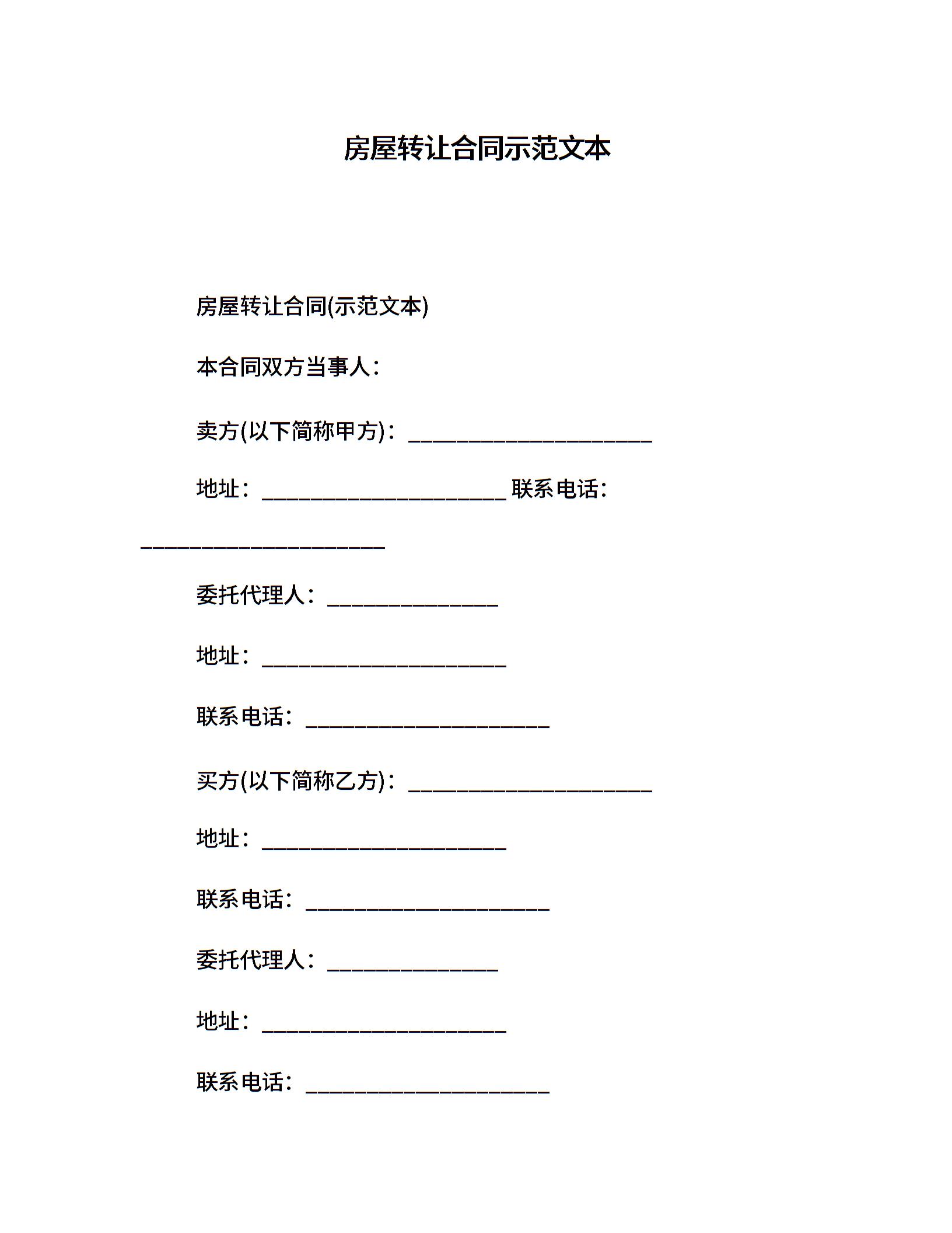 房屋转让合同示范文本