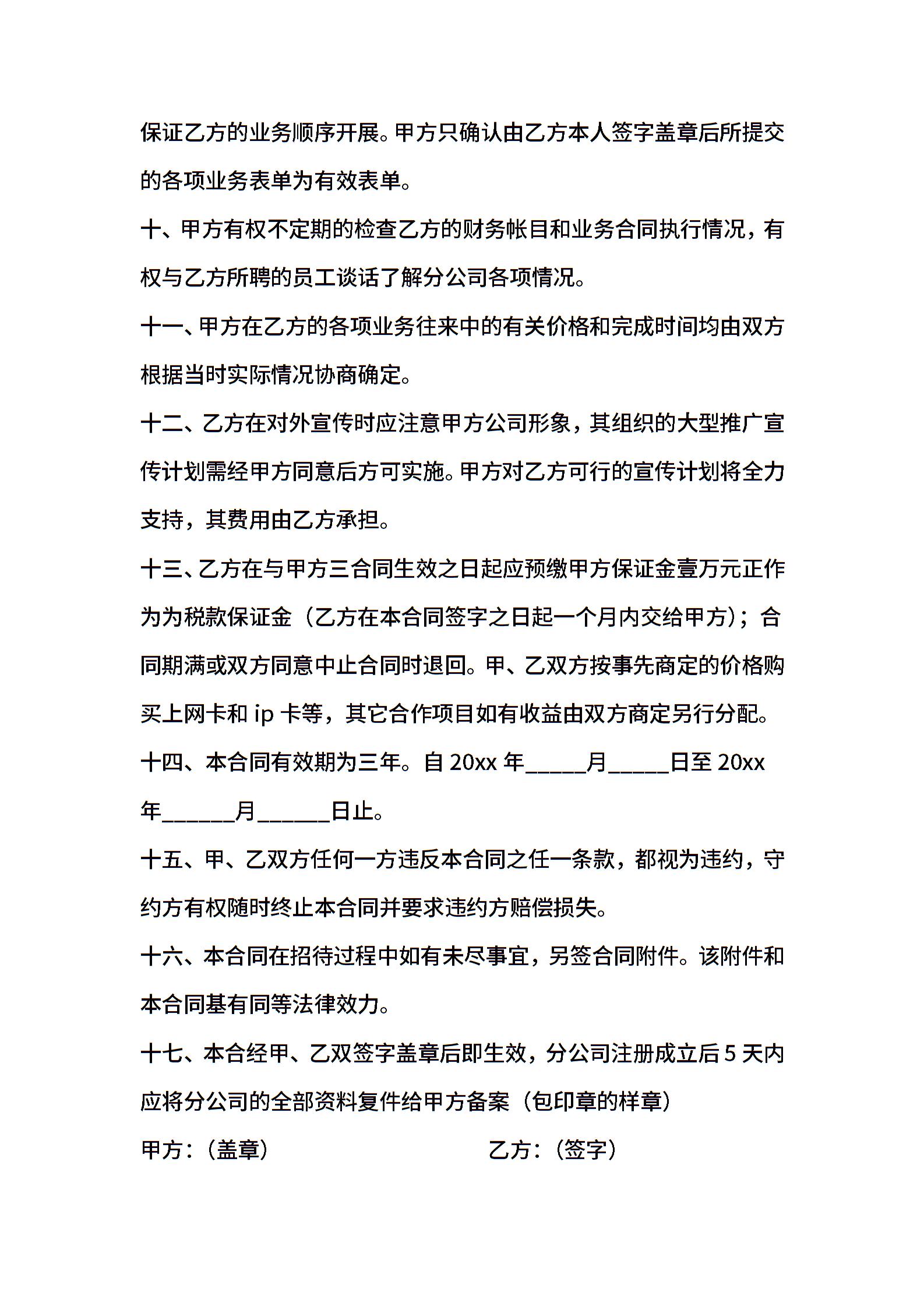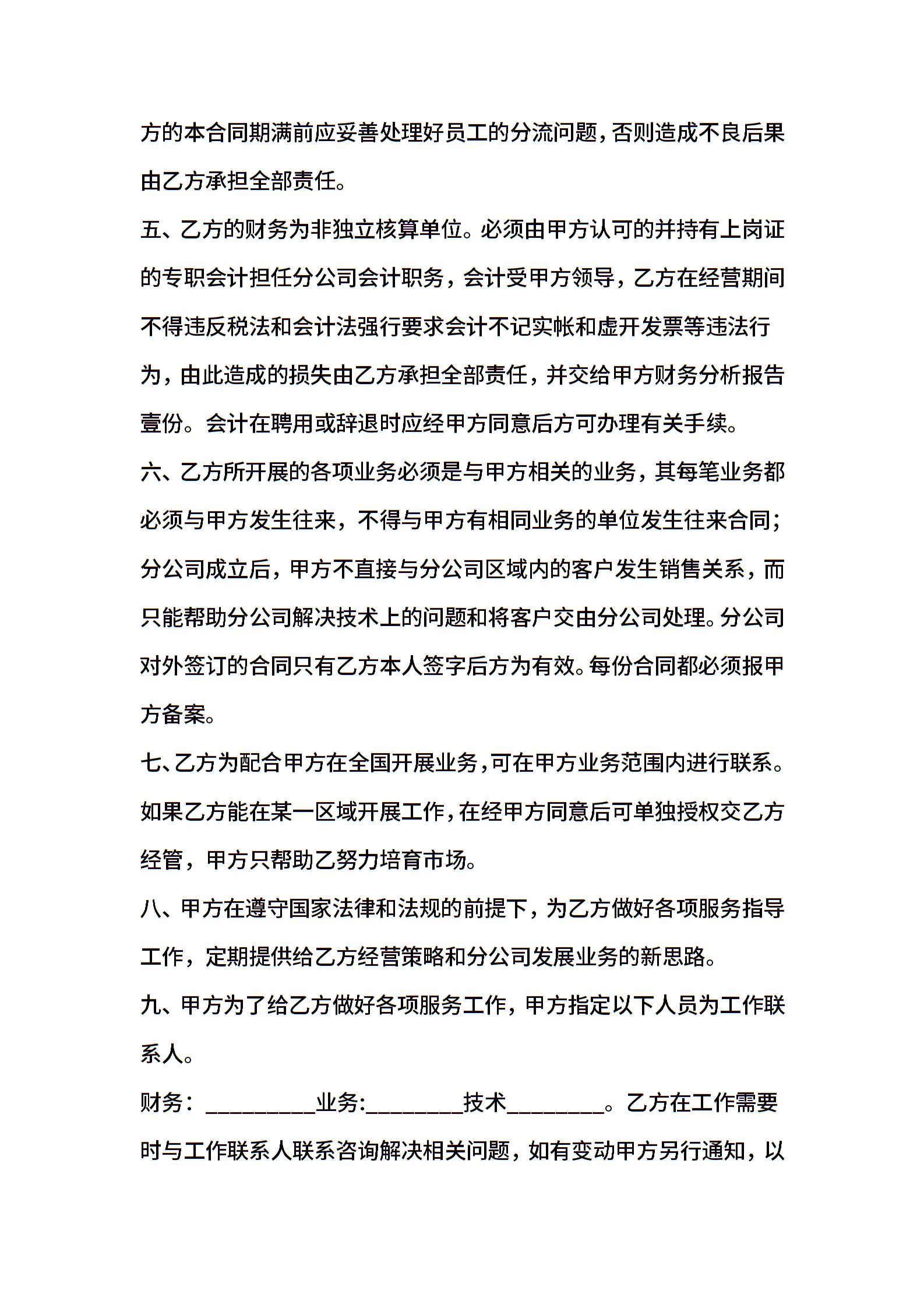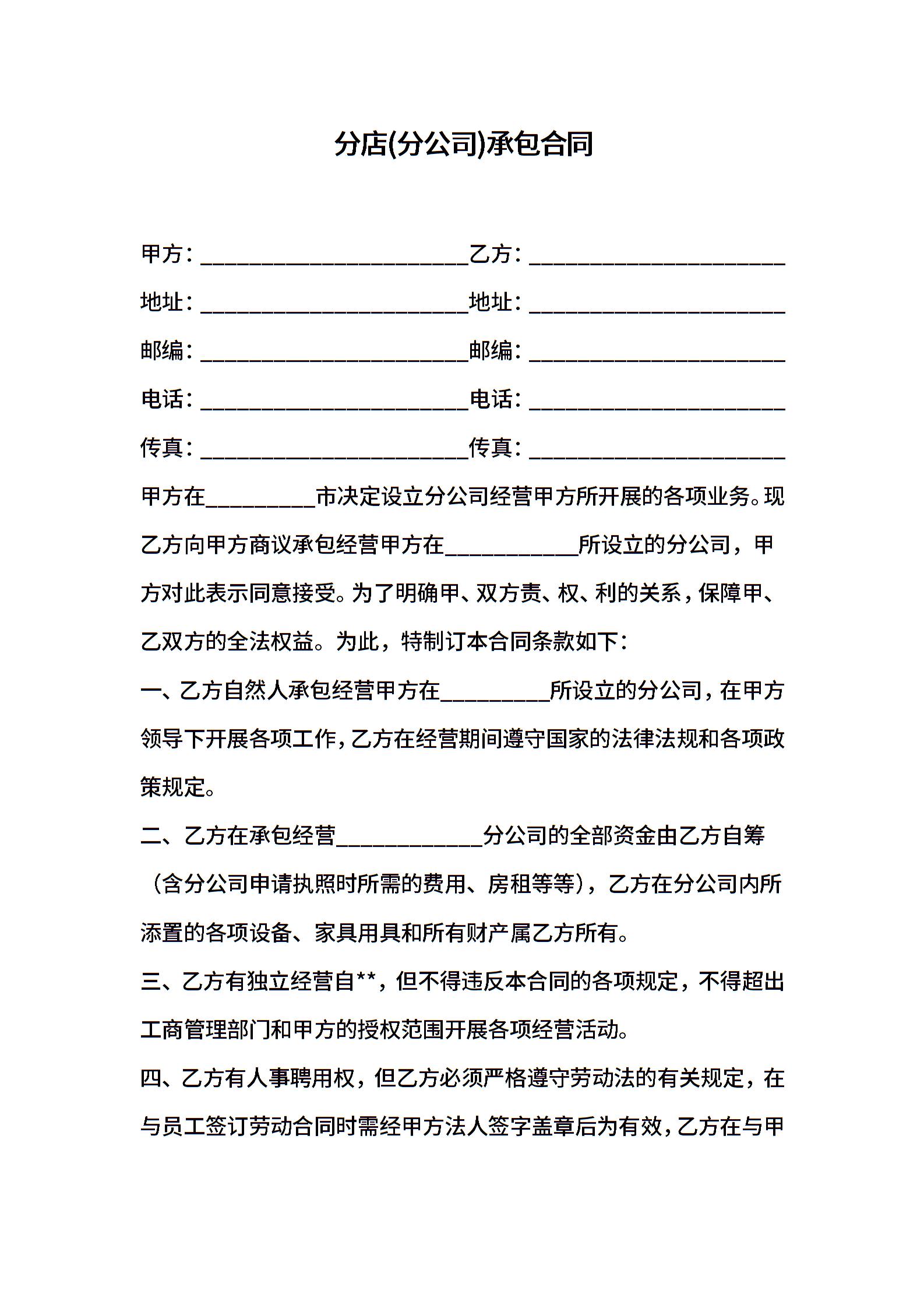 分店(分公司)承包合同
