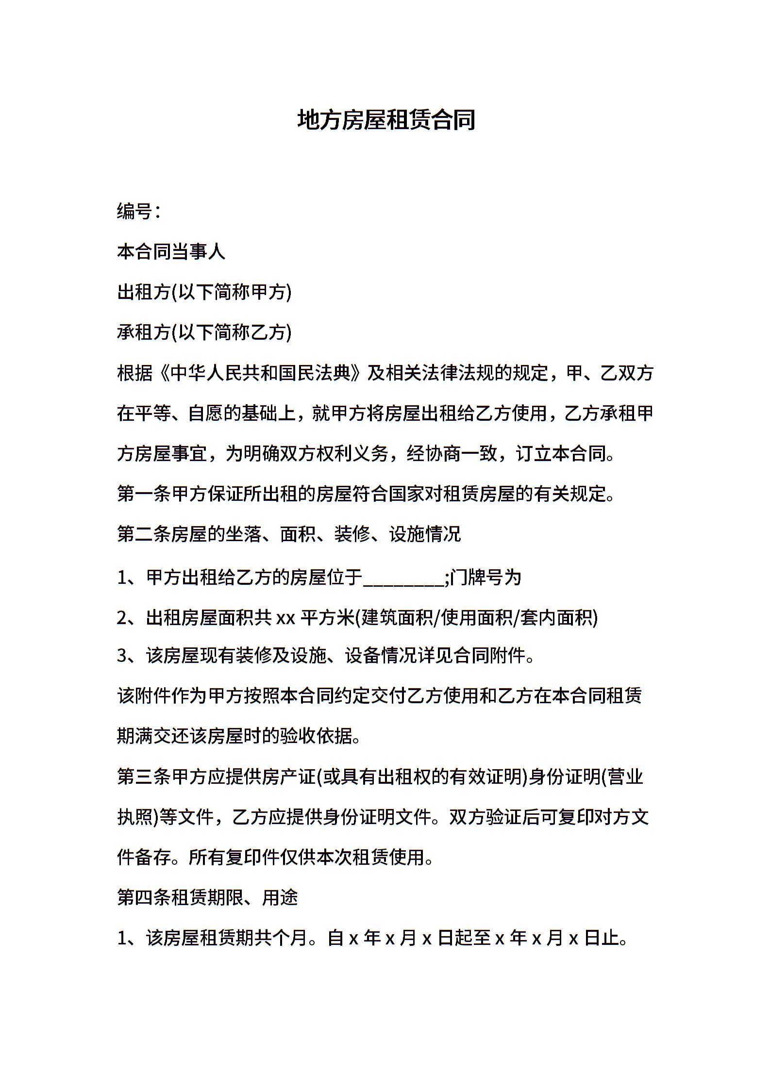 地方房屋租赁合同