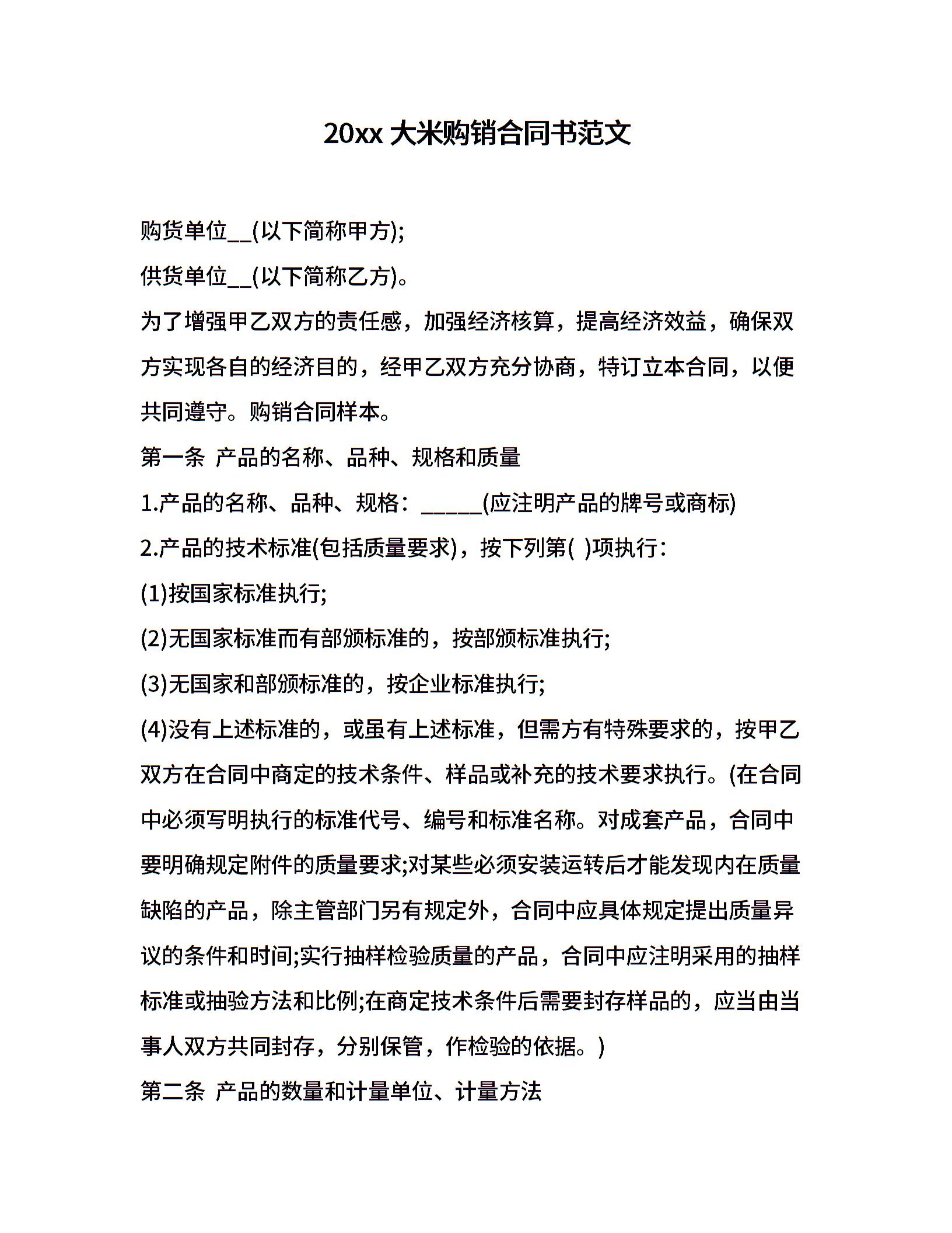 20xx大米购销合同书范文
