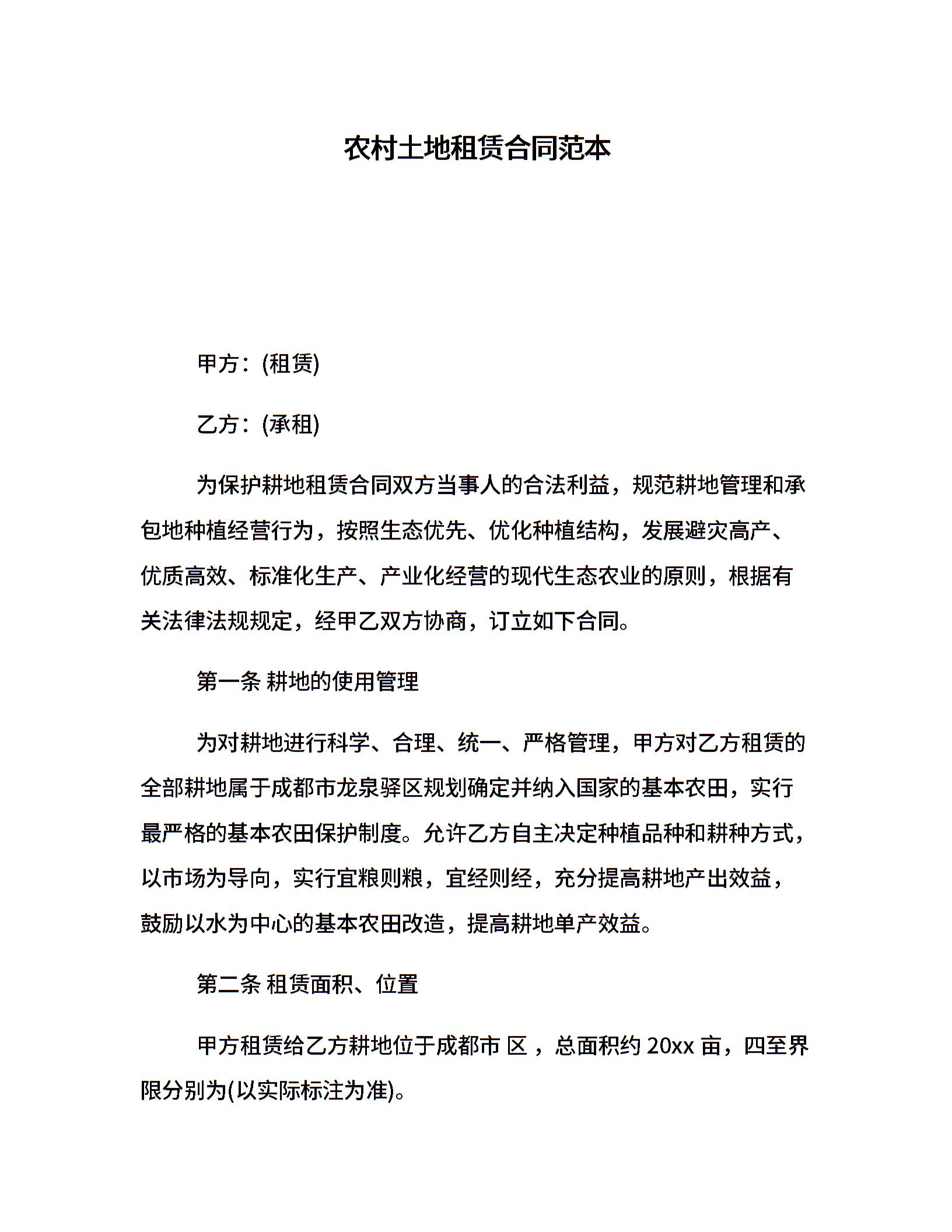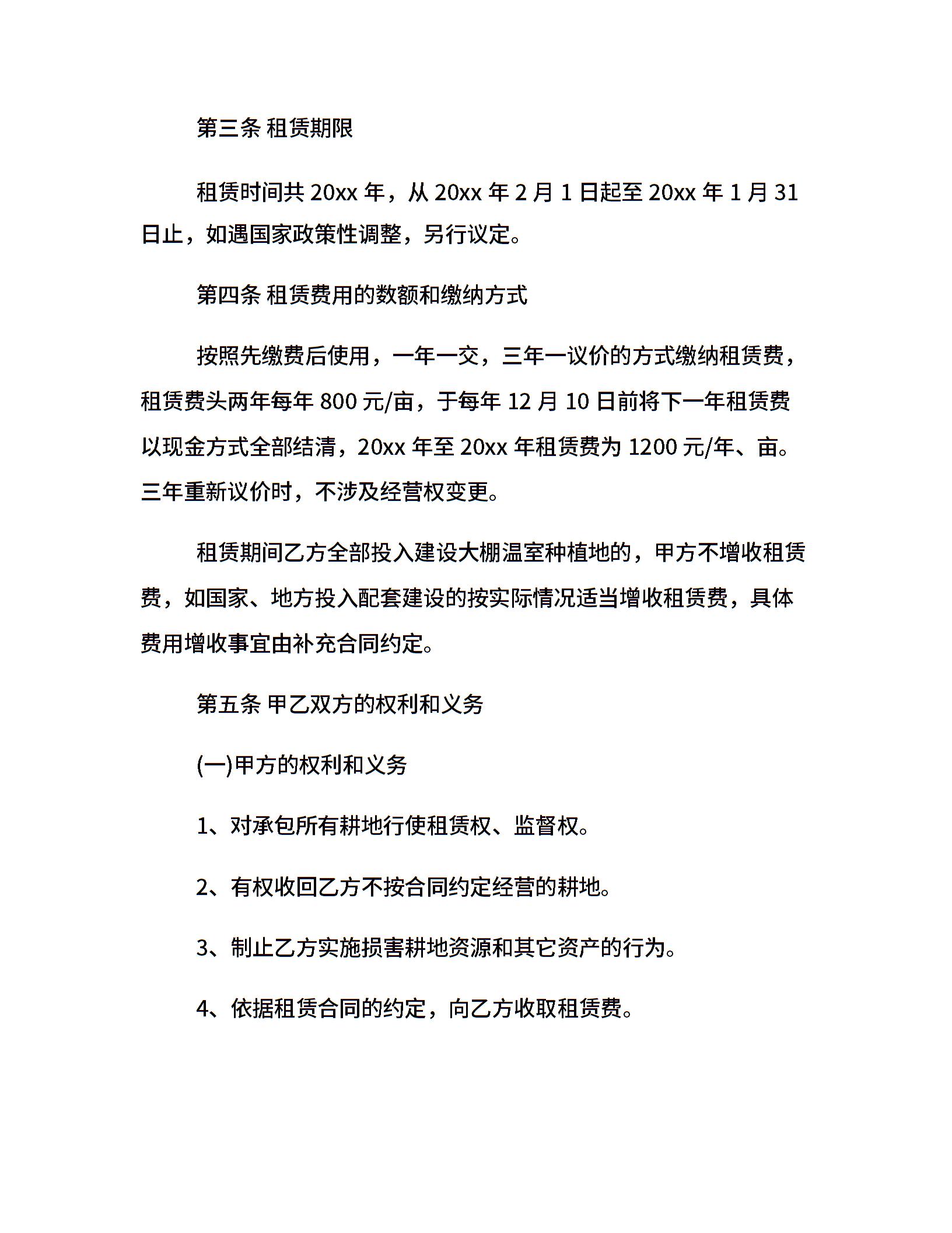 农村土地租赁合同范本
