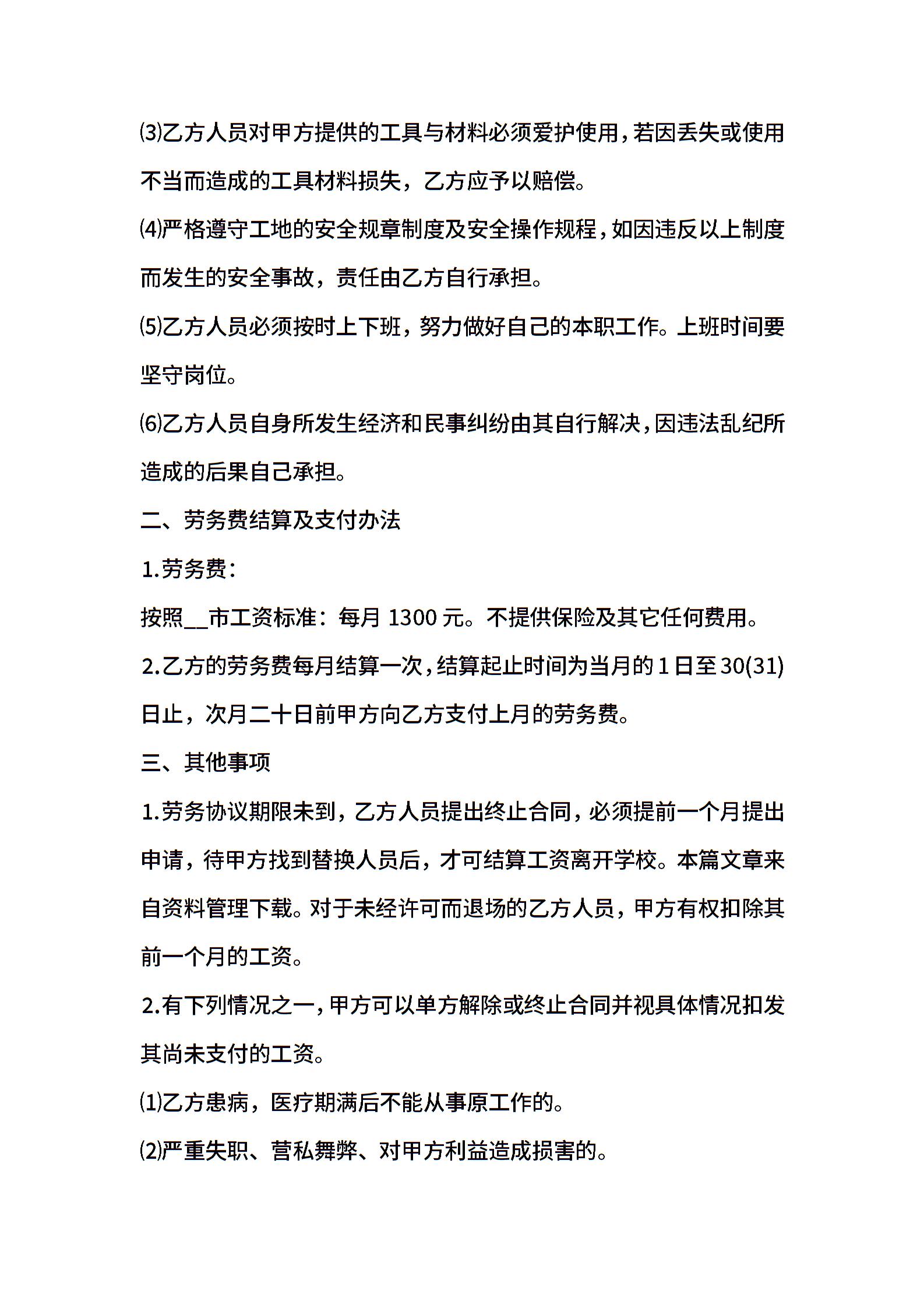 当前位置:量子办公 > 合同模板 > 劳务合同 >