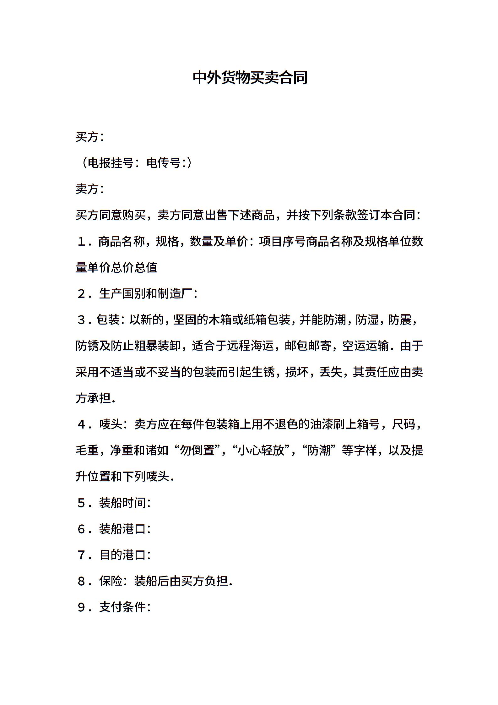 中外货物买卖合同