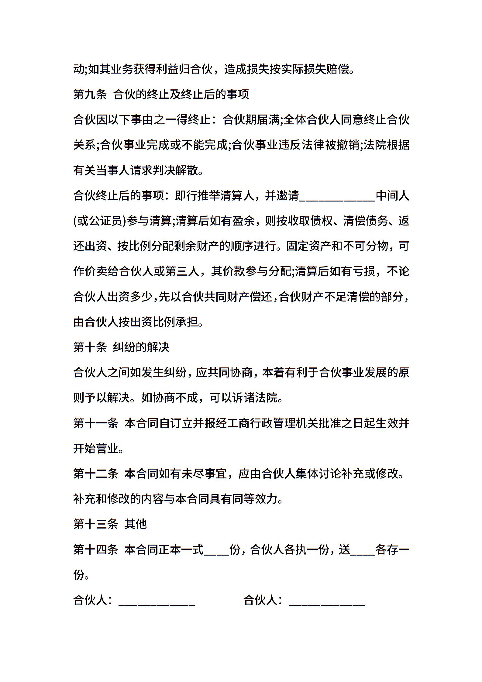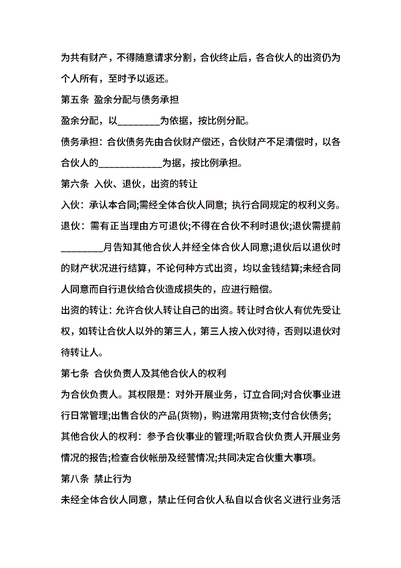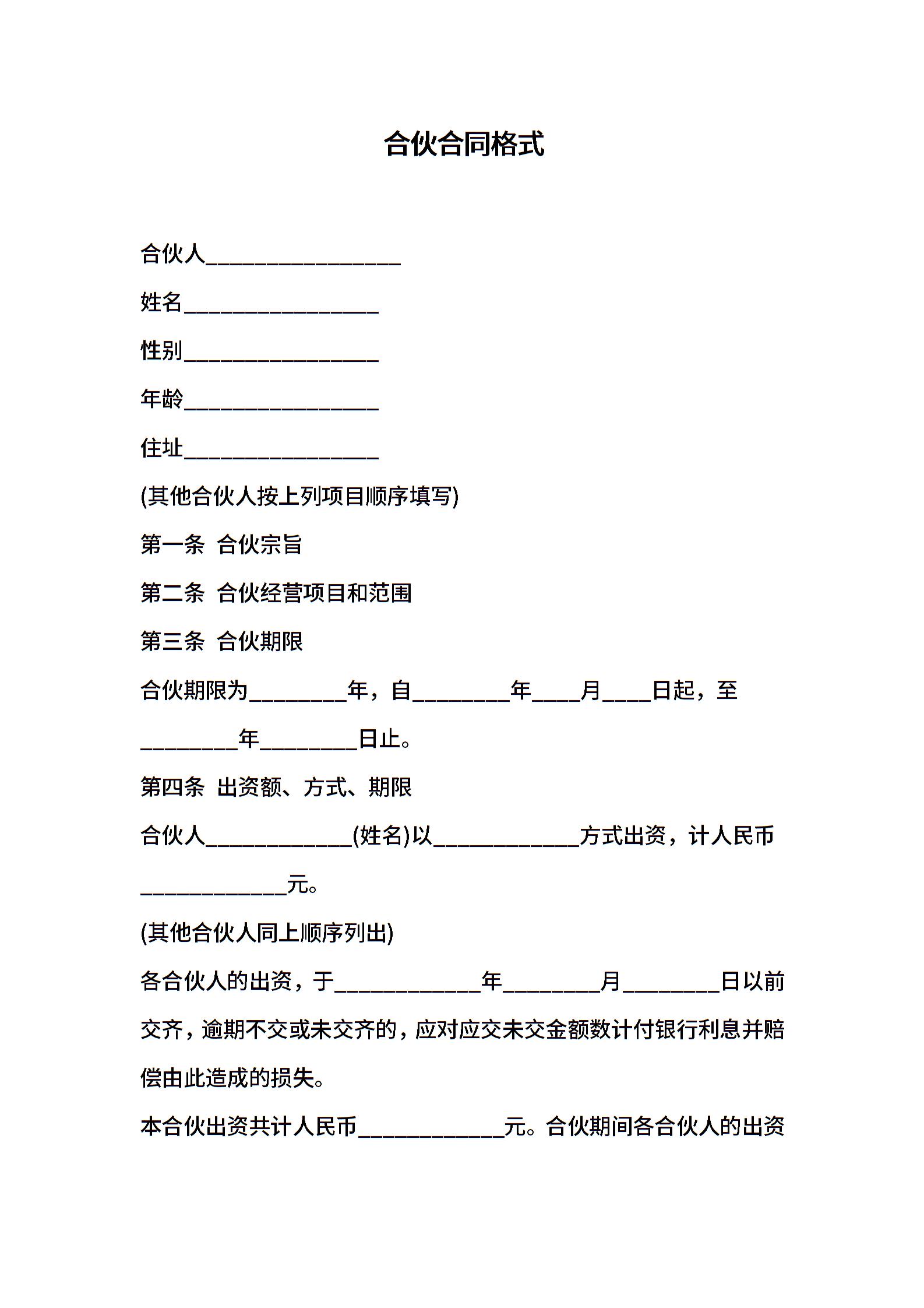 合伙合同格式