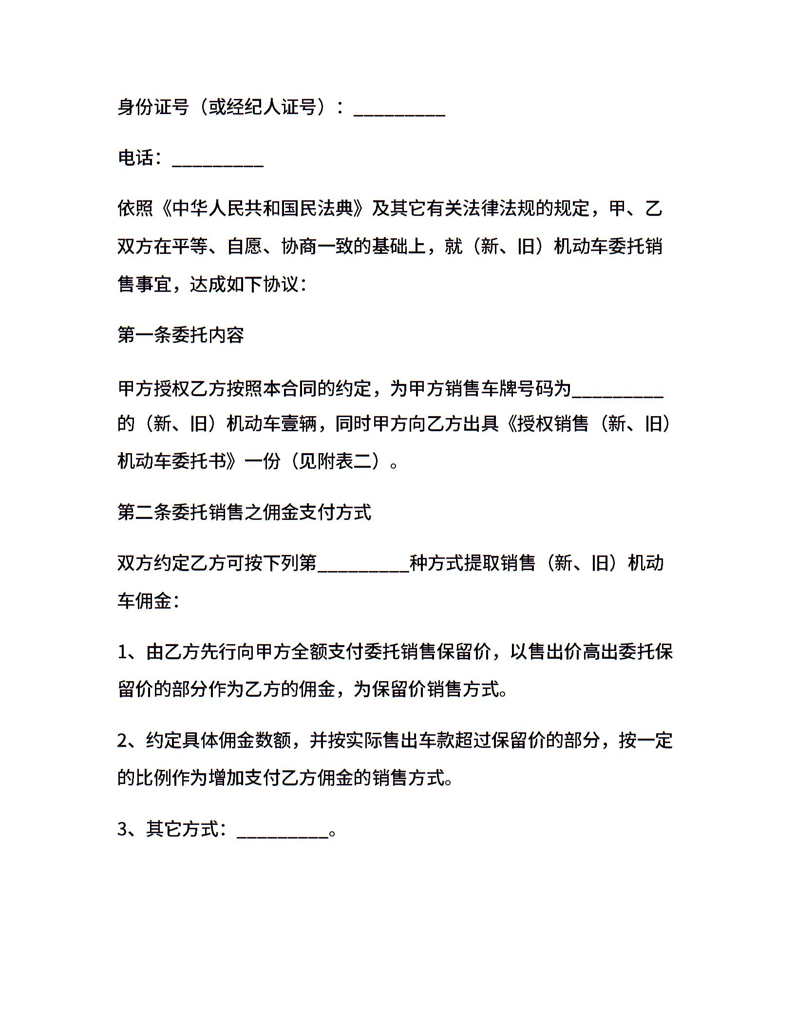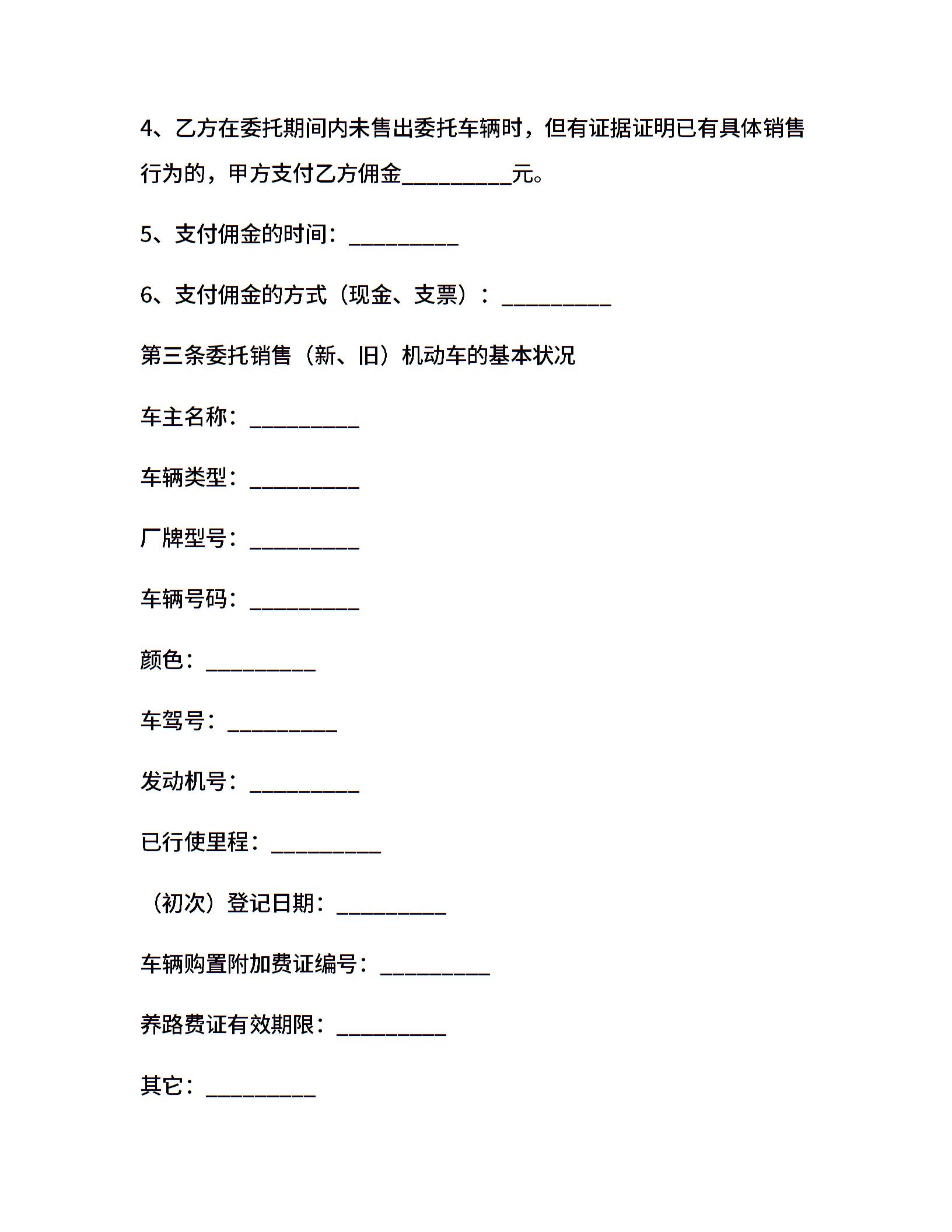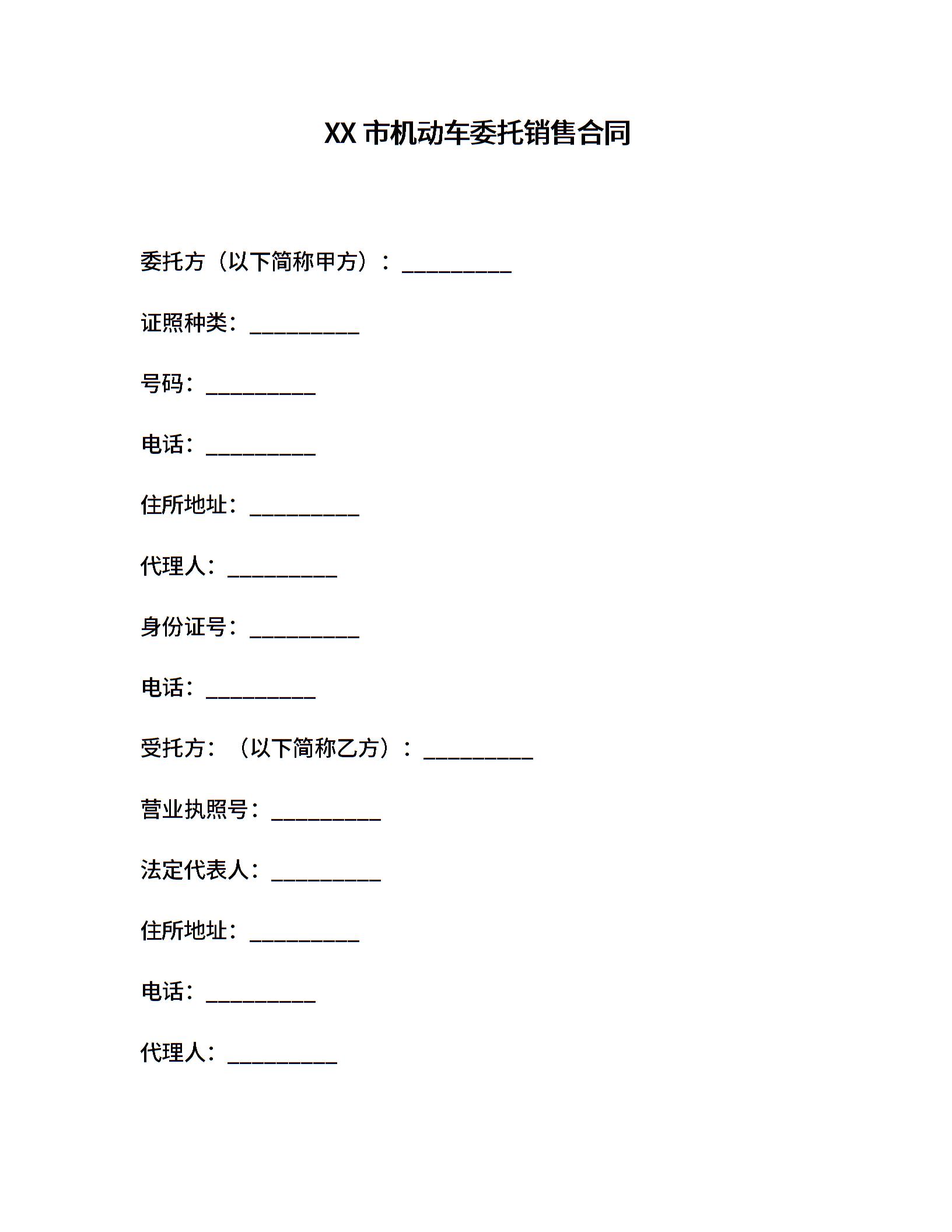 青岛市机动车委托销售合同