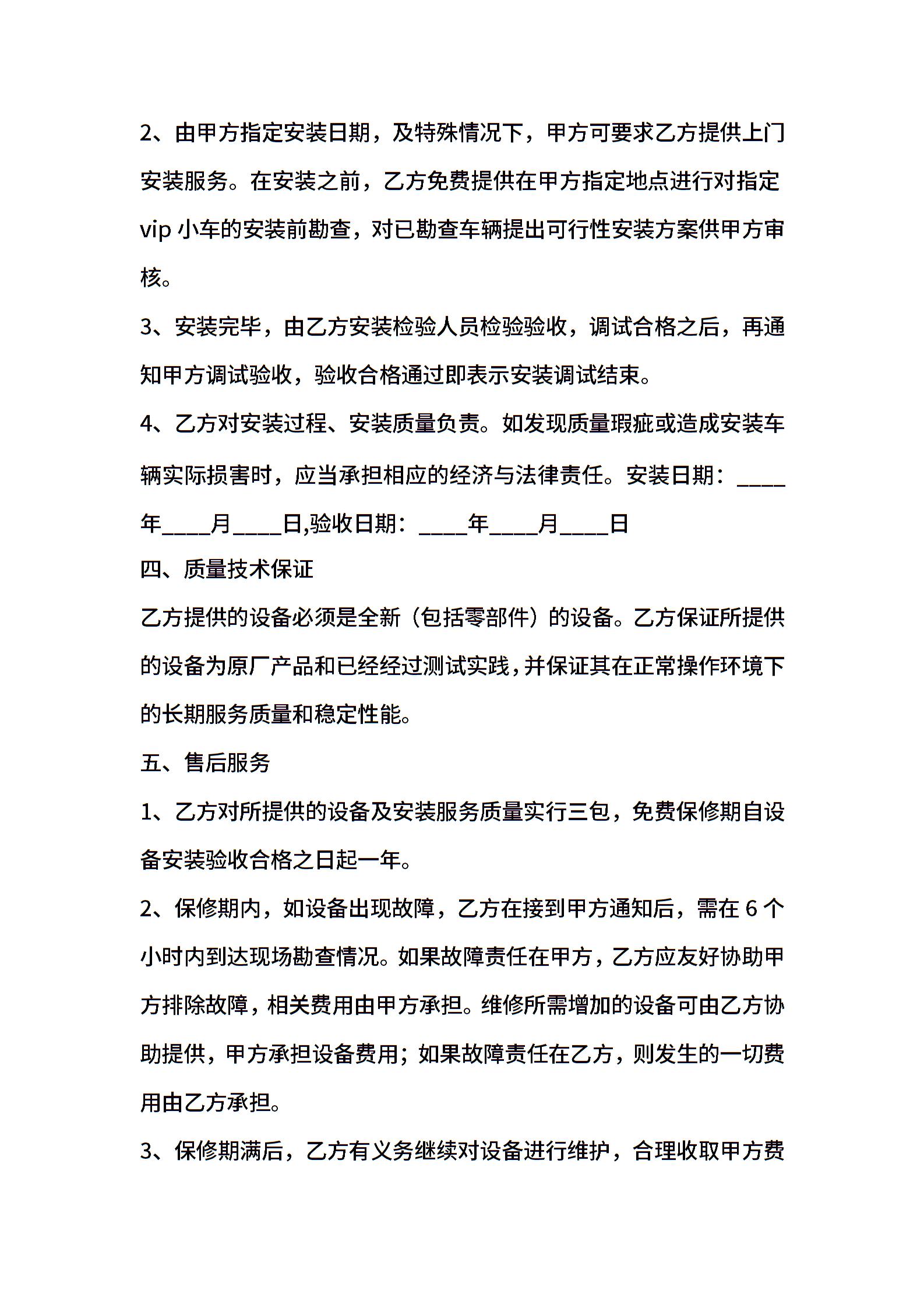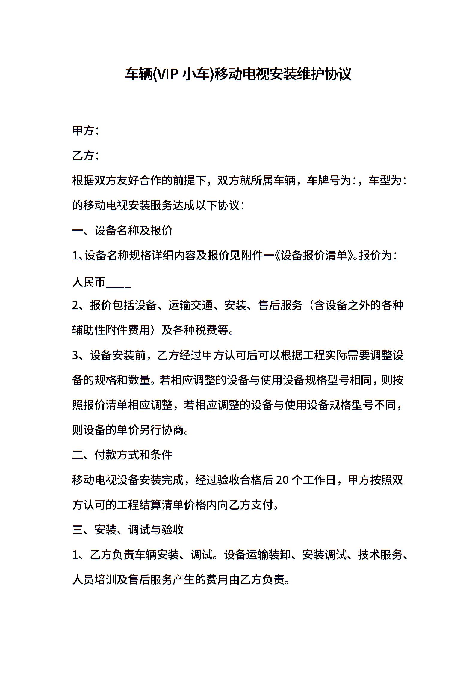 车辆(VIP小车)移动电视安装维护协议
