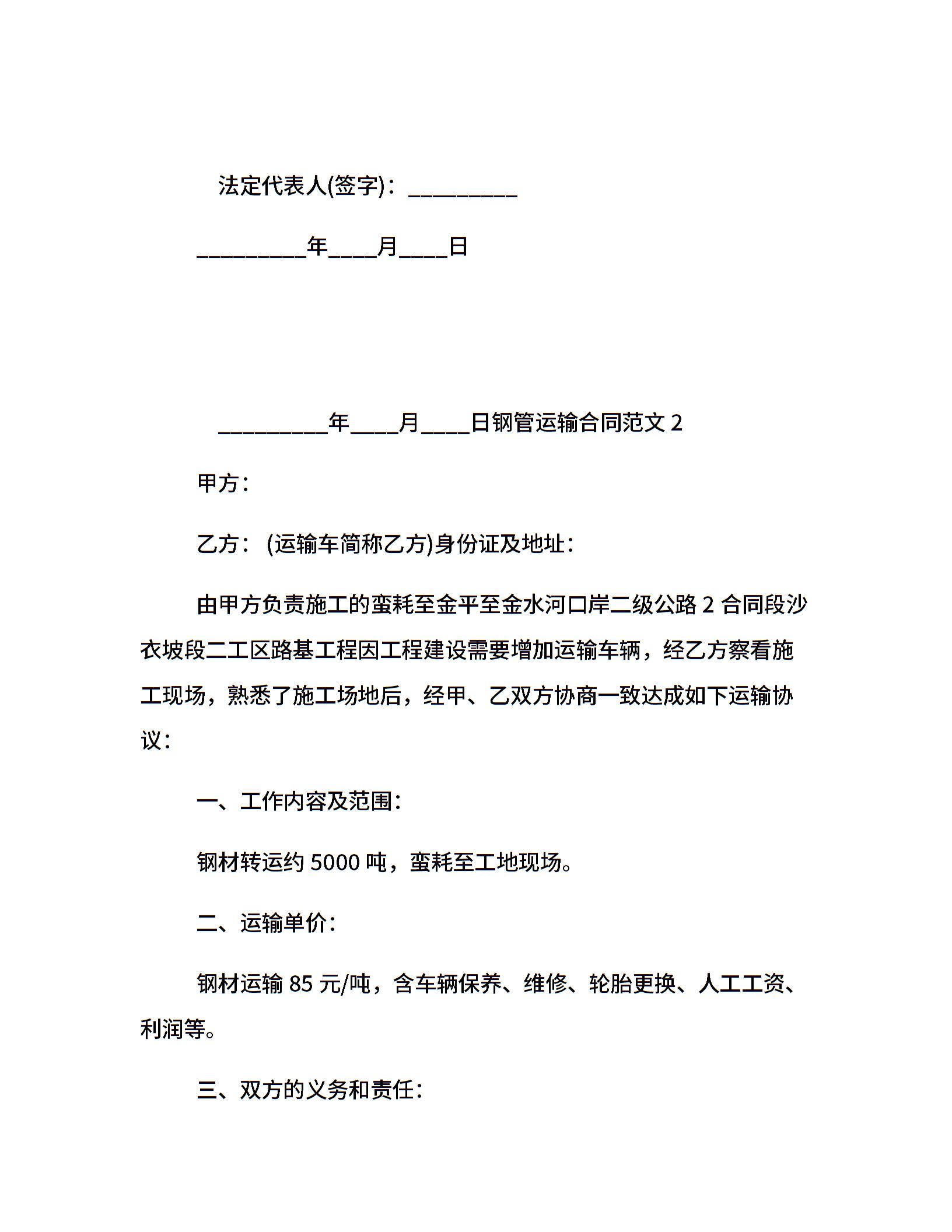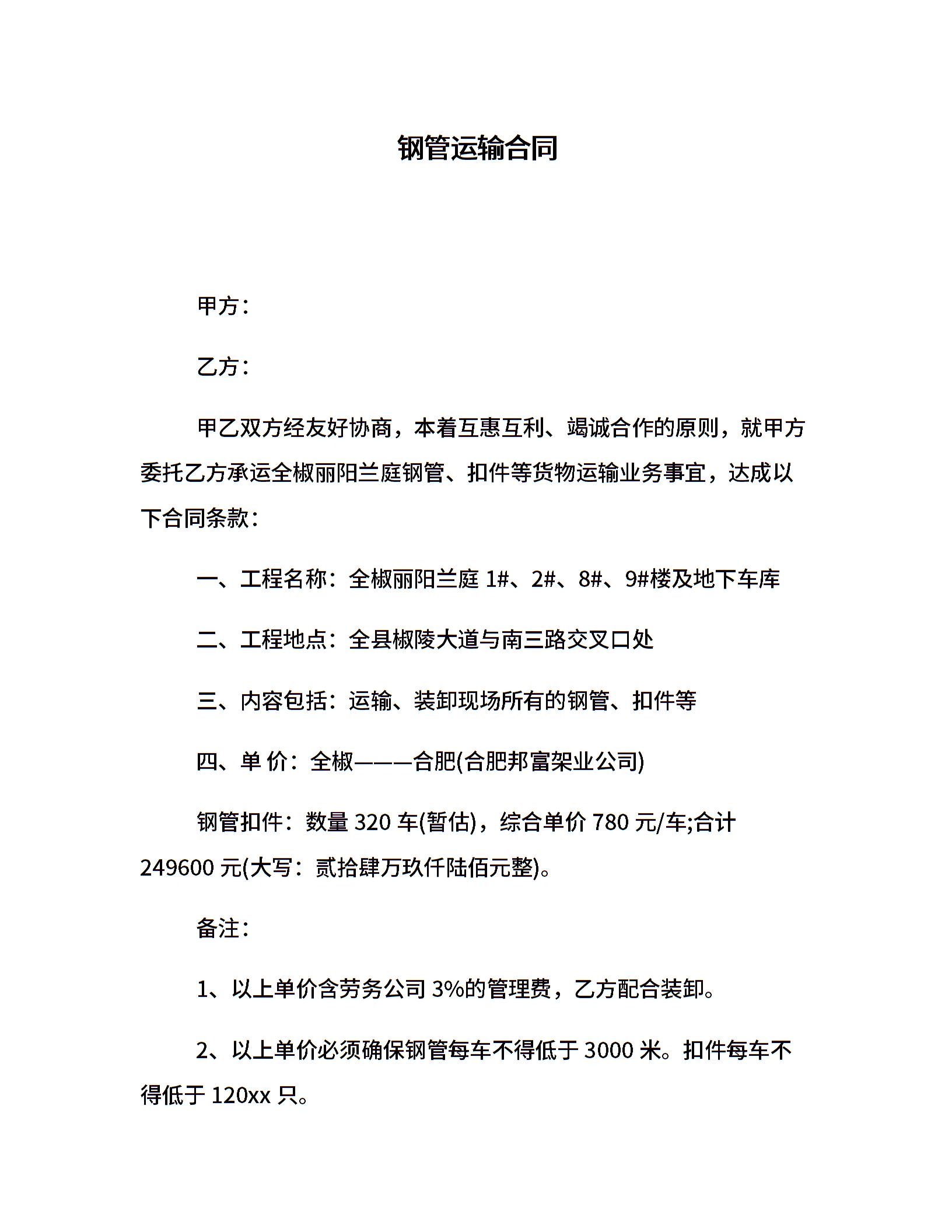 钢管运输合同