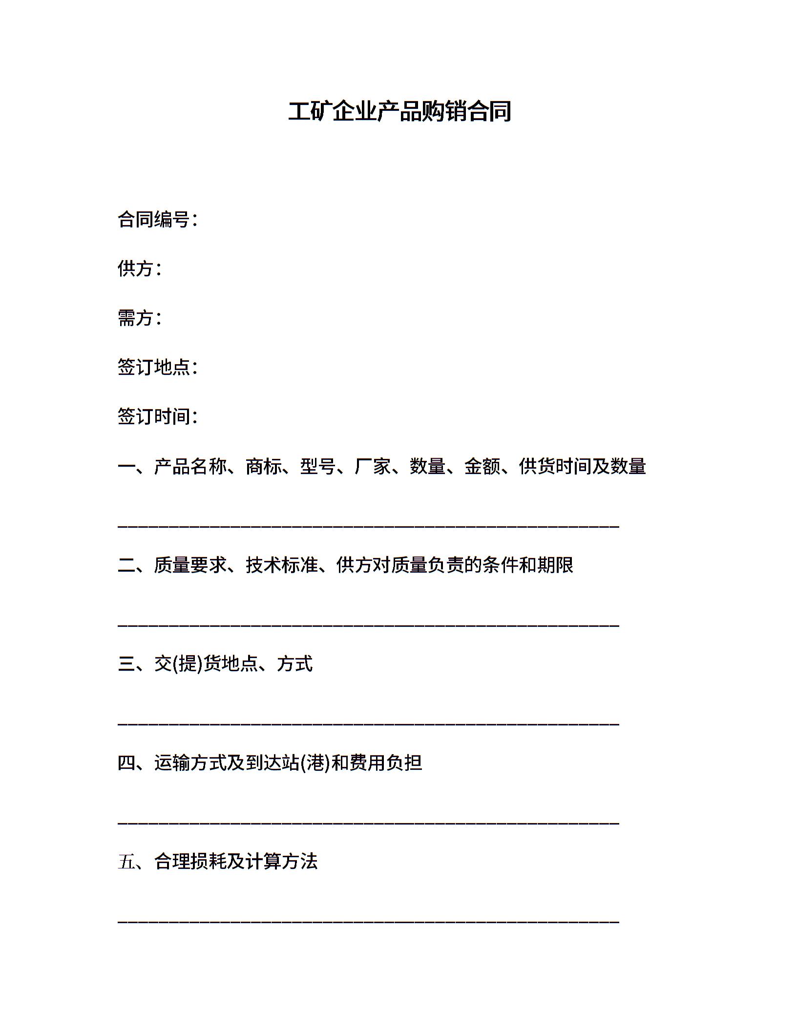 工矿企业产品购销合同
