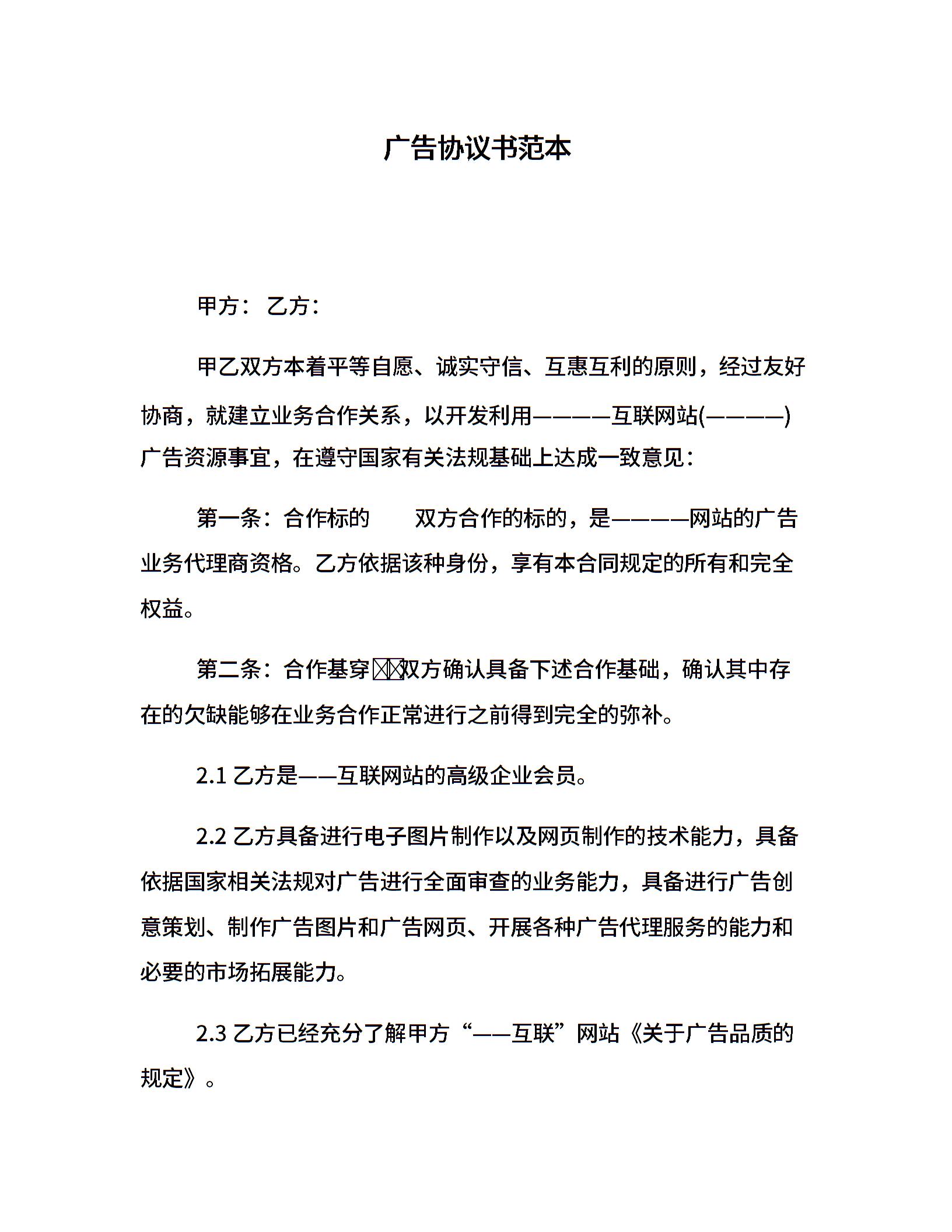 广告协议书范本