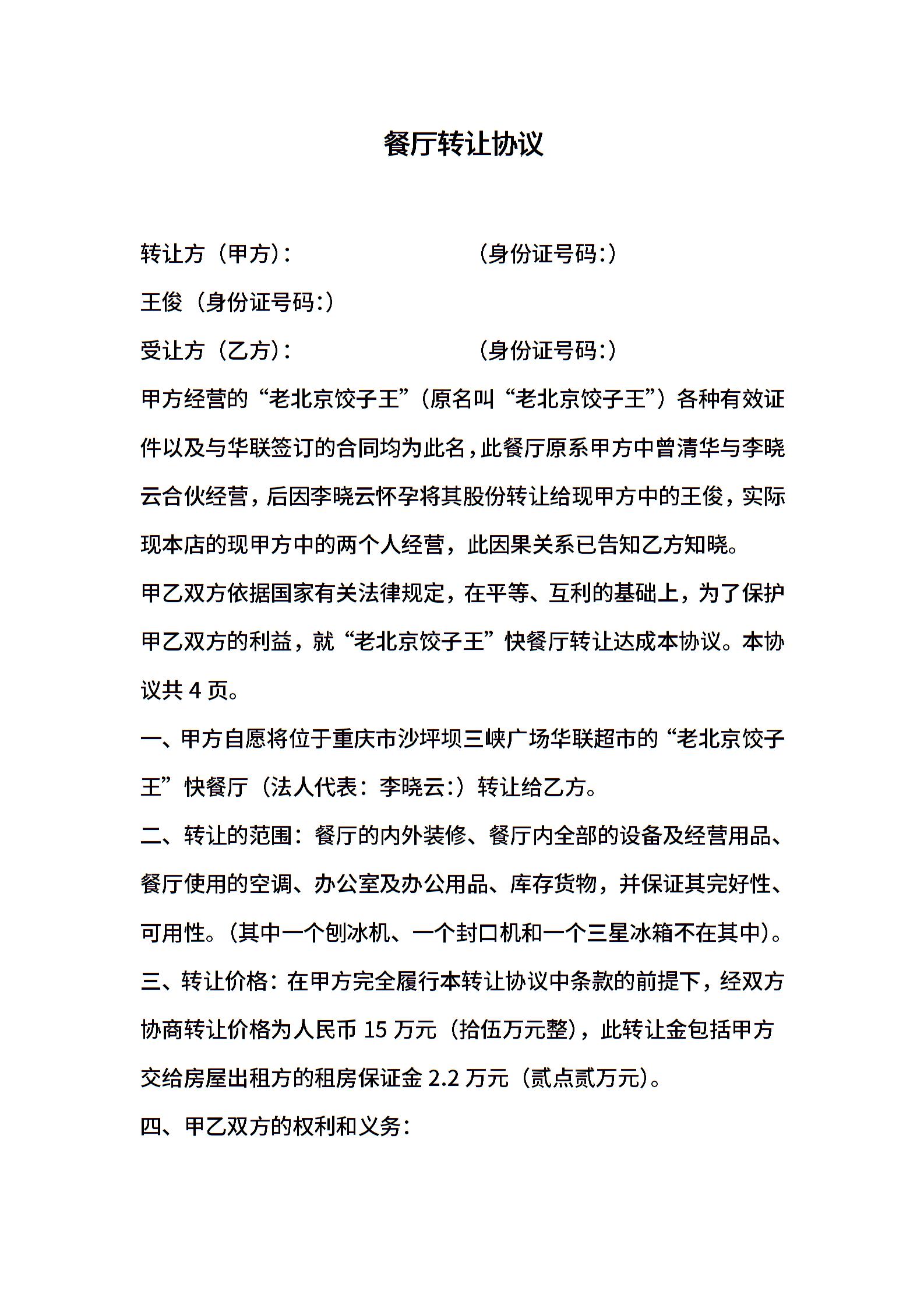 当前位置:量子办公 > 合同模板 > 转让合同 >