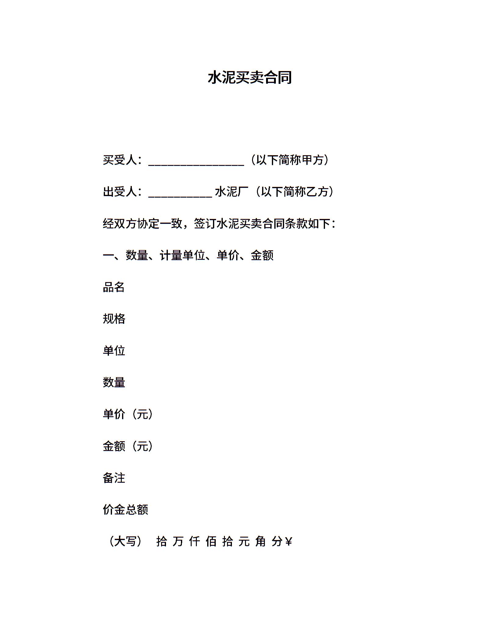 水泥买卖合同