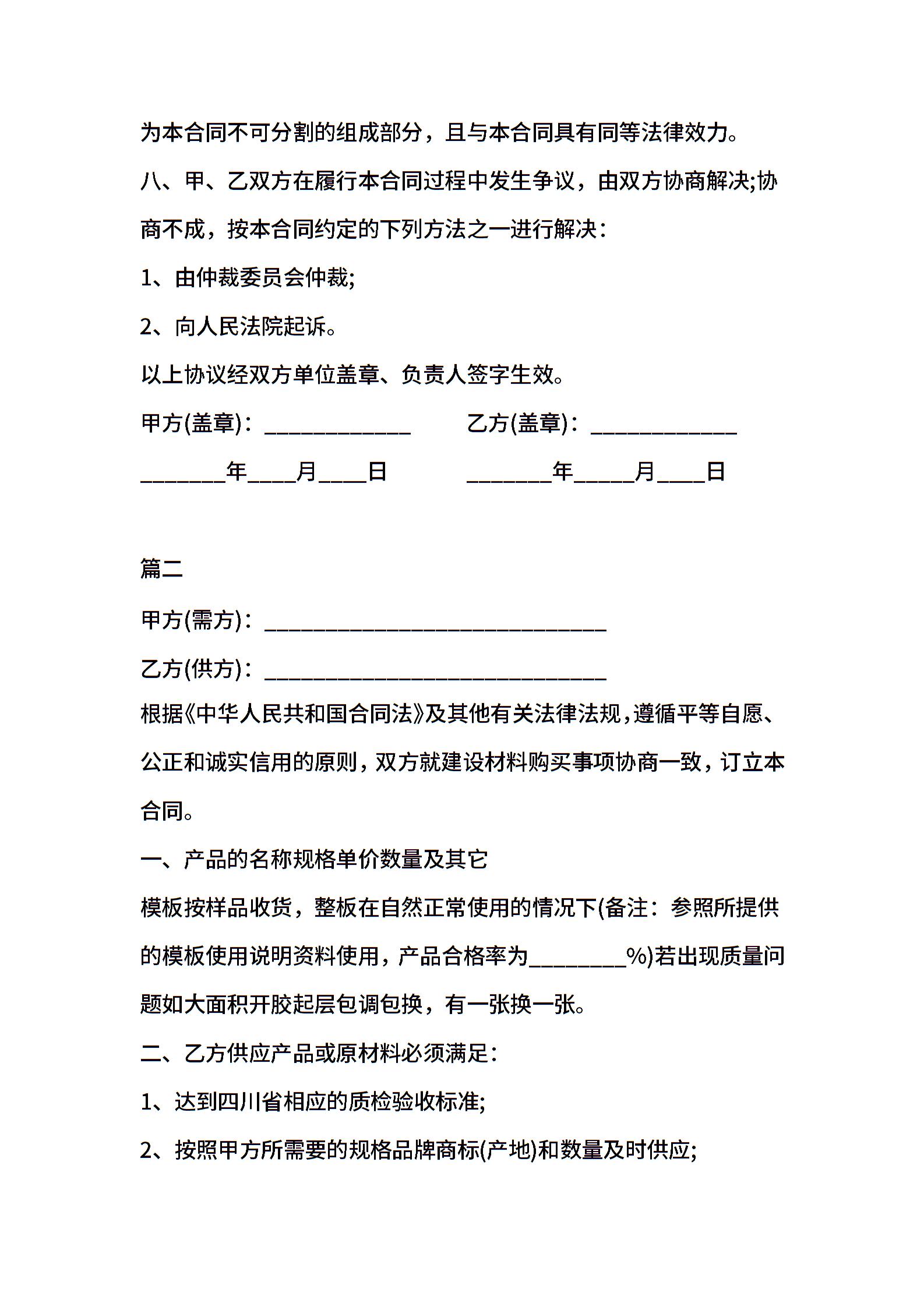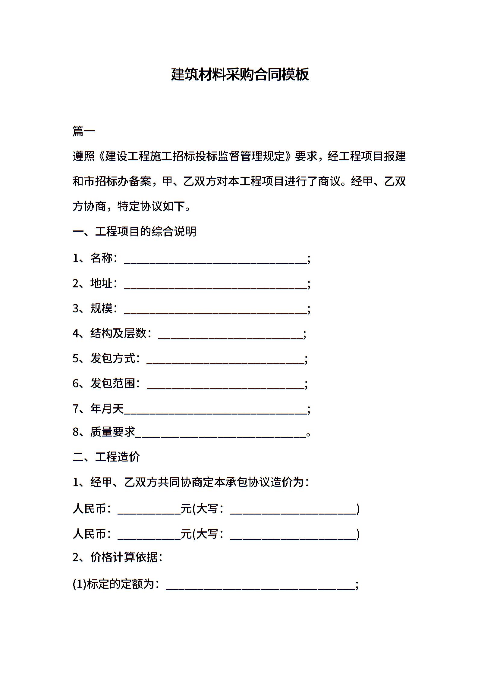 建筑材料采购合同模板