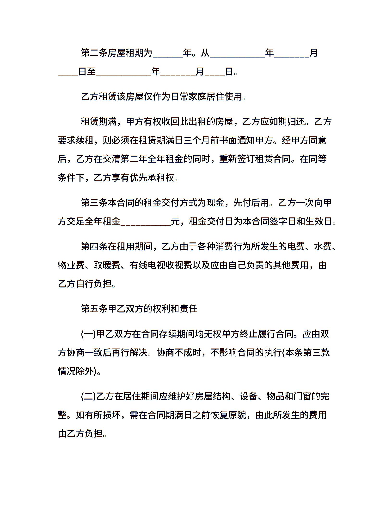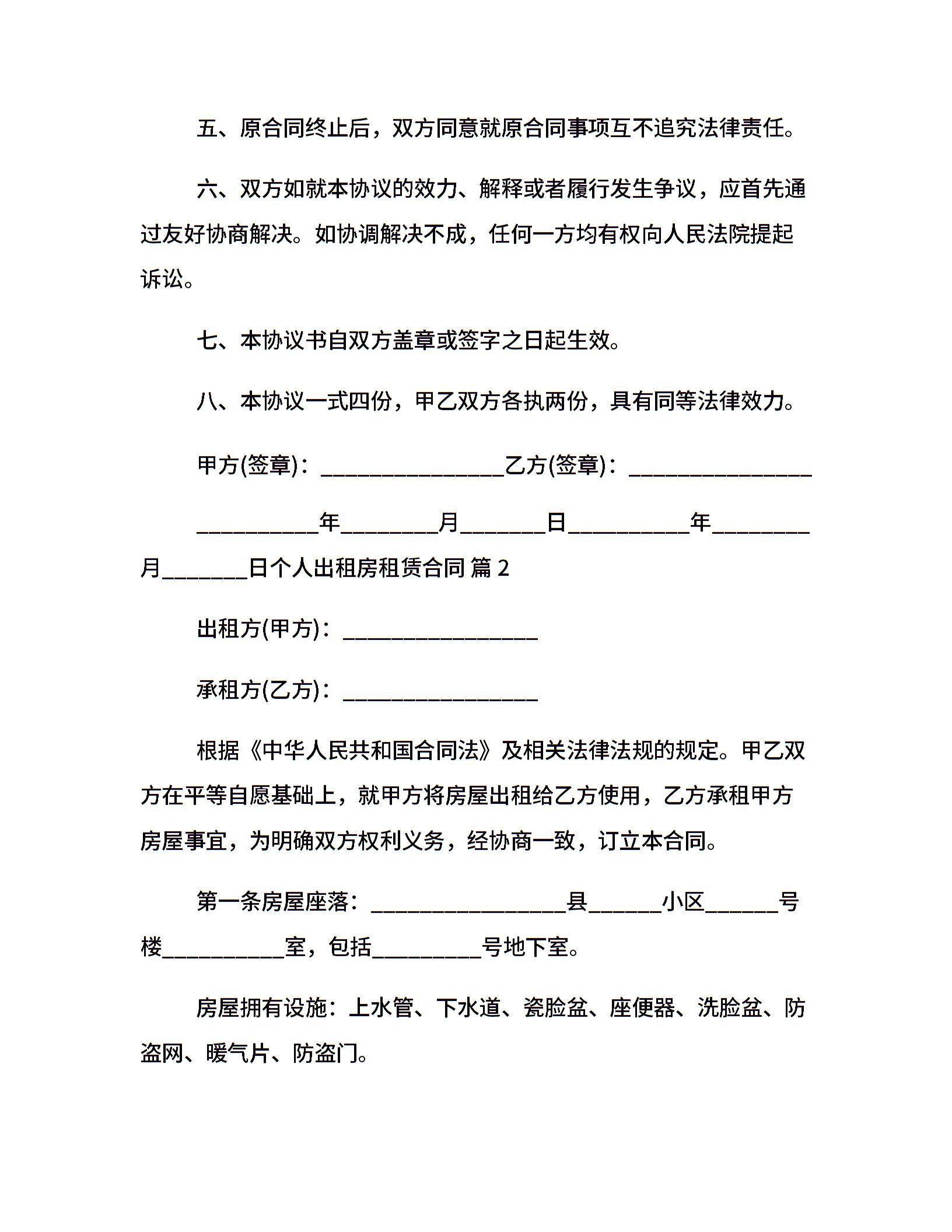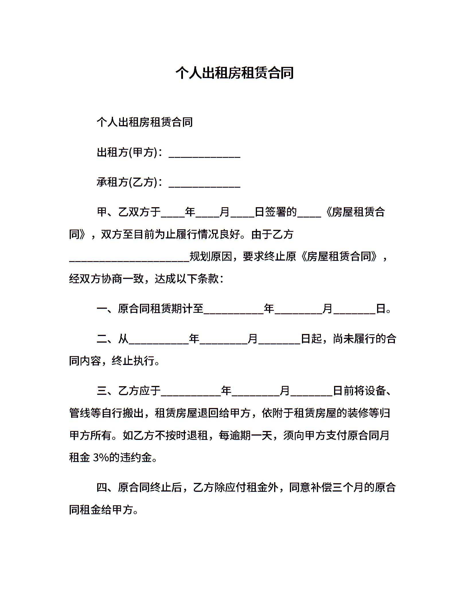 个人出租房租赁合同