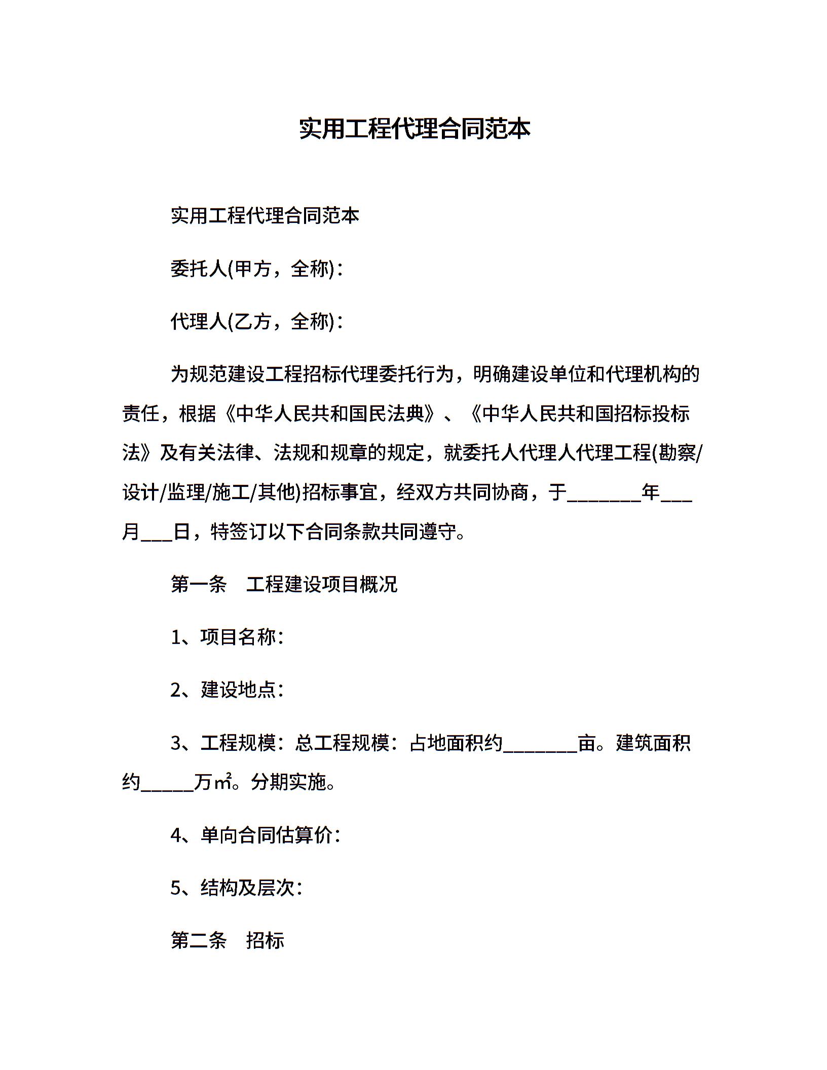 实用工程代理合同范本