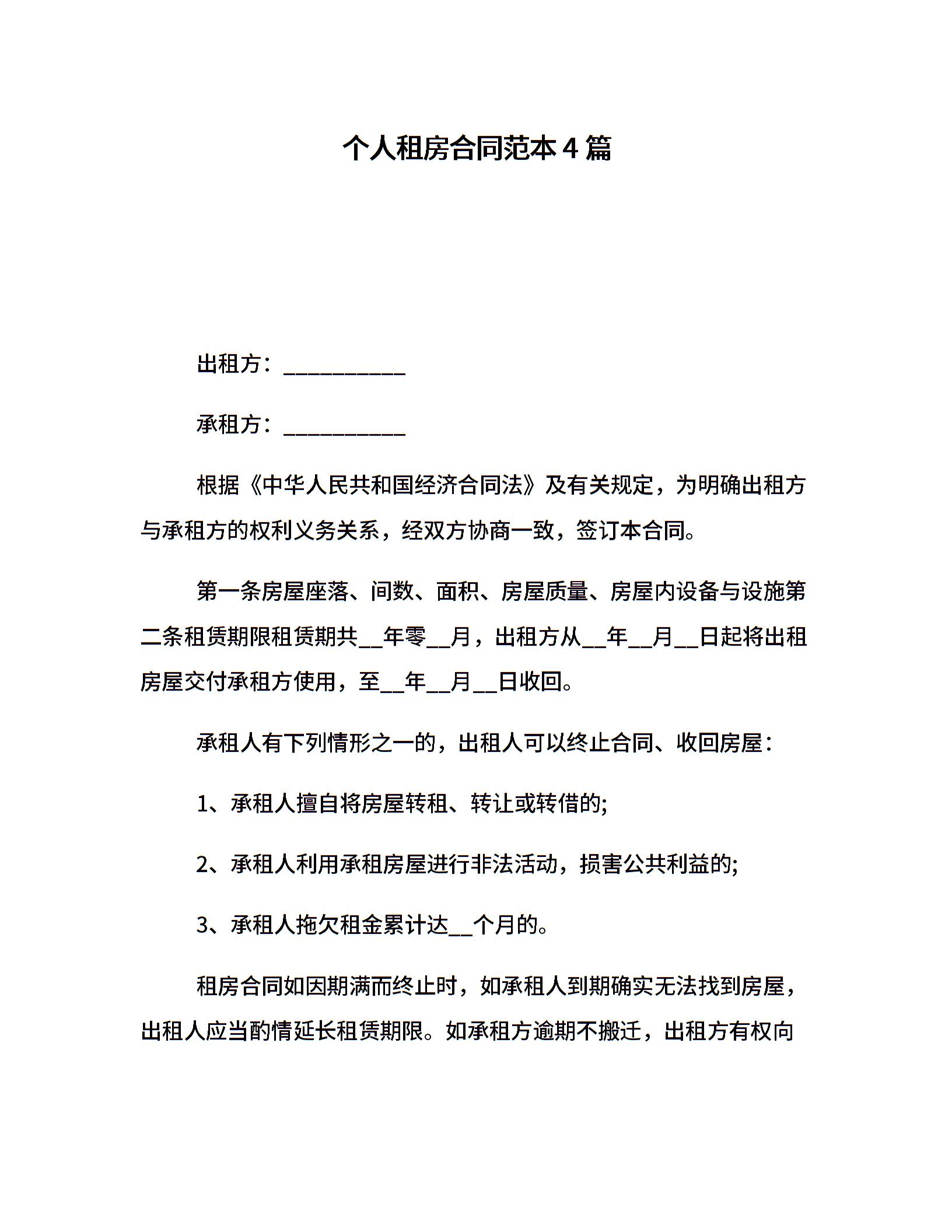 个人租房合同范本4篇
