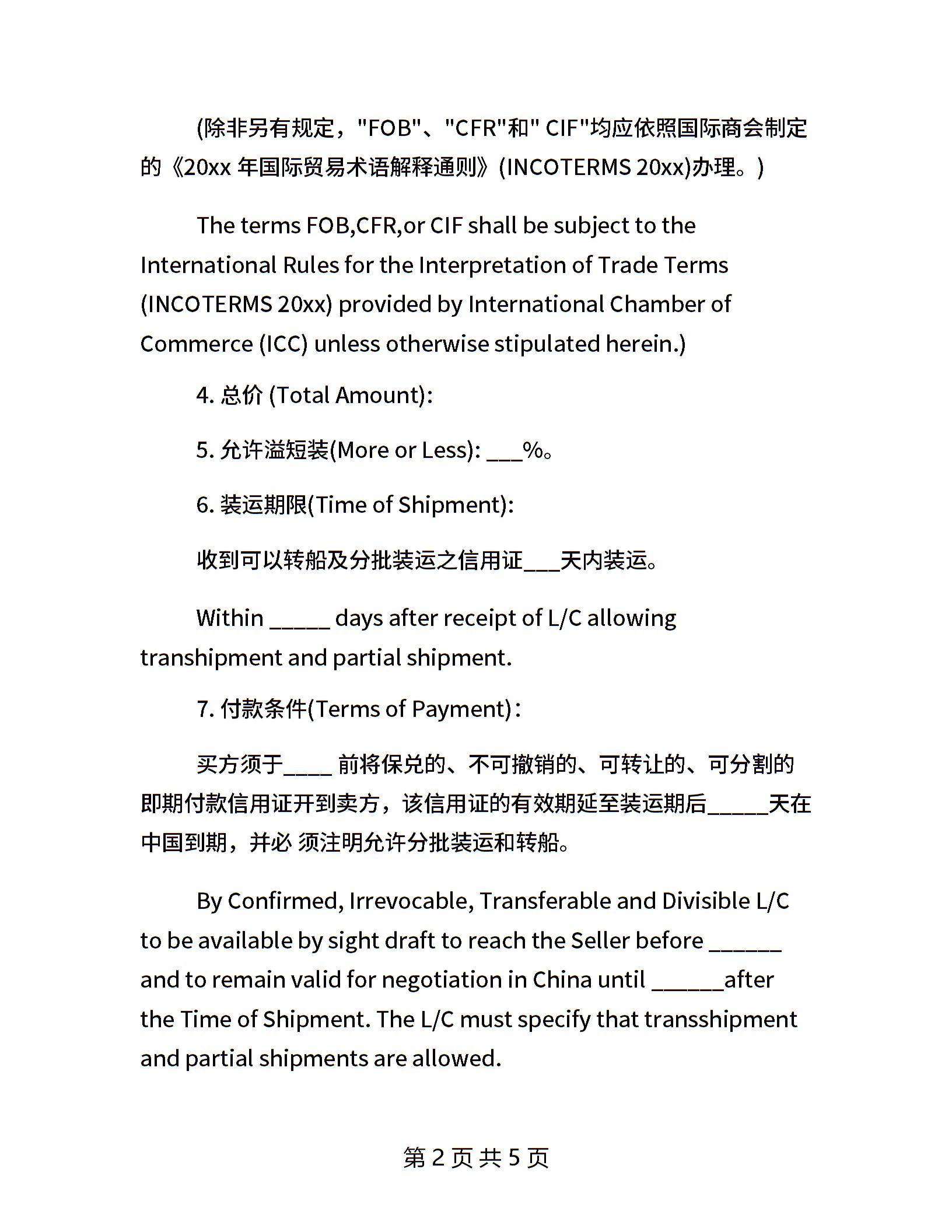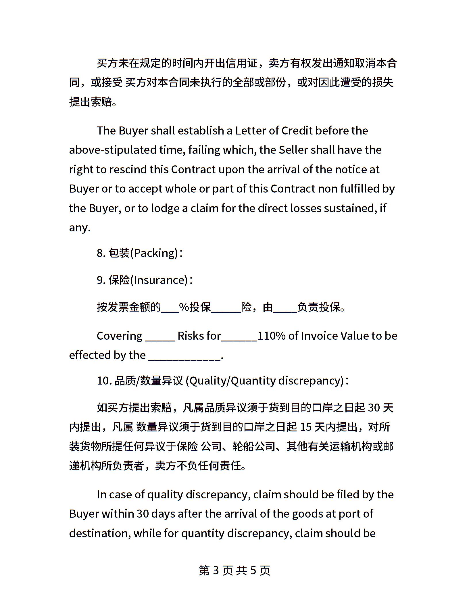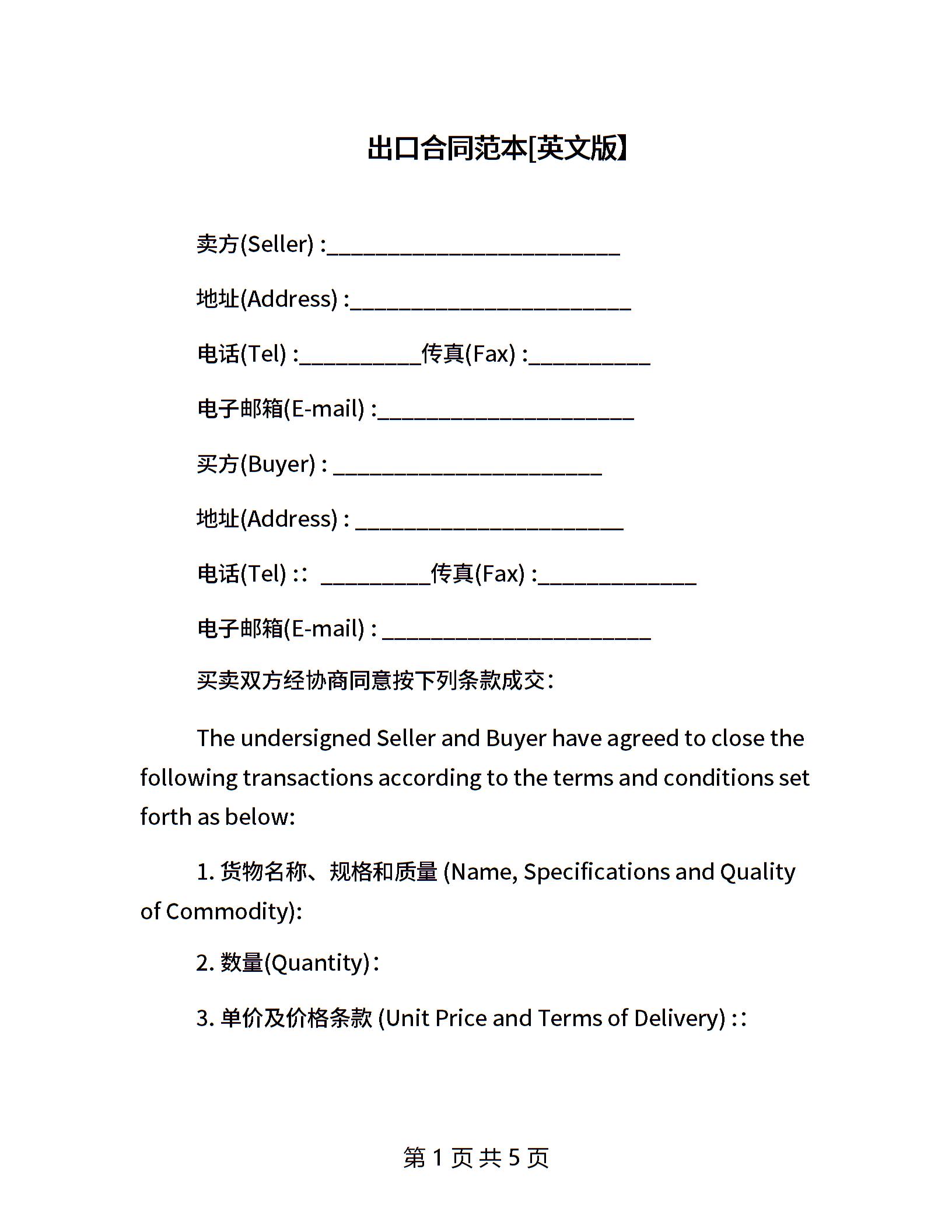 出口合同范本【英文版】