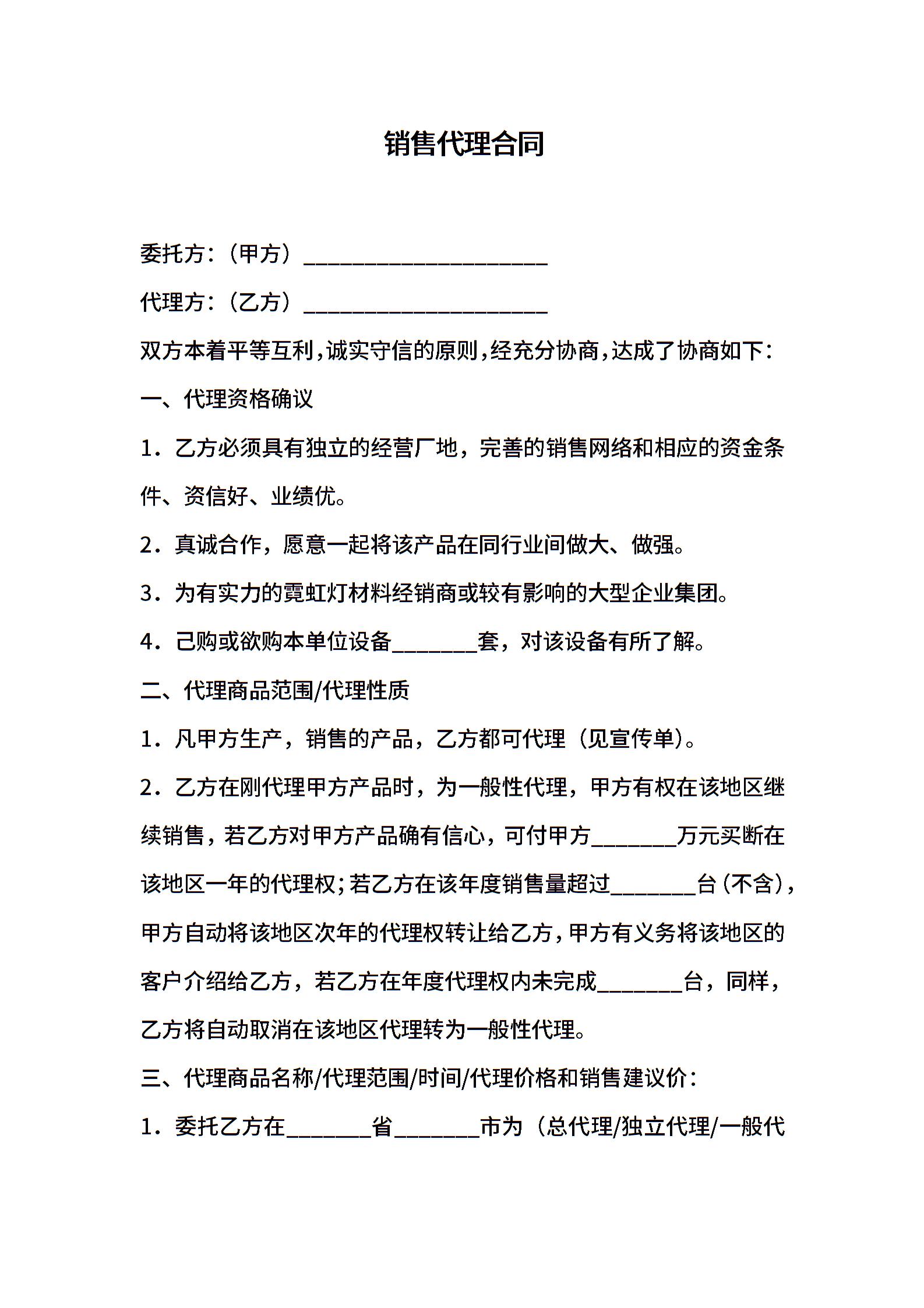 销售代理合同