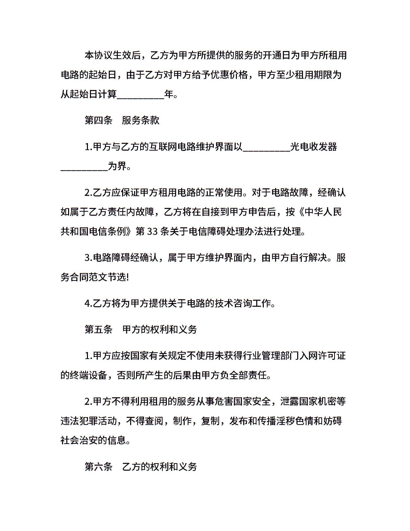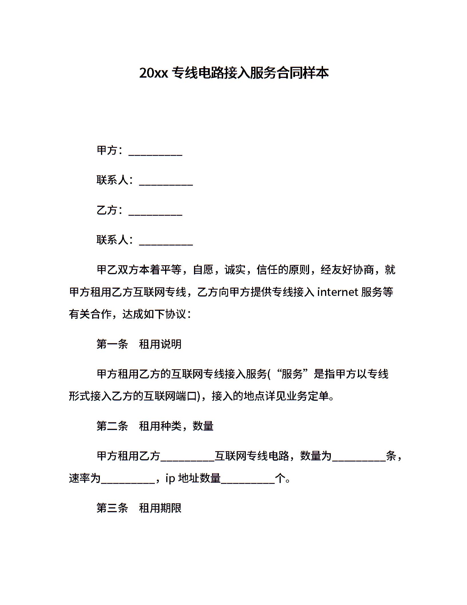 20xx专线电路接入服务合同样本