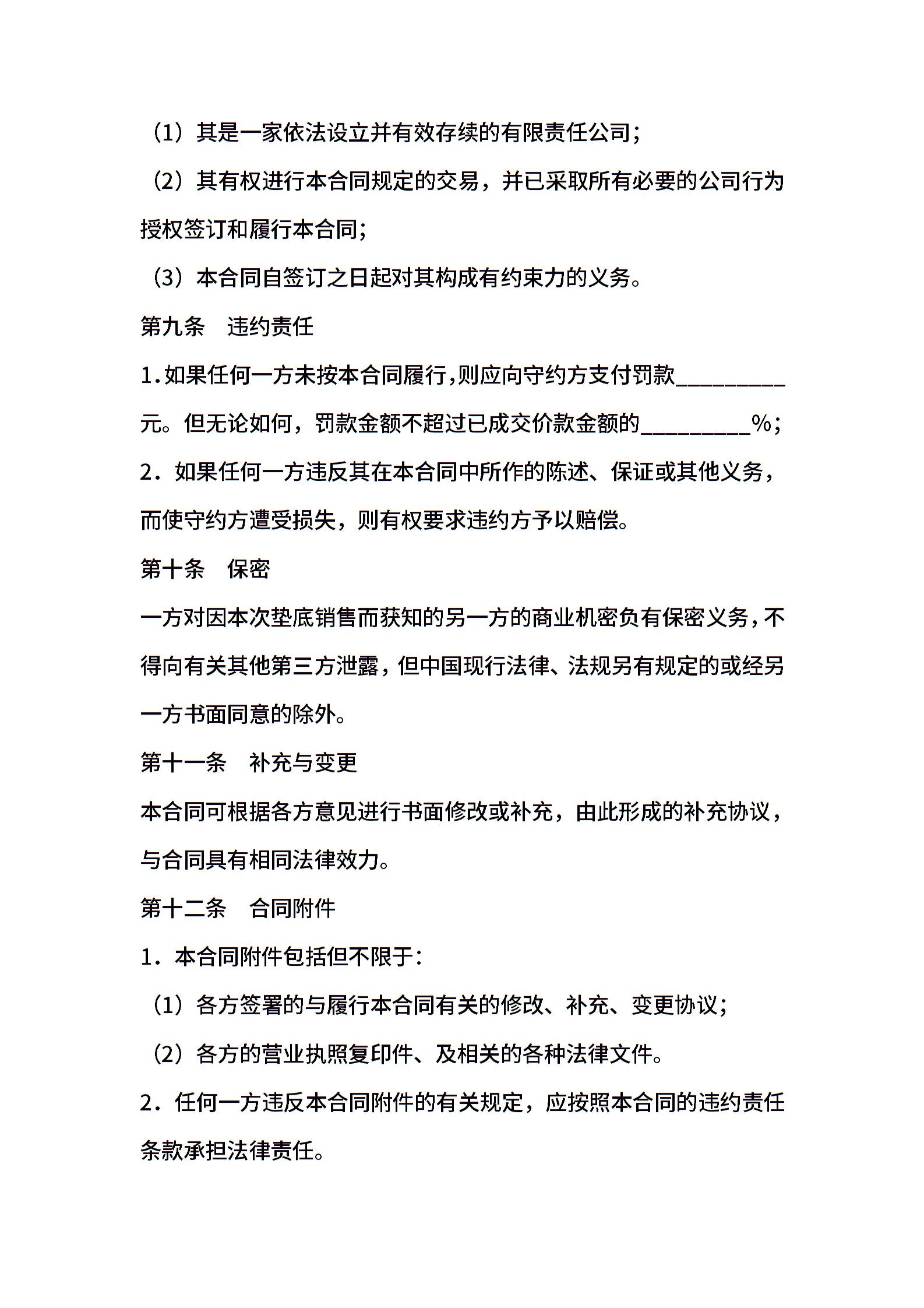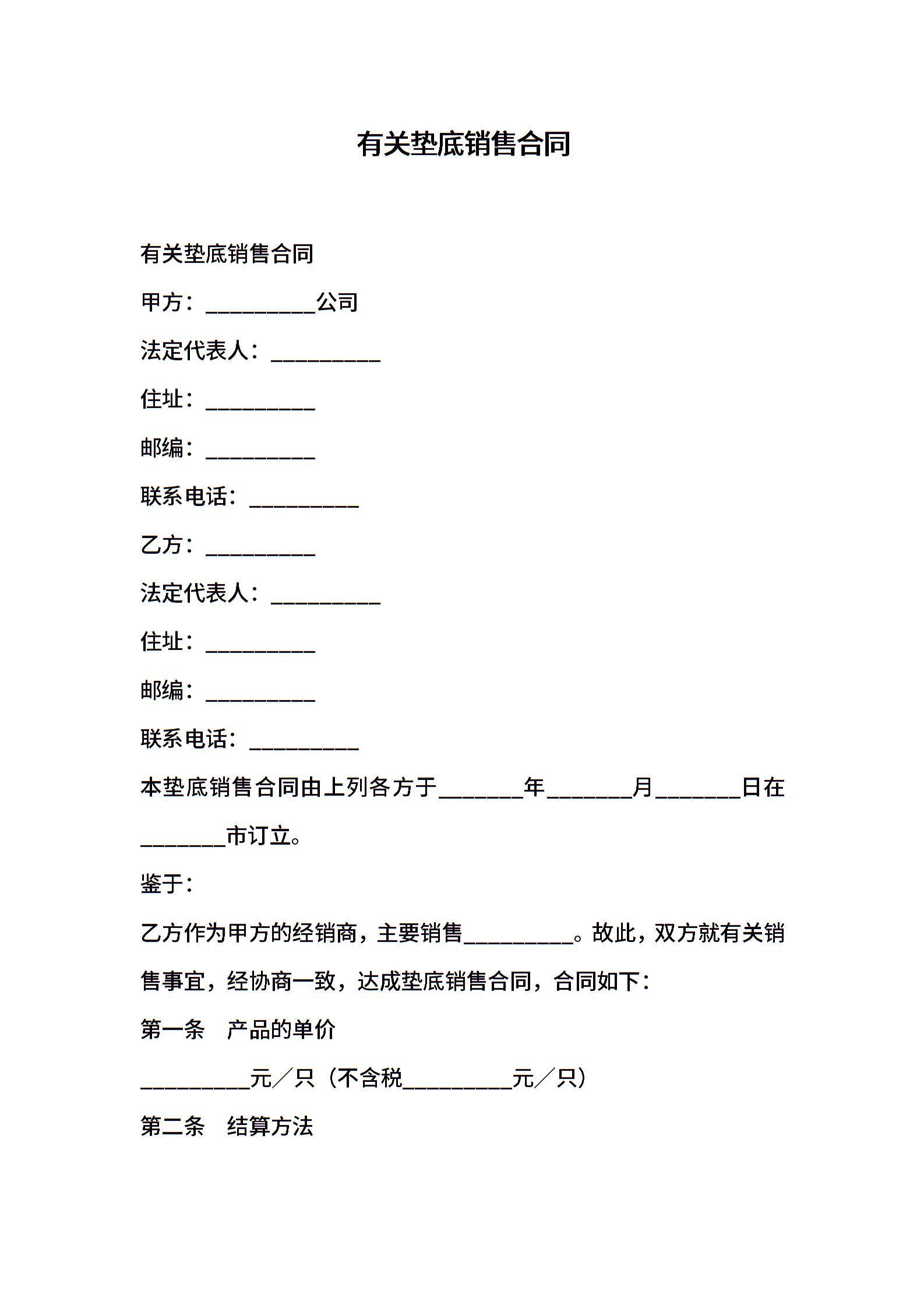 有关垫底销售合同