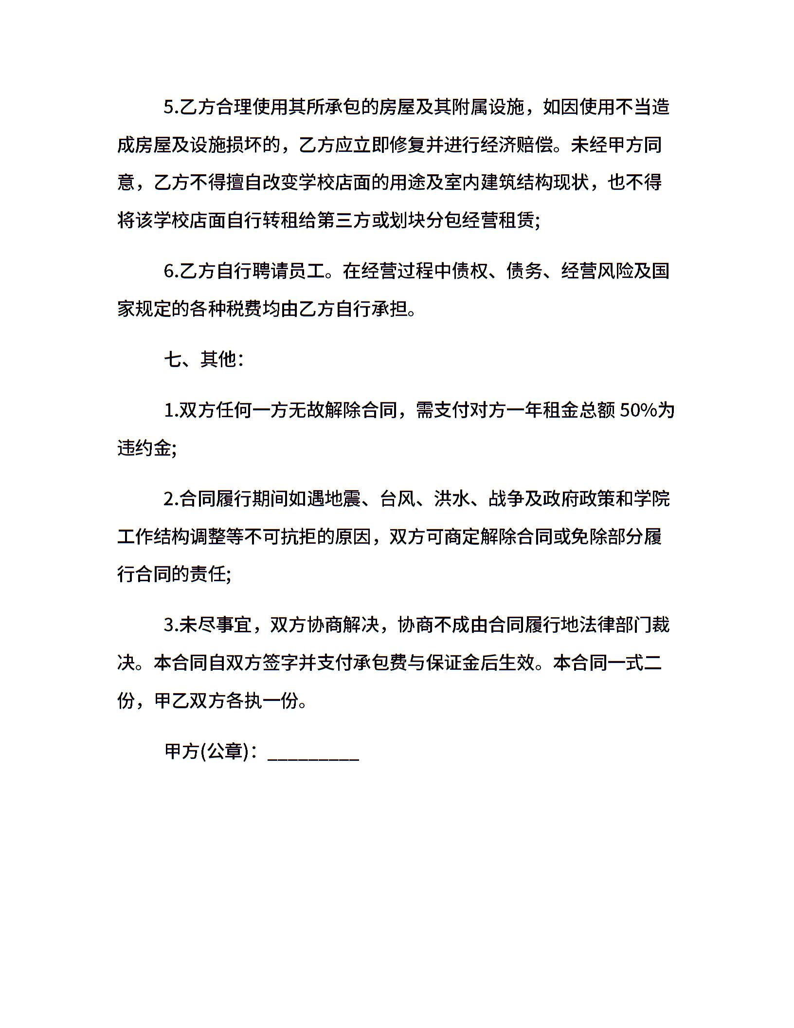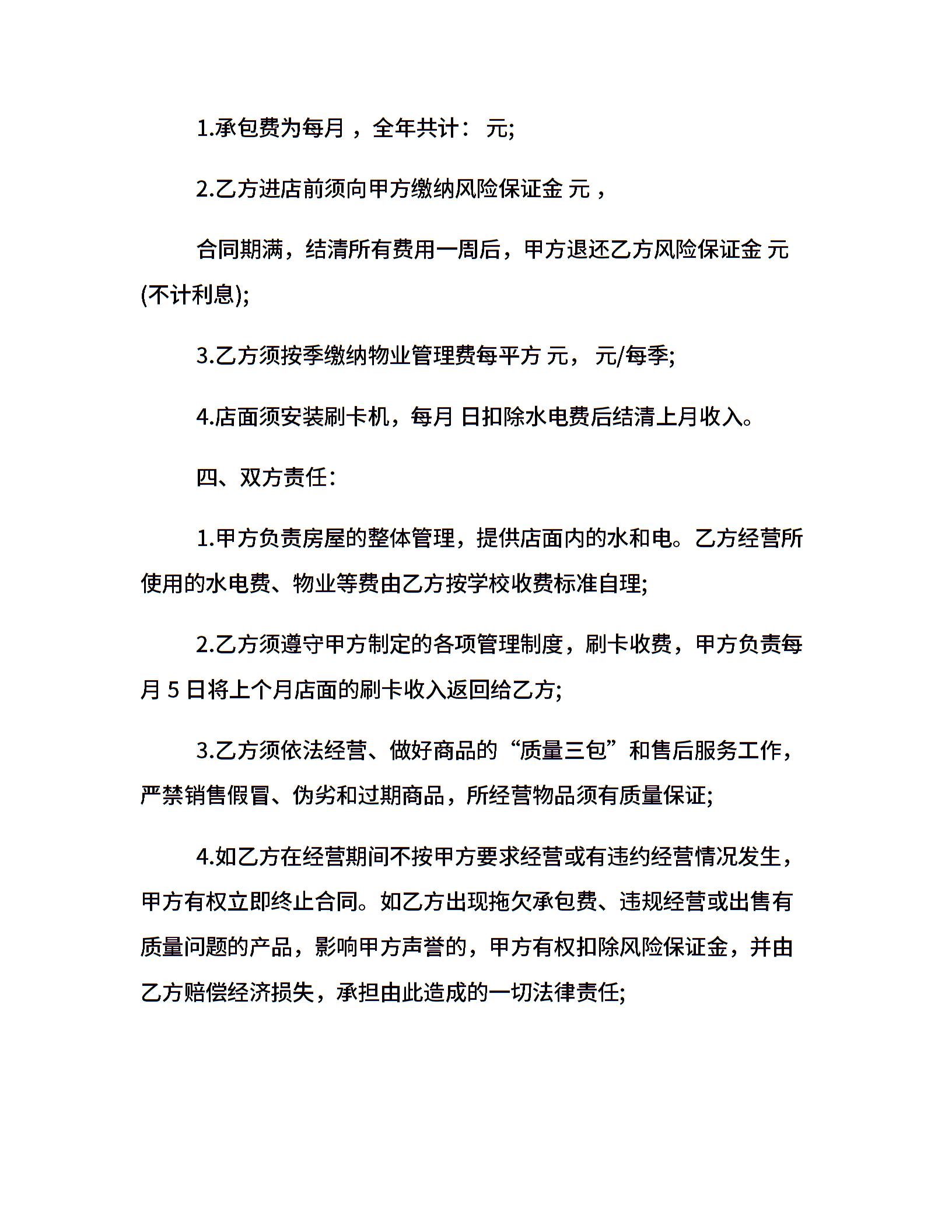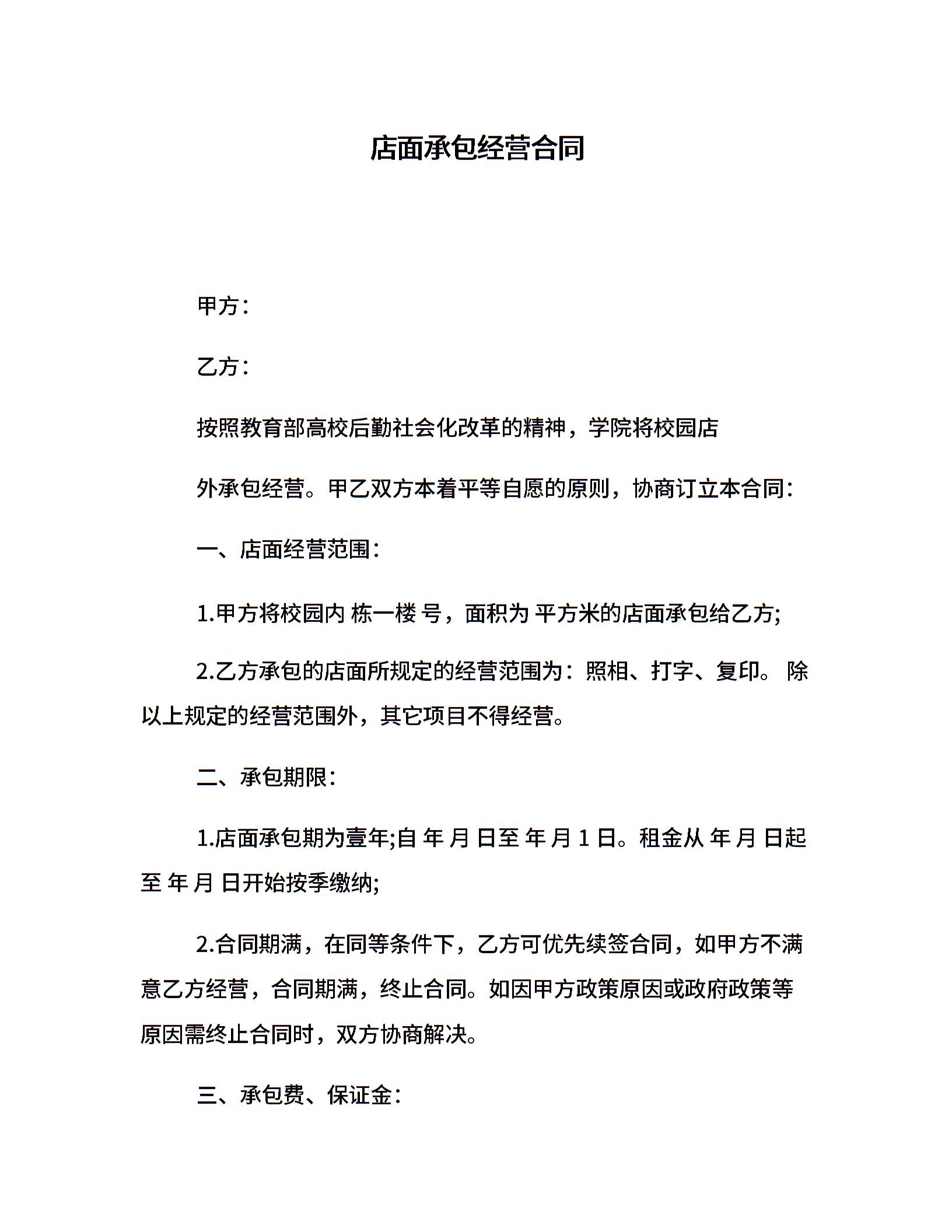 店面承包经营合同