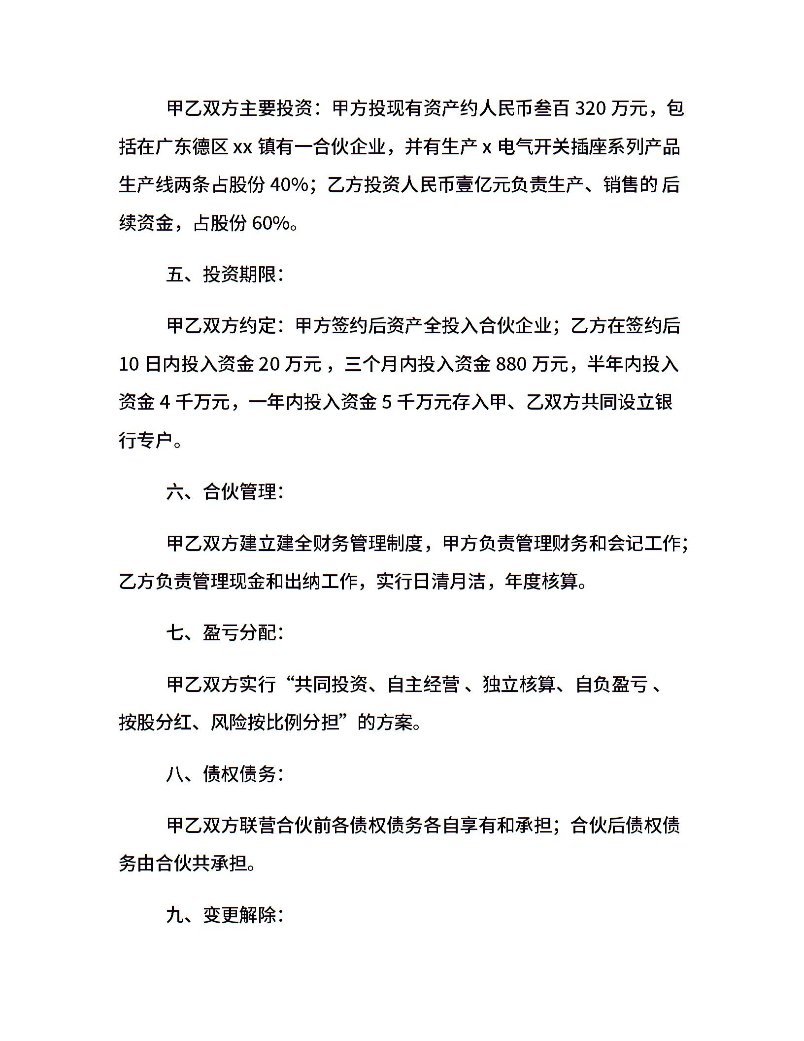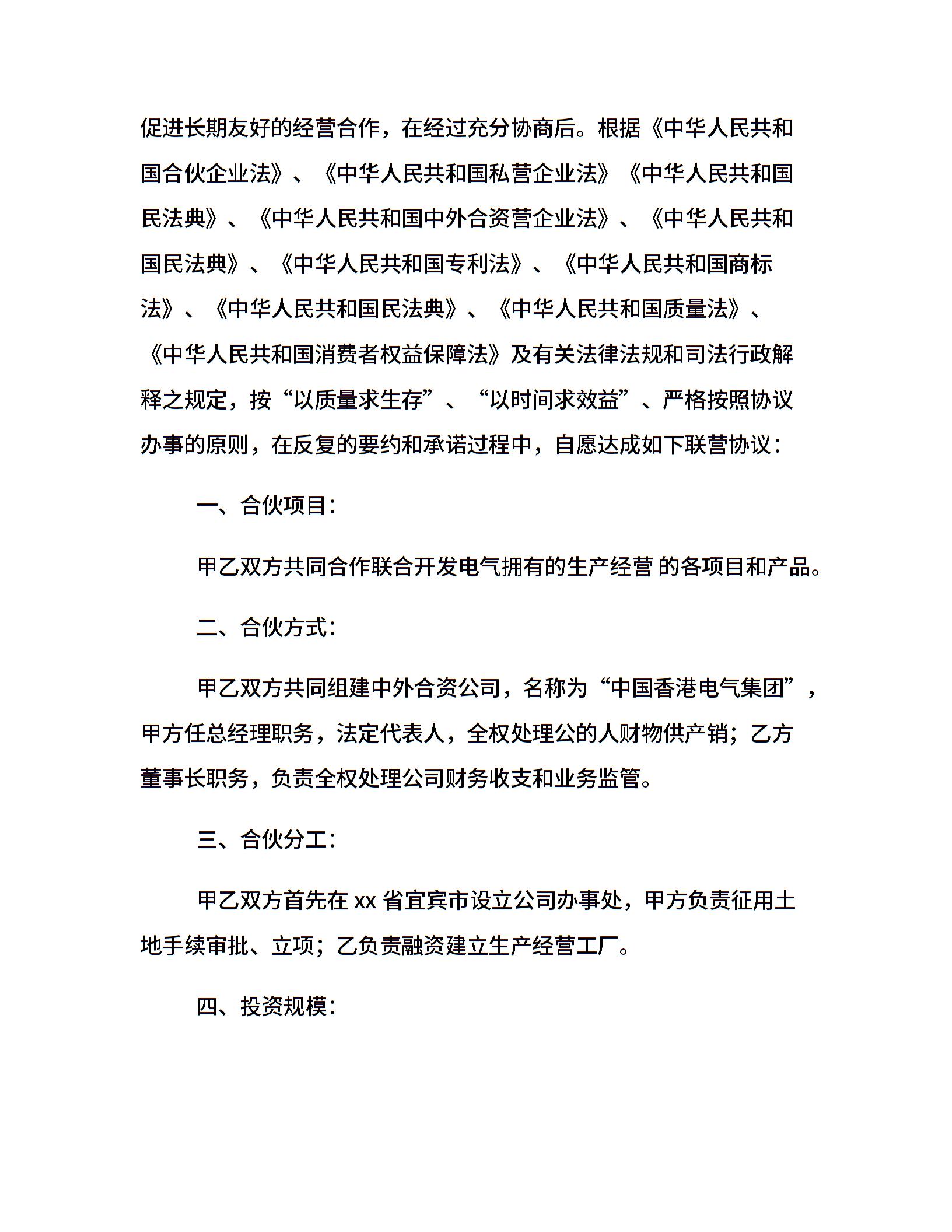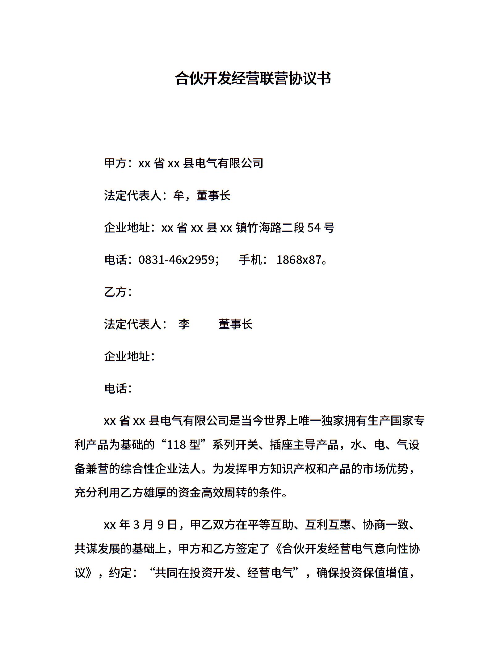 合伙开发经营联营协议书