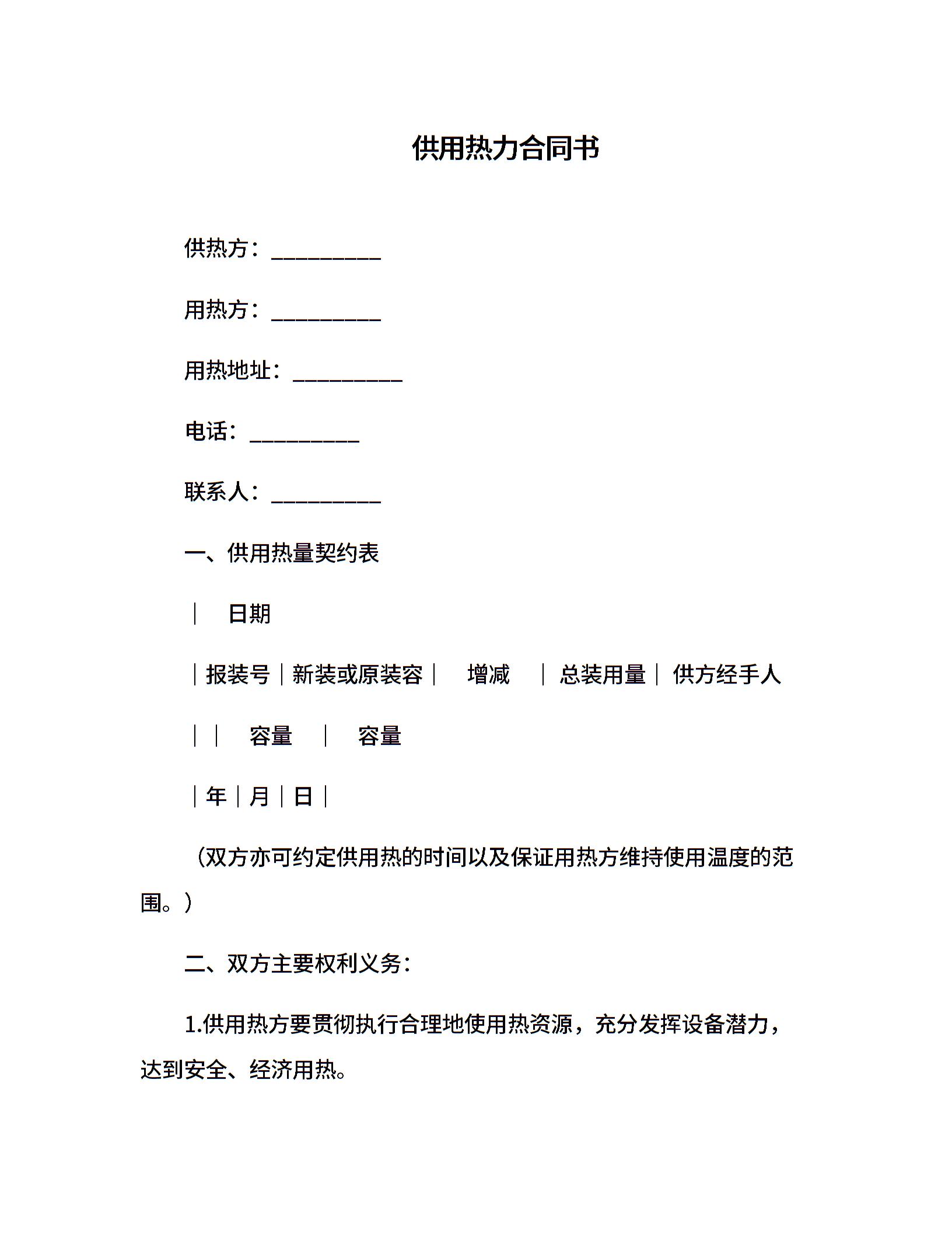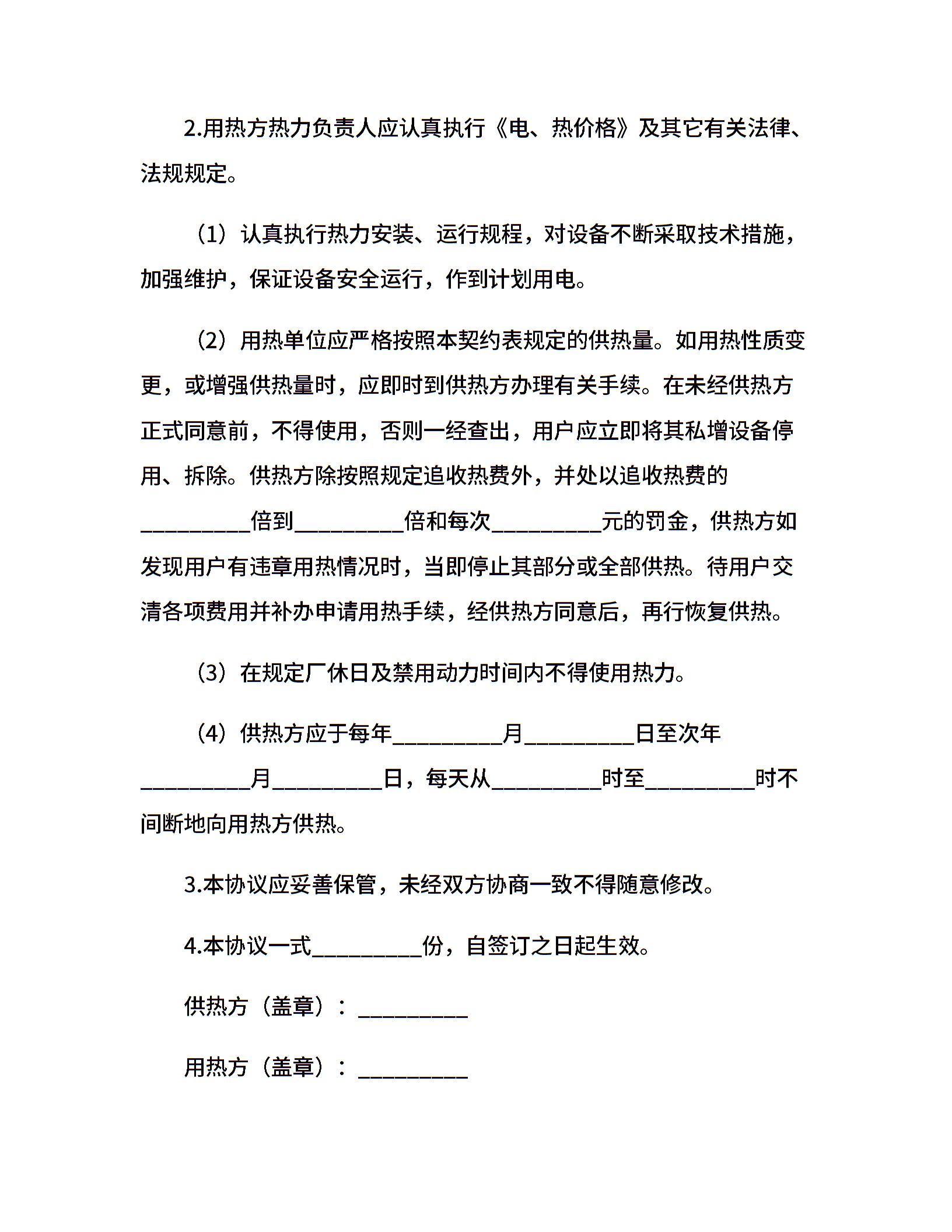 供用热力合同书