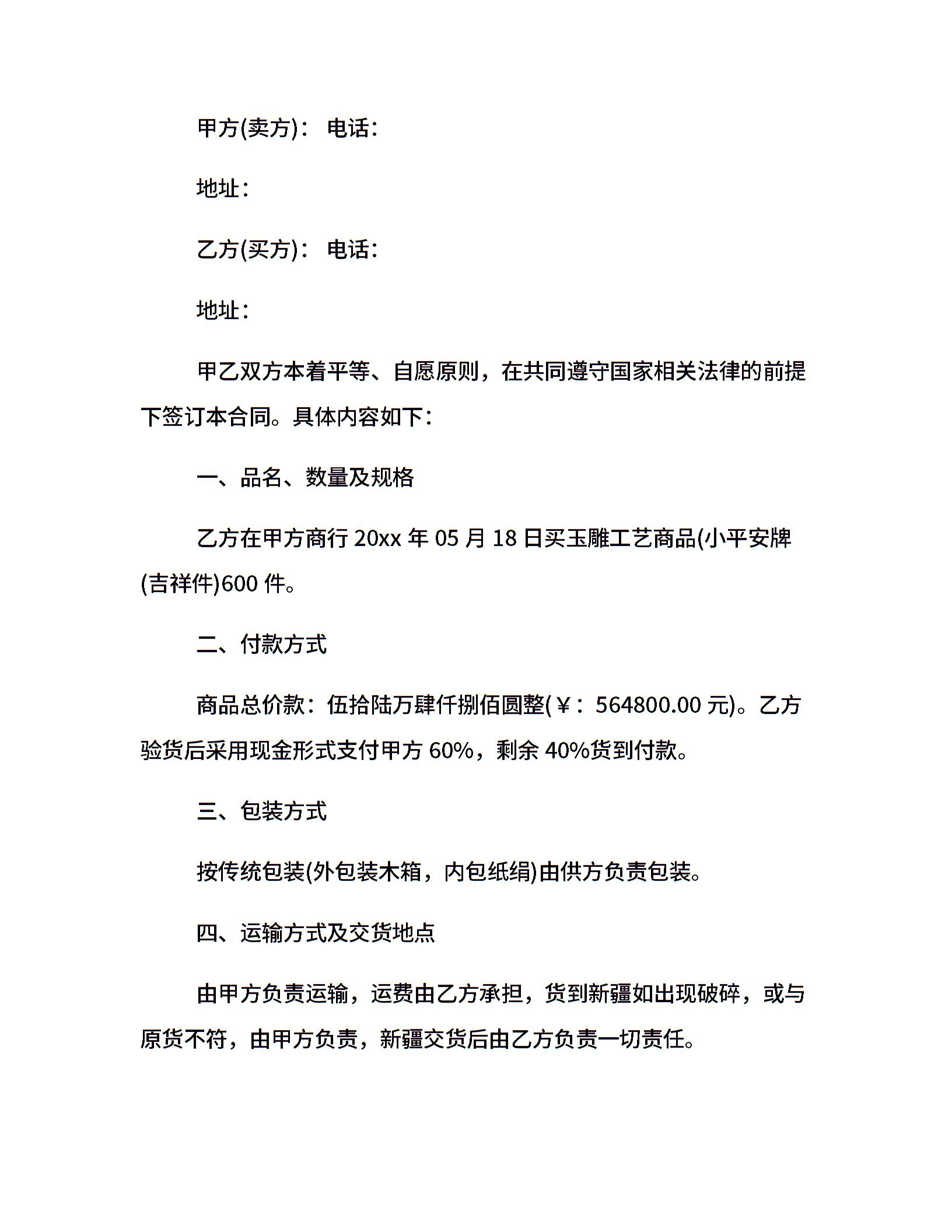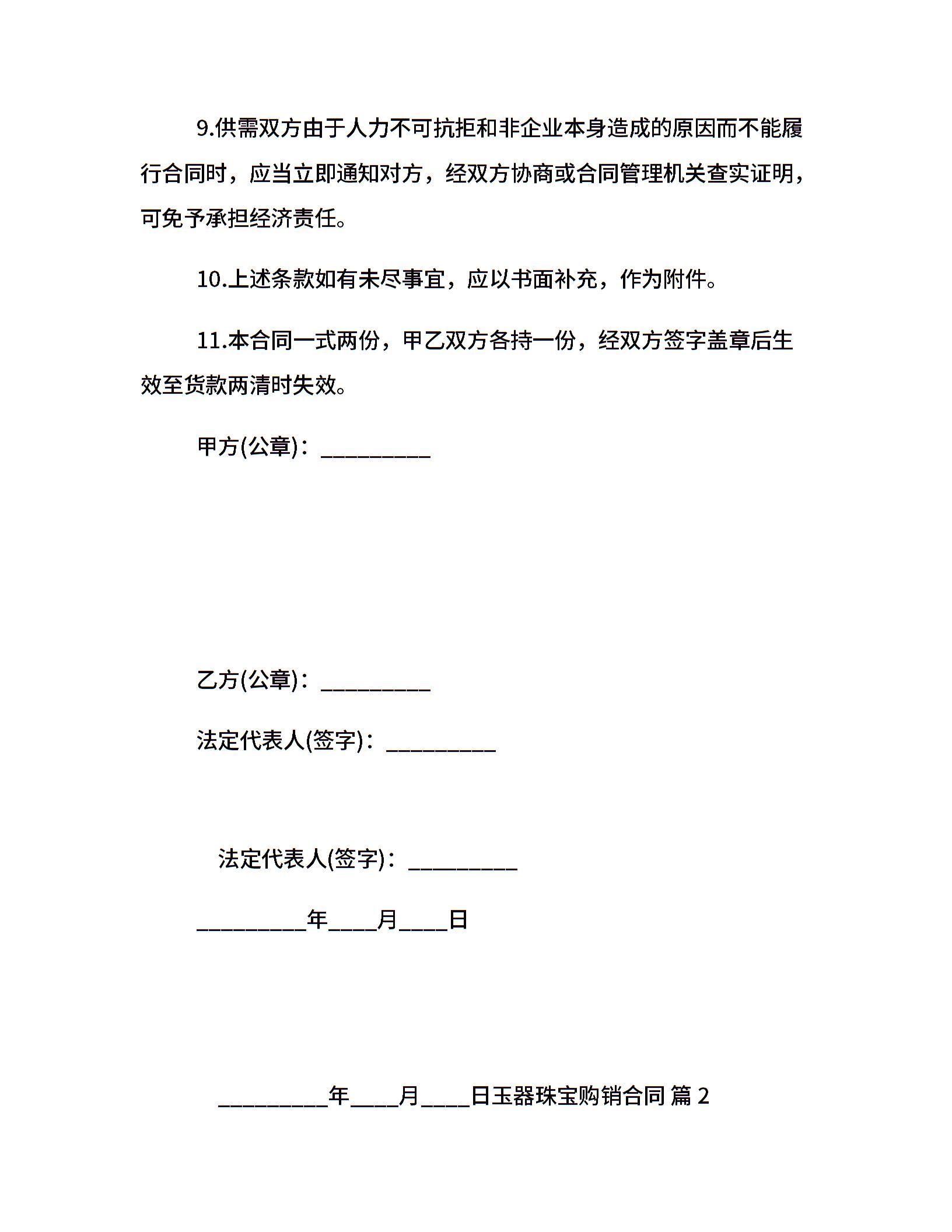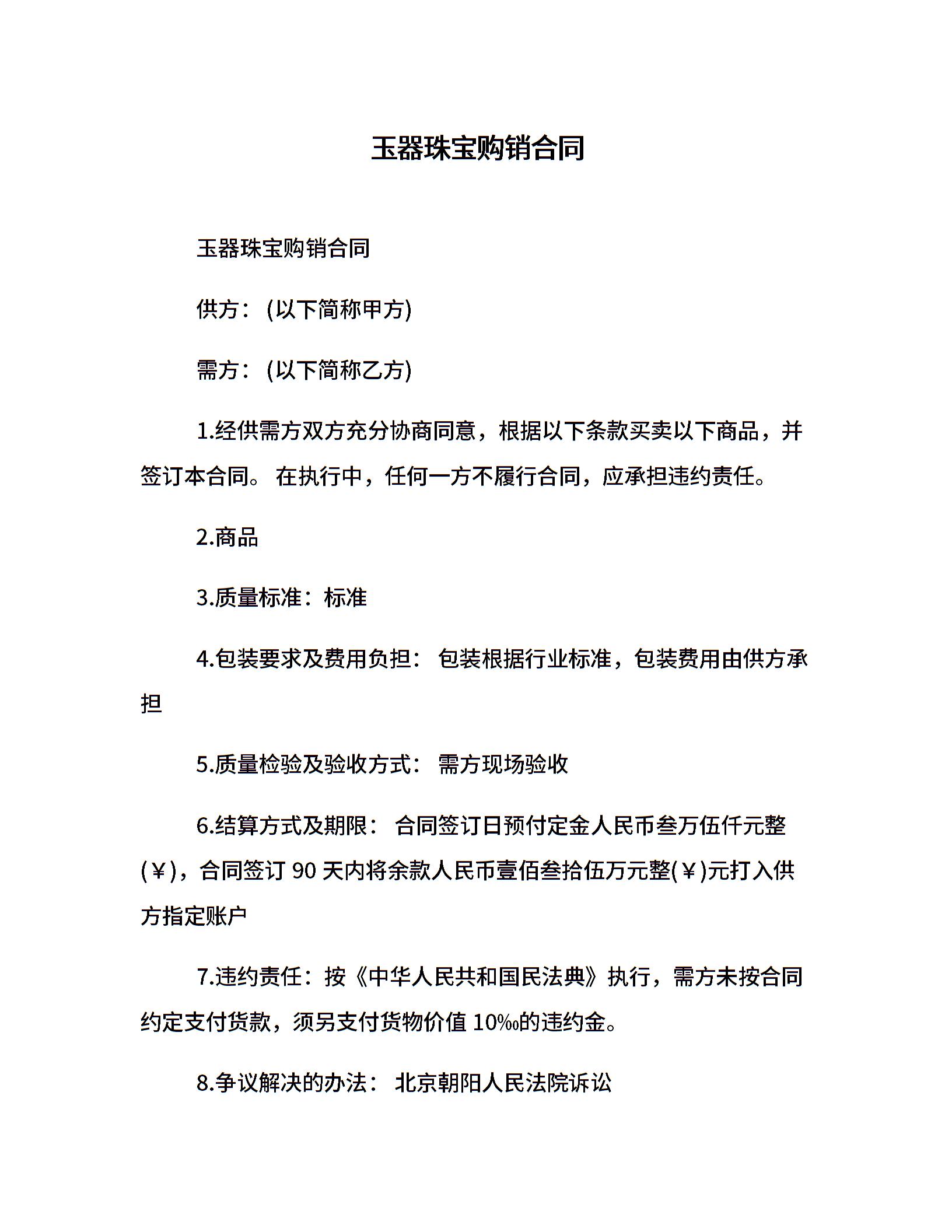 玉器珠宝购销合同