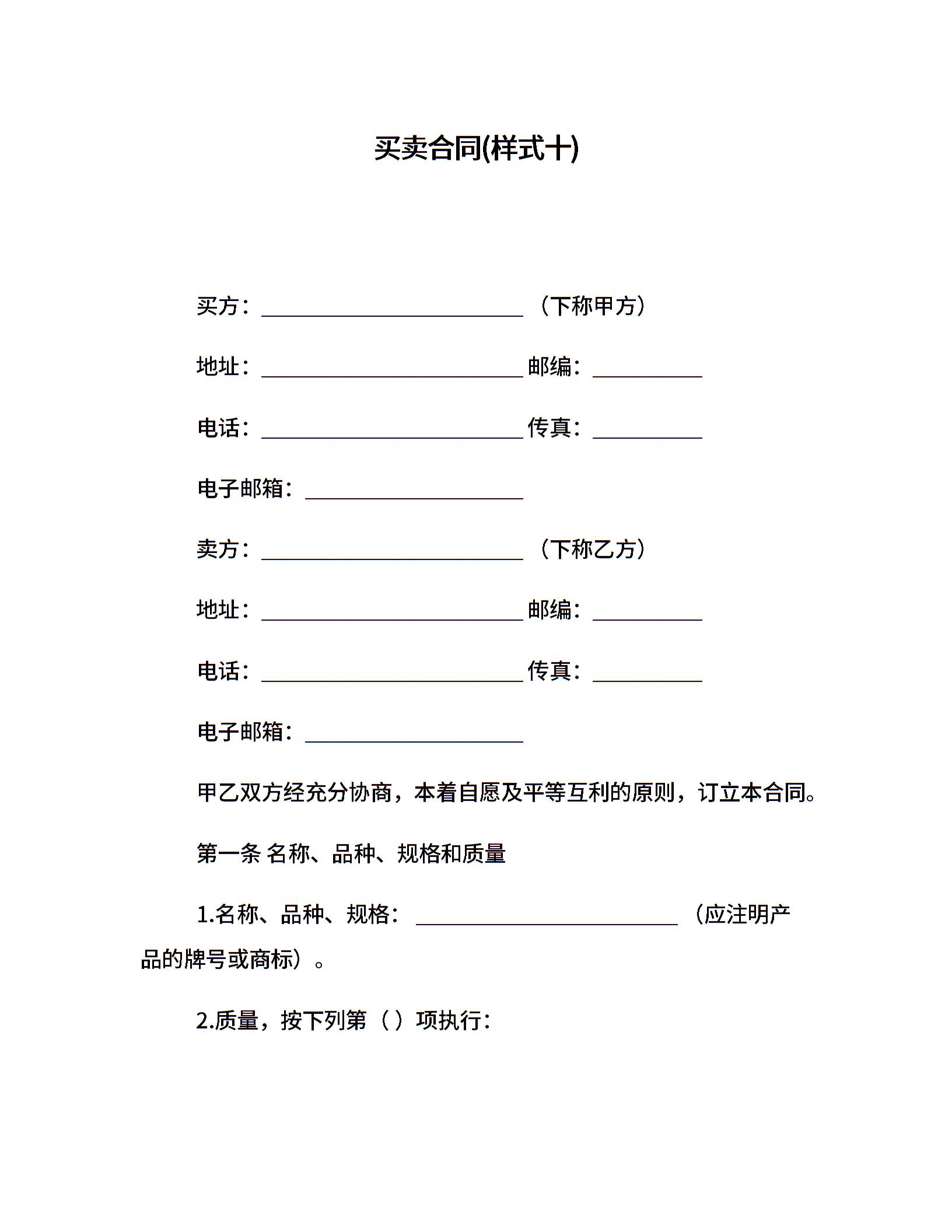 买卖合同(样式十)