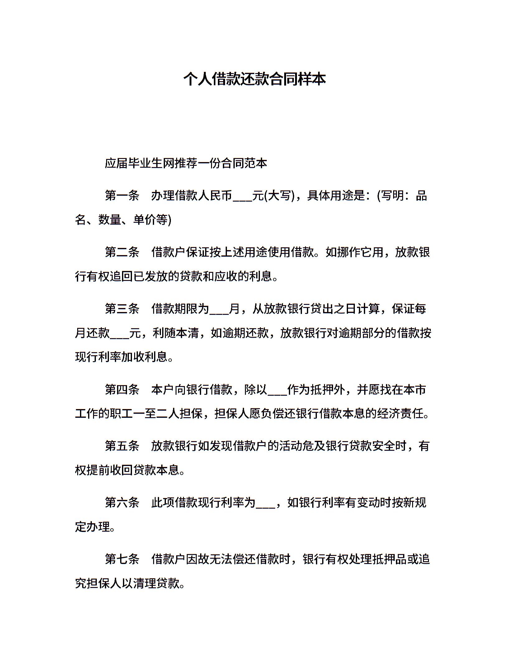 个人借款还款合同样本