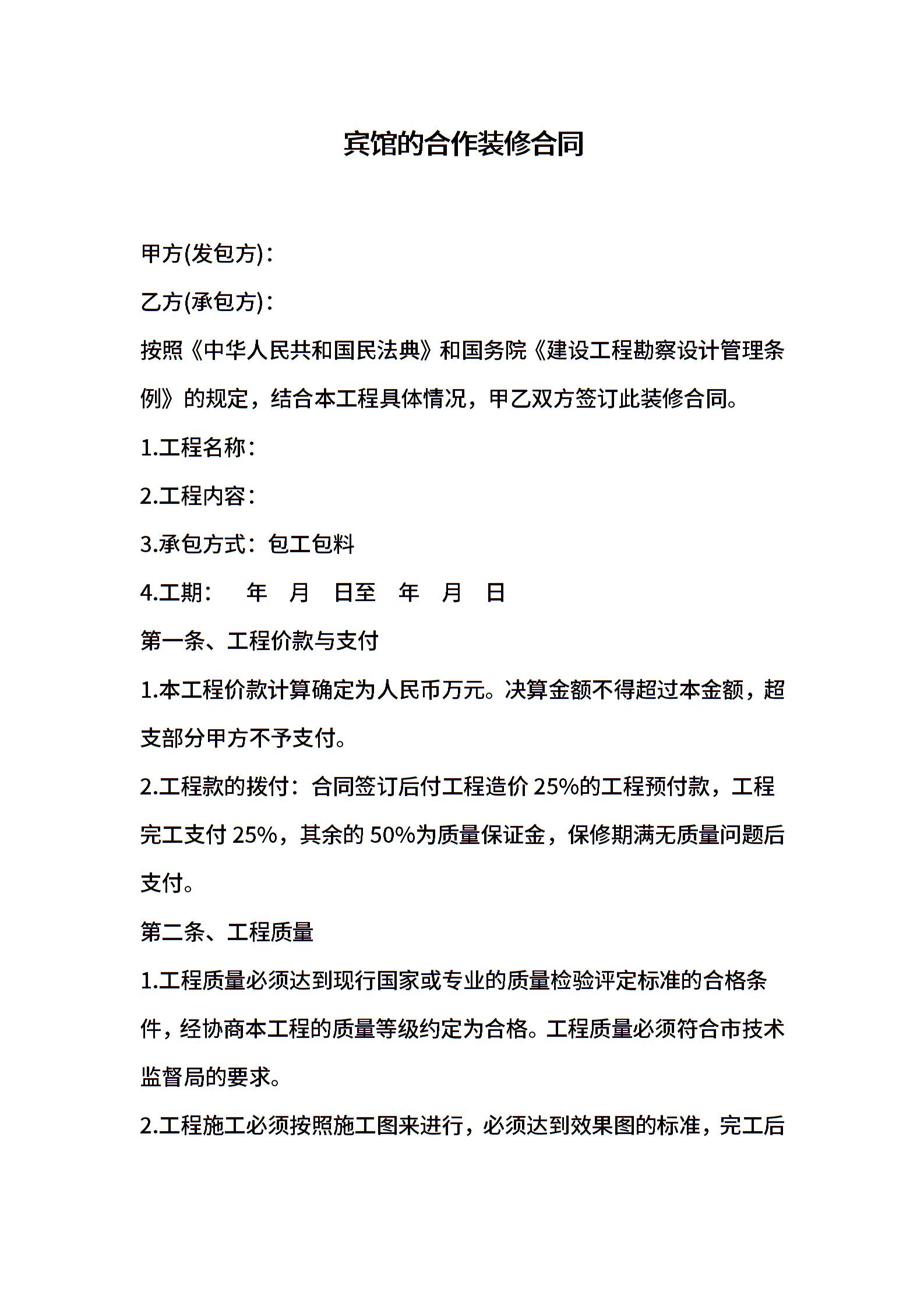 宾馆的合作装修合同