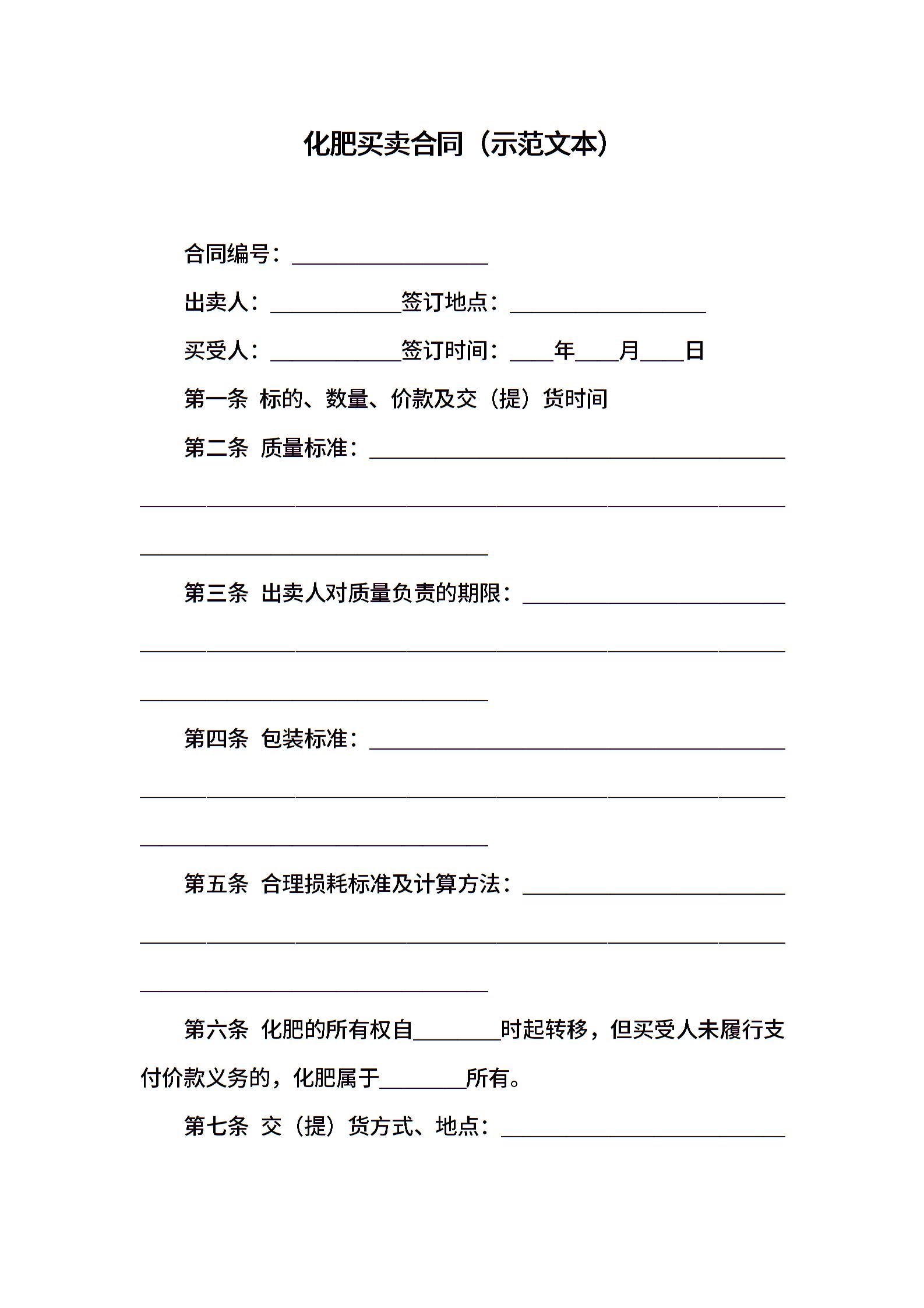 化肥买卖合同(示范文本)