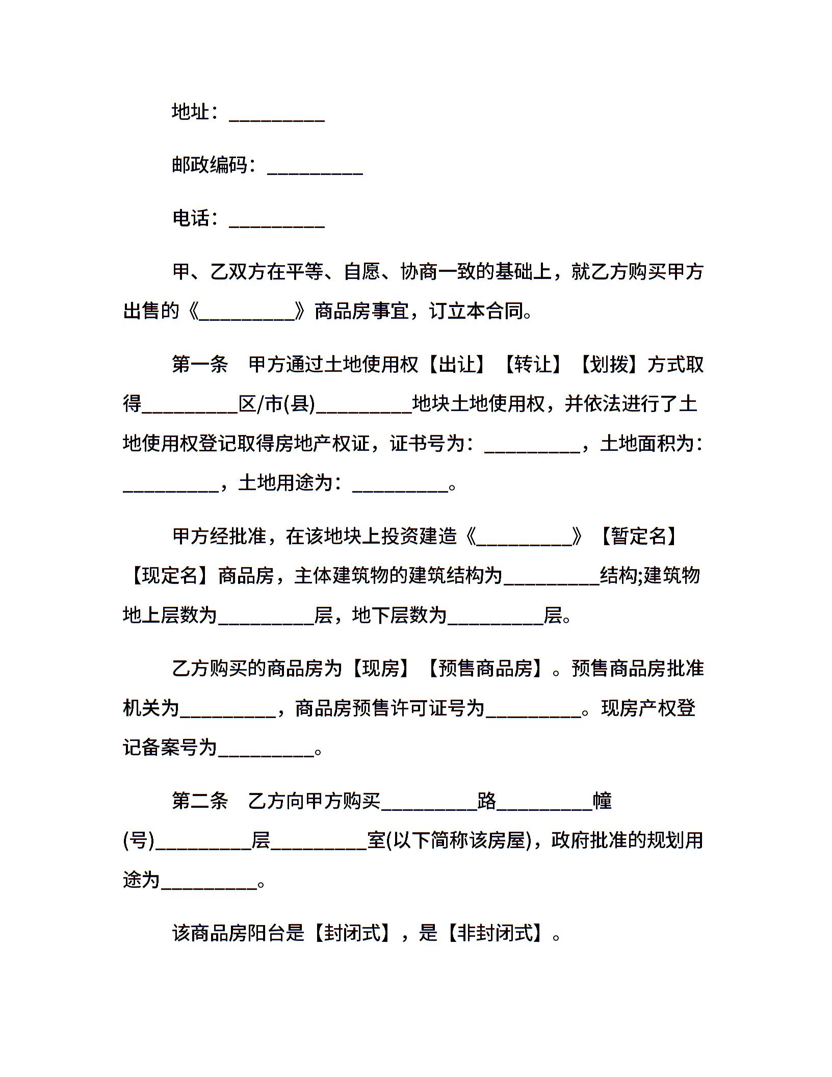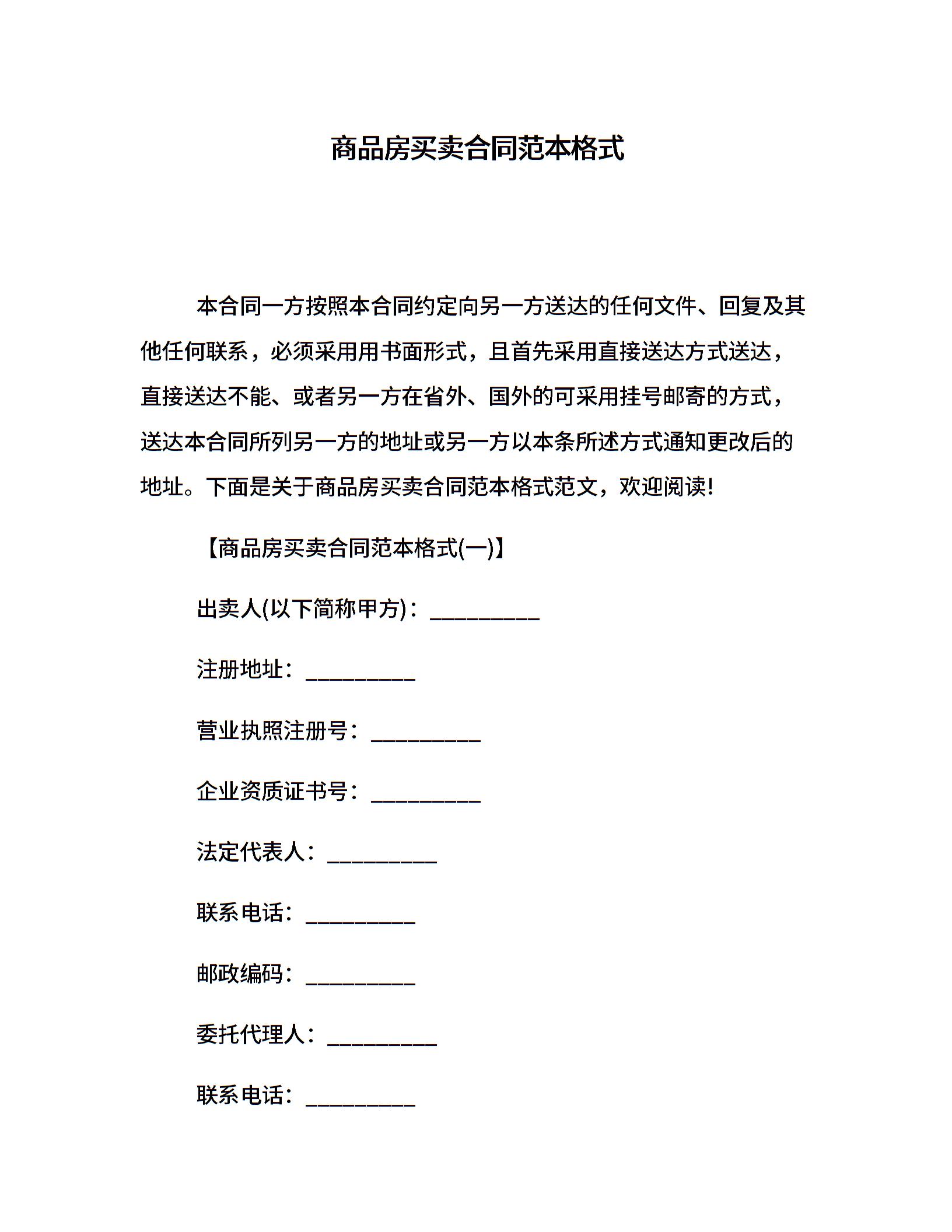 商品房买卖合同范本格式