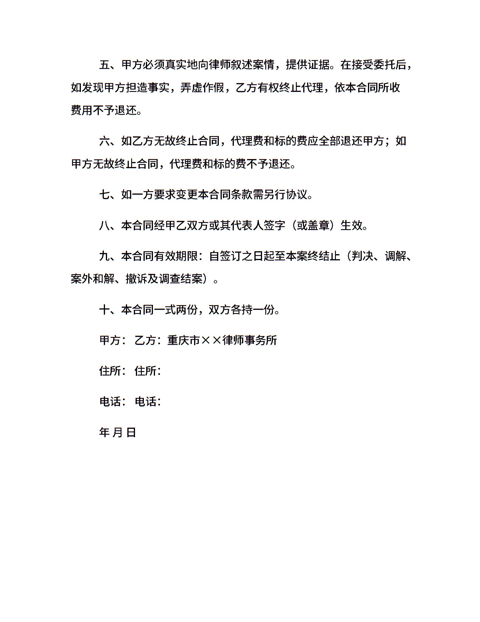 律师委托代理合同