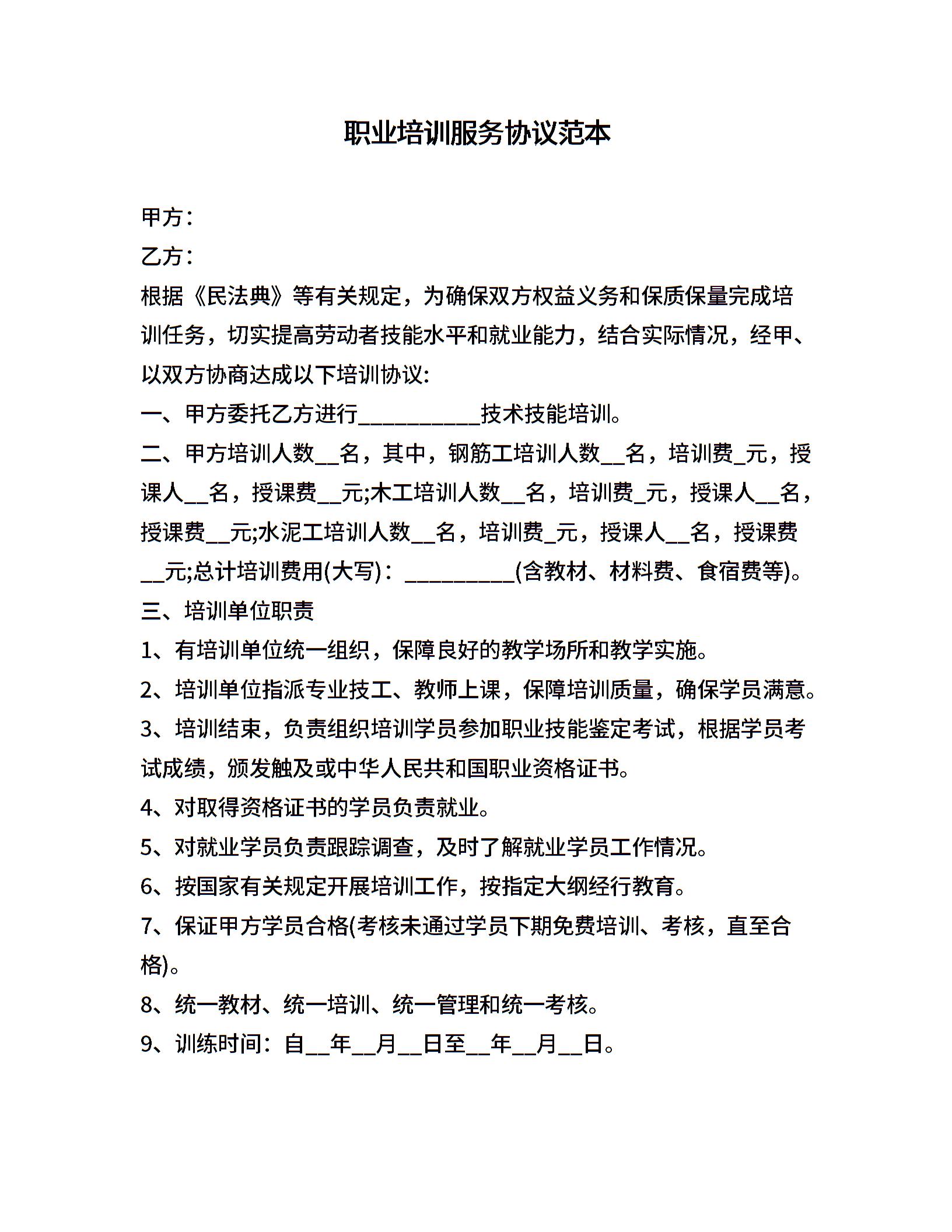 职业培训服务协议范本