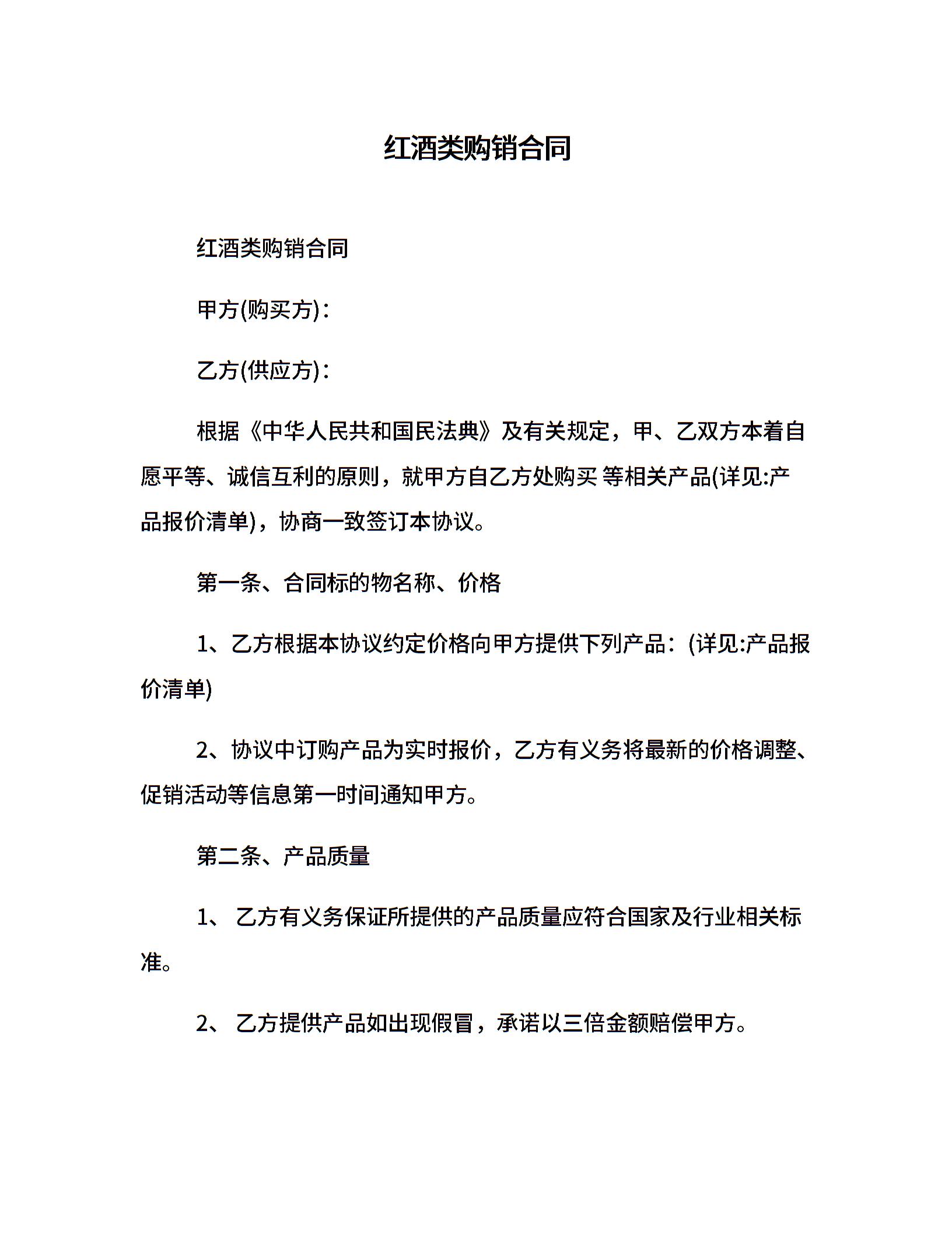 红酒类购销合同