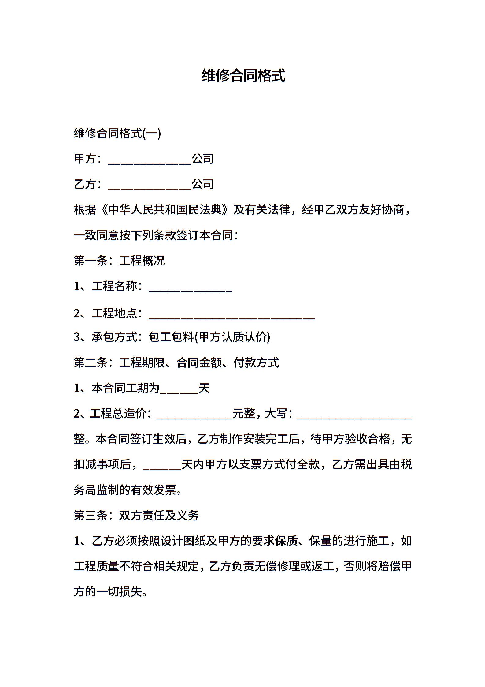 当前位置:量子办公 > 合同模板 > 维修合同 >