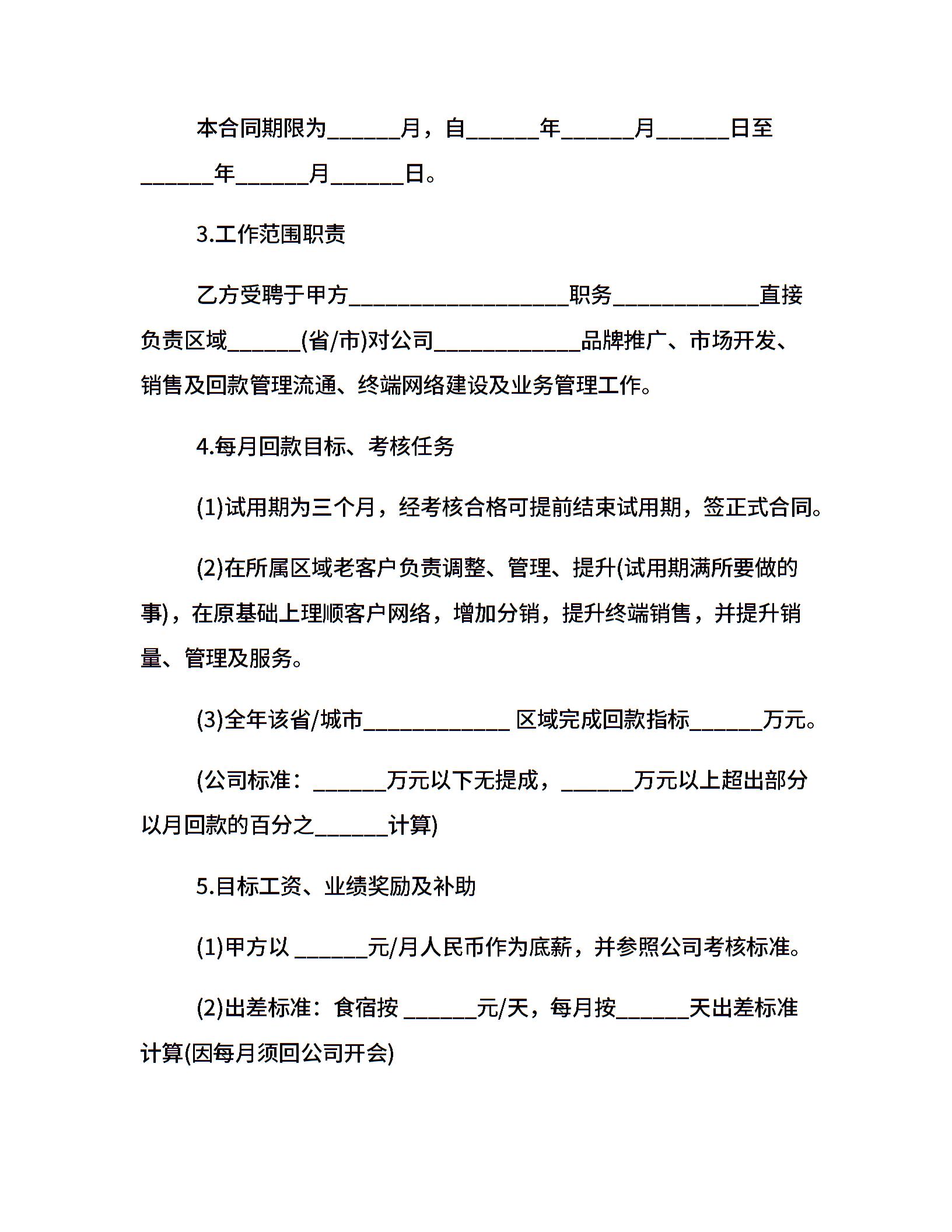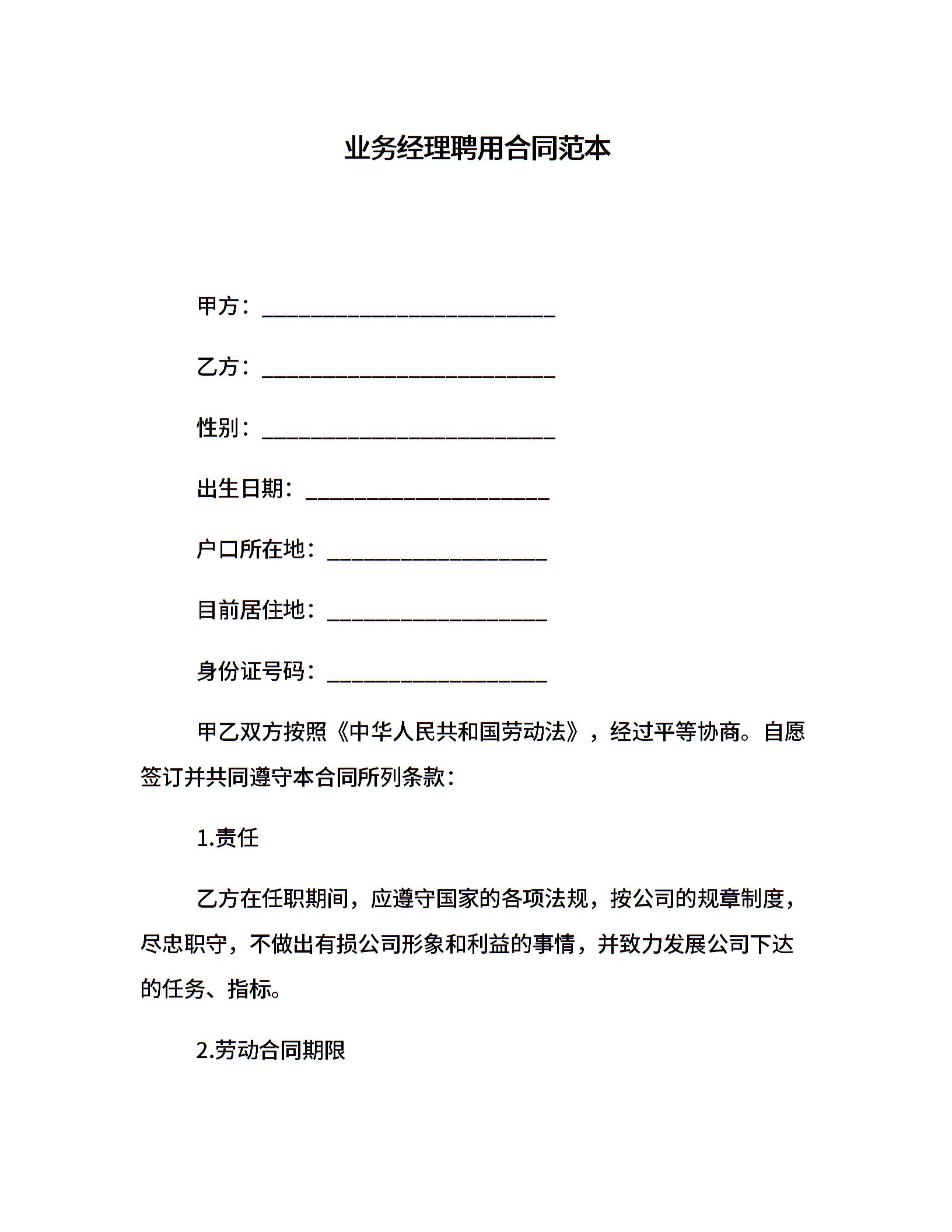 业务经理聘用合同范本